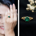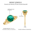 Indulge in the allure of this exquisite Celtic Knot Ring, adorned with a brilliant Round Cut Created Emerald, designed to make her feel truly special. An 8 MM Round Cut Cultured Emerald is placed in a Floral Basket in centre. The Created Emerald Solitaire Ring that exudes elegance and charm, making it a stunning and meaningful piece for any woman. Let this beautiful ring be a symbol of your love and appreciation, capturing her heart and leaving a lasting impression. The adorable shine of AAAA Quality Cultured Emerald will make your lady astonished. This Round Emerald Ring will be delivered to you in a signature jewelry box with a certificate of gemstone authentication.
