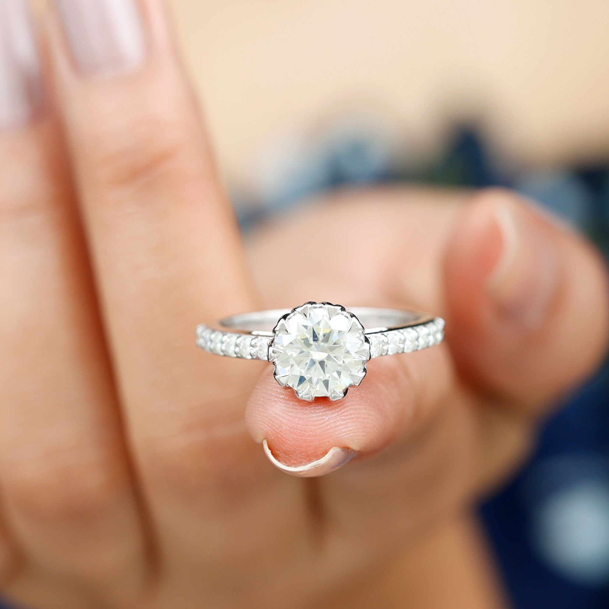 Lotus Basket Set Moissanite Engagement Ring with Certificate