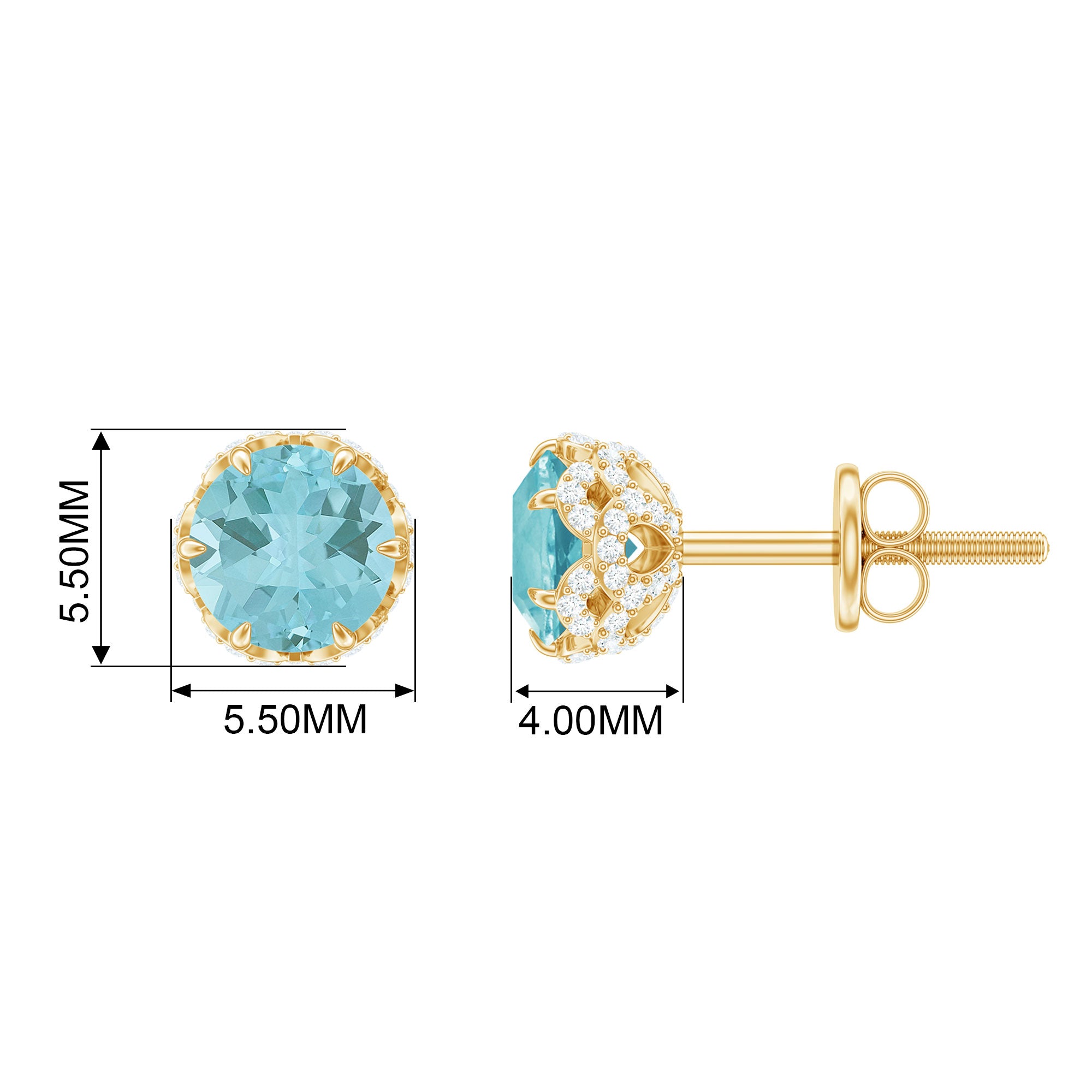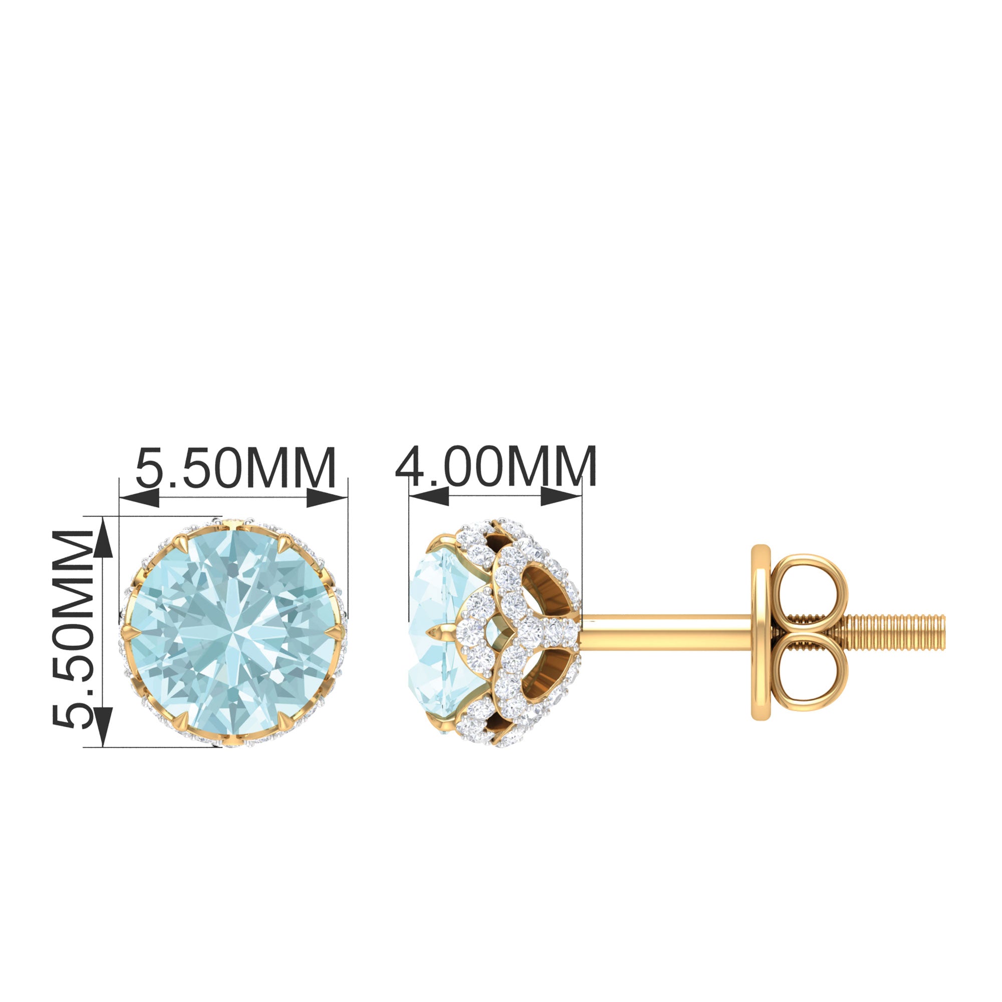 Lotus Basket Set Sky Blue Topaz Solitaire Stud Earrings with Diamond