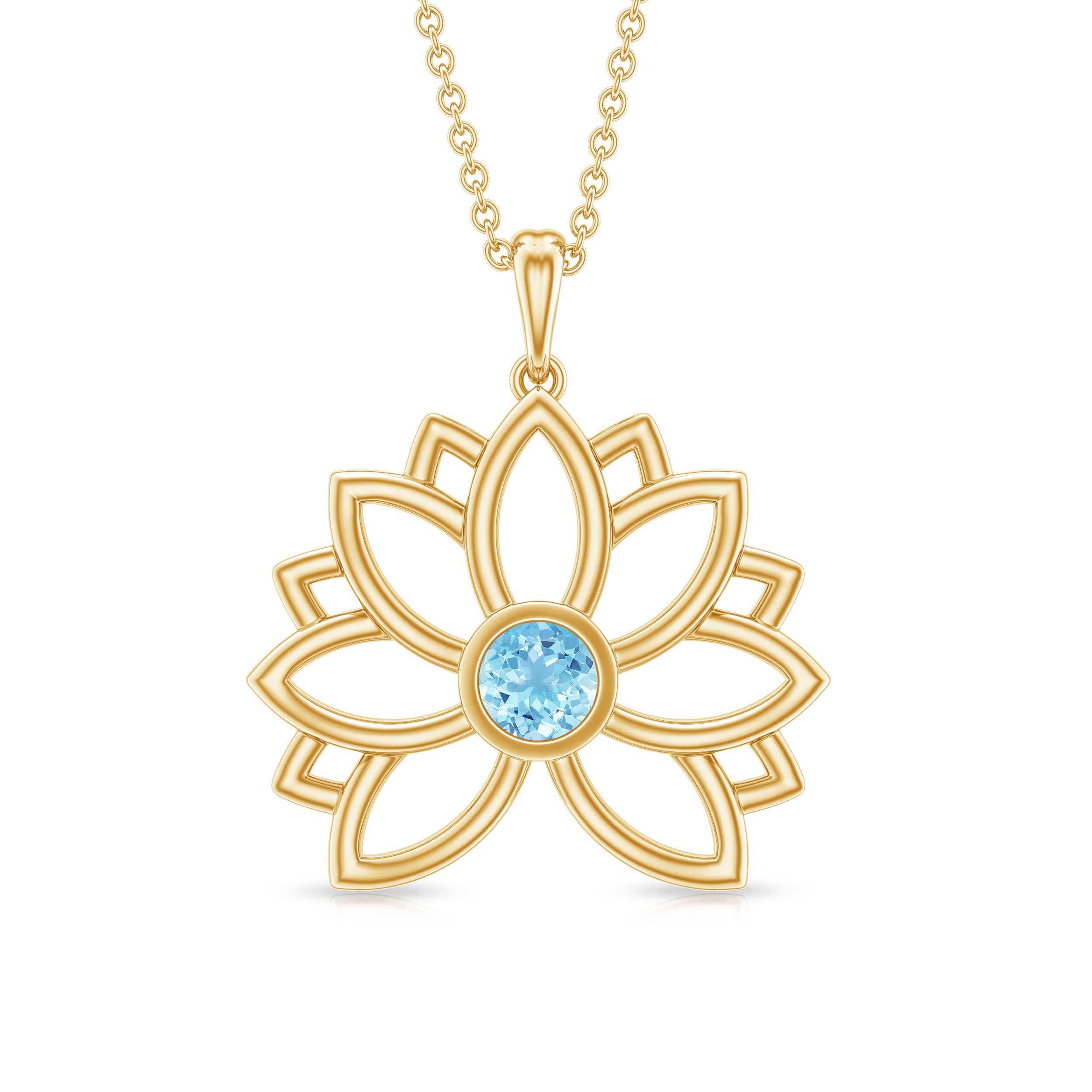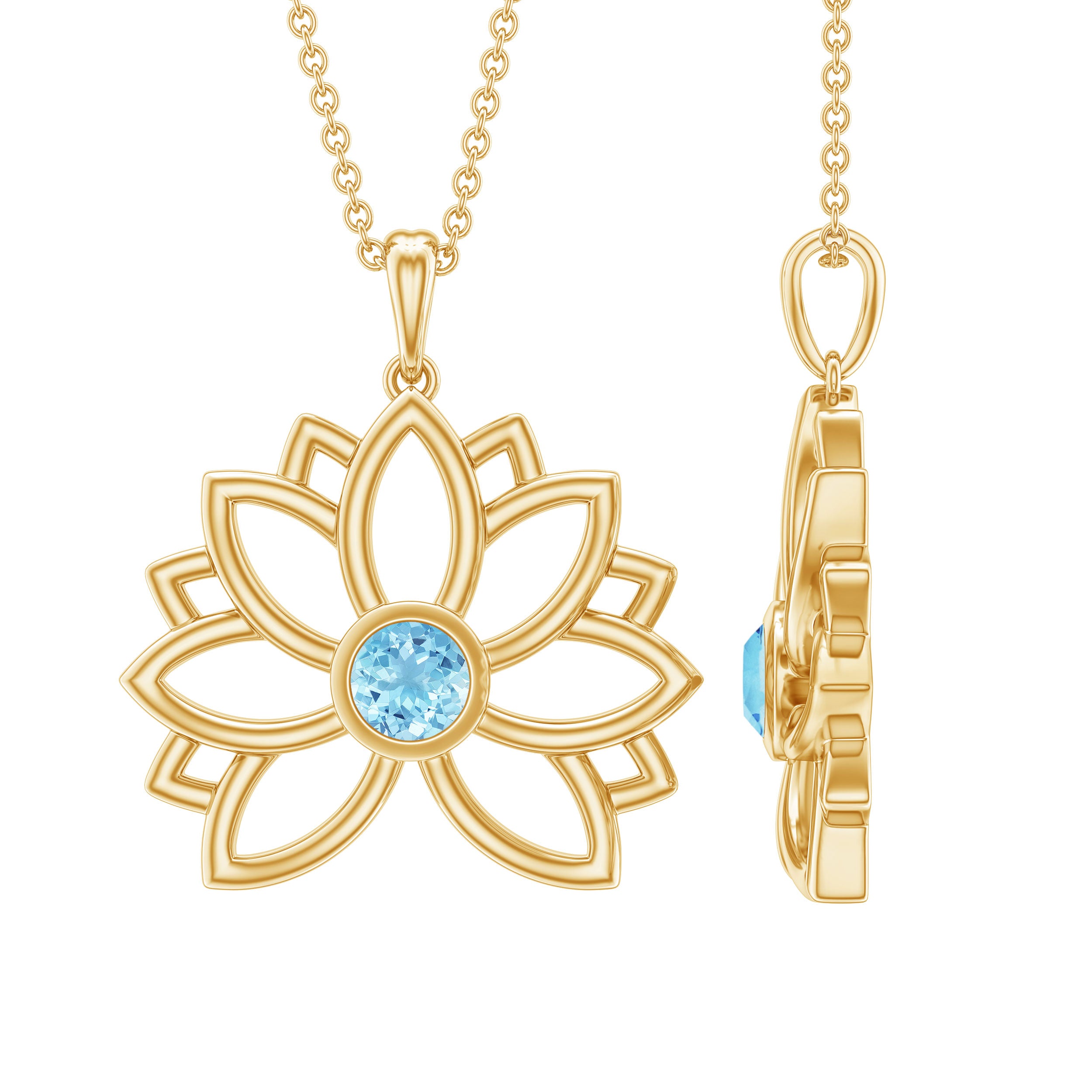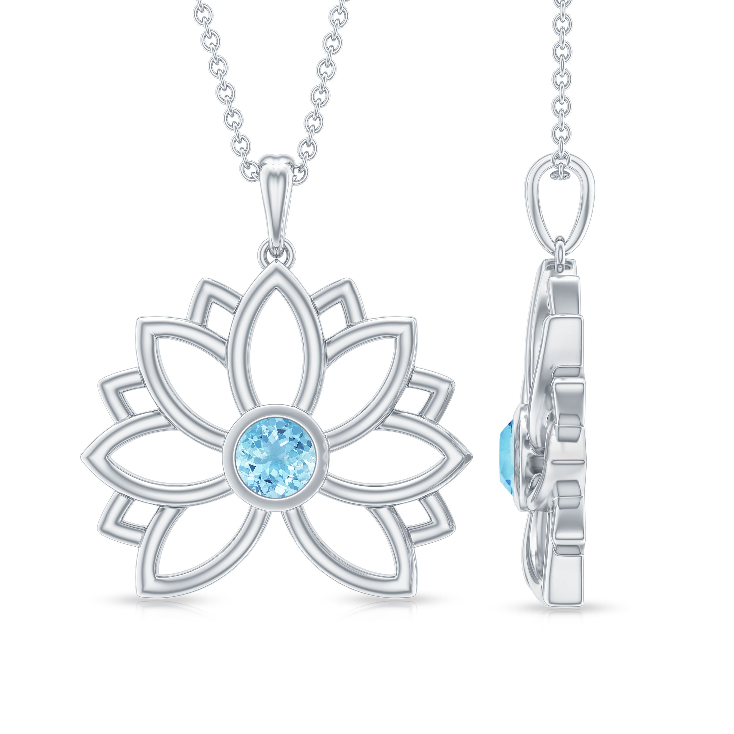 Lotus Flower Pendant with Bezel Set Solitaire Aquamarine
