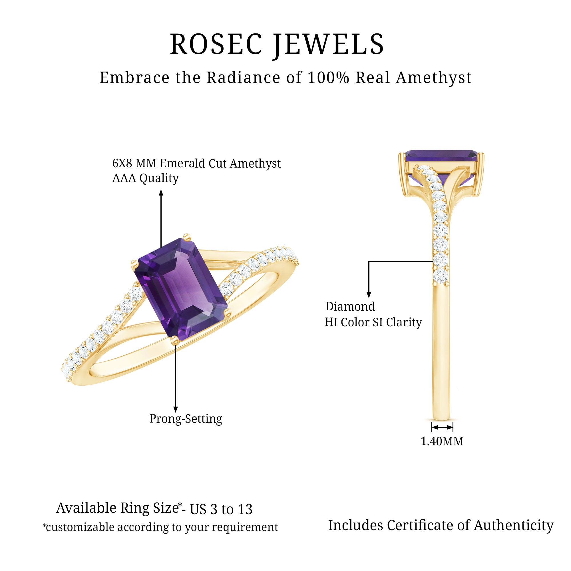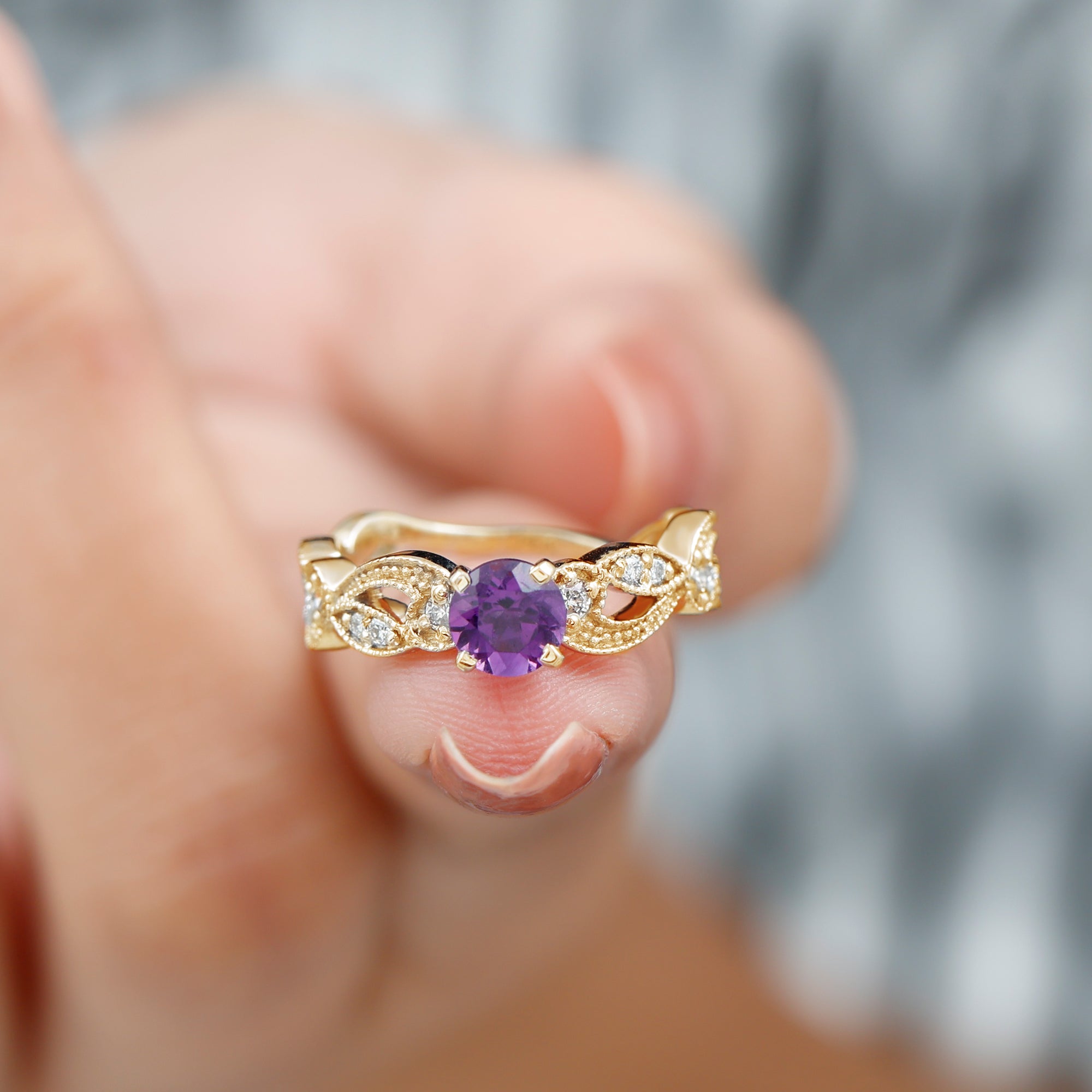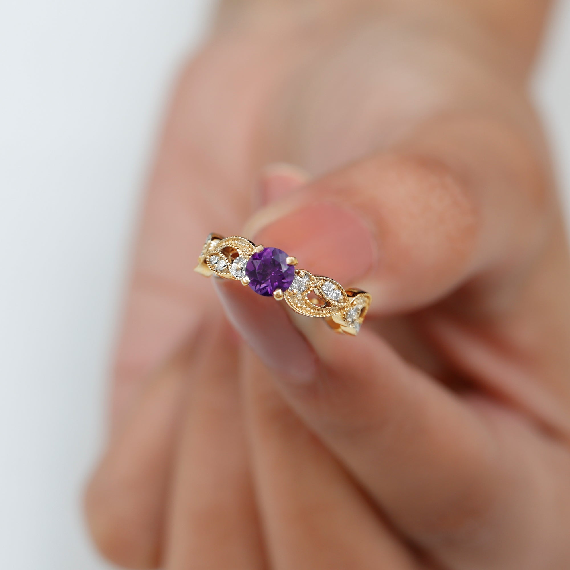 Rosec Jewels is known to handcraft the top-notch quality of amethyst engagement ring. From vintage amethyst engagement rings to simple amethyst engagement rings, our collection have it all! Our artisans are open to customize amethyst engagement rings on your demand. We use hallmarked gold, and certified amethyst to handcraft the engagement rings. Our company avail free shipping and 60 days free return policy, to ensure trust from customer’s side.