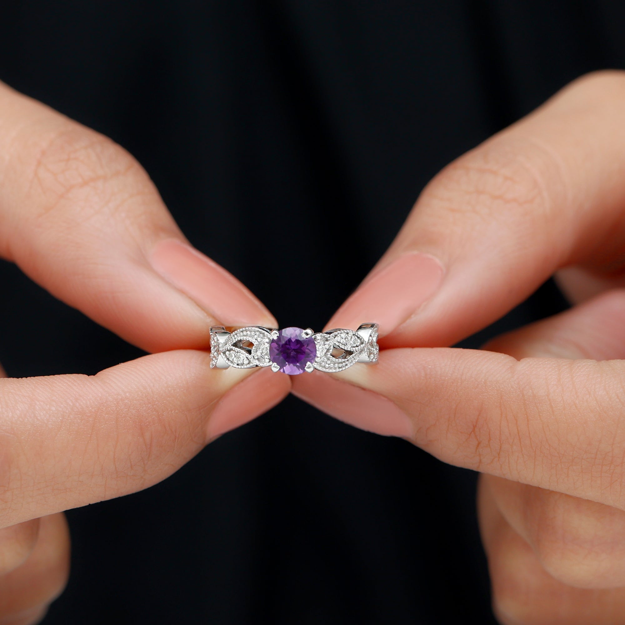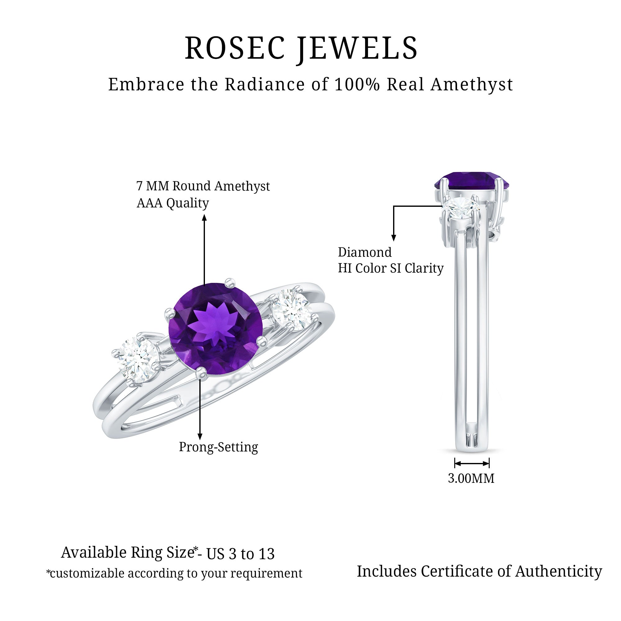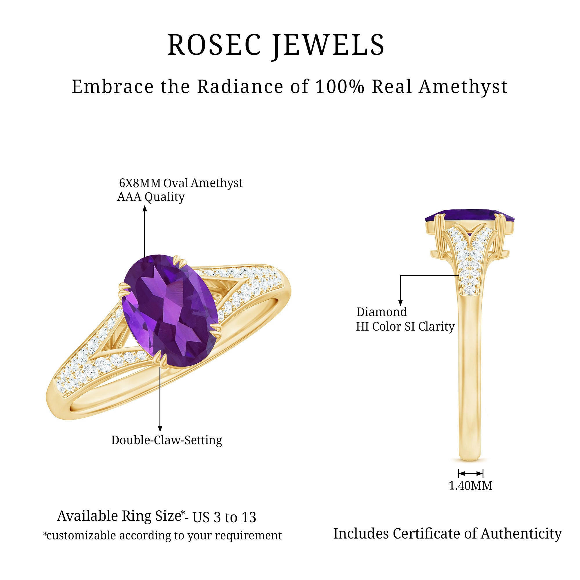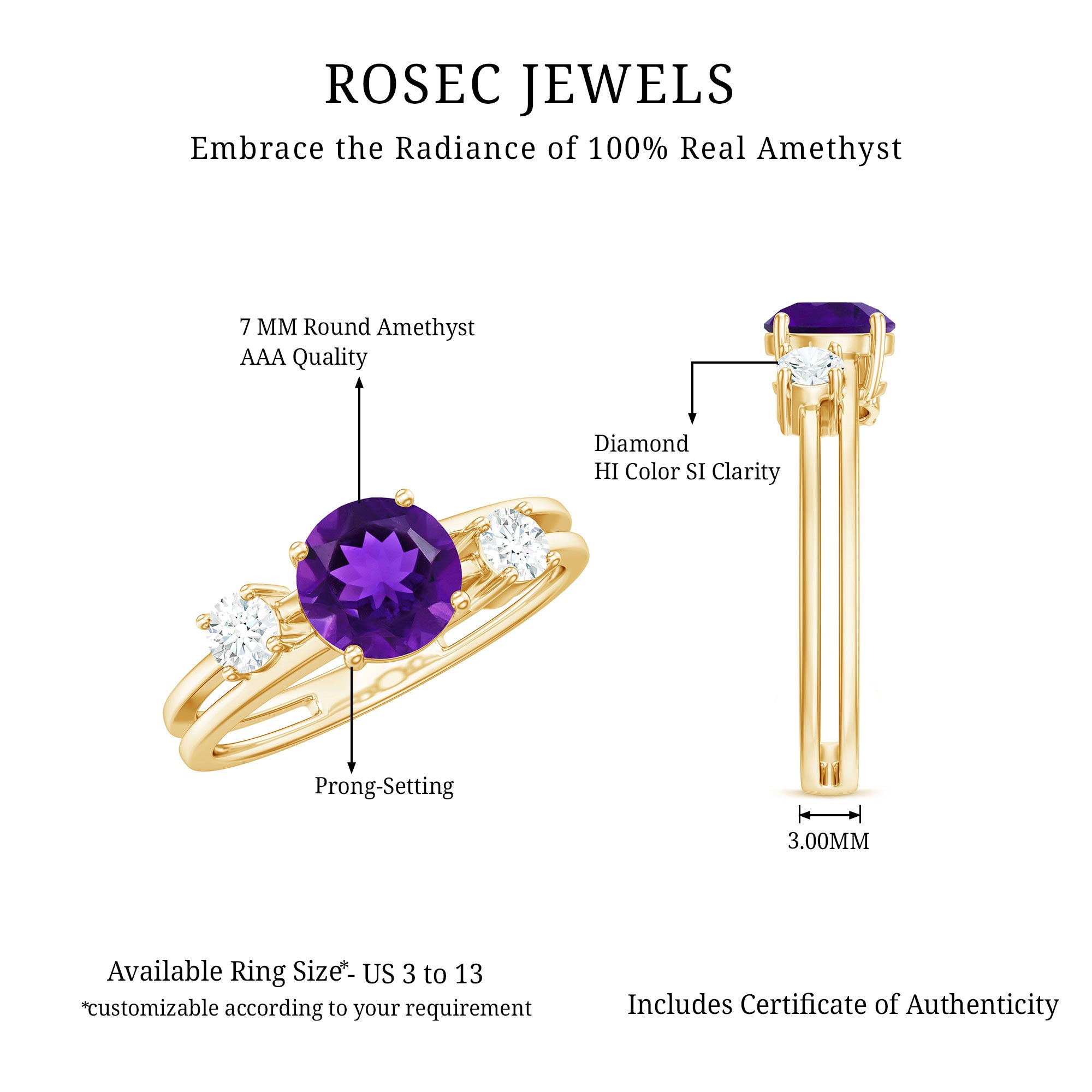 Rosec Jewels is known to handcraft the top-notch quality of amethyst engagement ring. From vintage amethyst engagement rings to simple amethyst engagement rings, our collection have it all! Our artisans are open to customize amethyst engagement rings on your demand. We use hallmarked gold, and certified amethyst to handcraft the engagement rings. Our company avail free shipping and 60 days free return policy, to ensure trust from customer’s side.