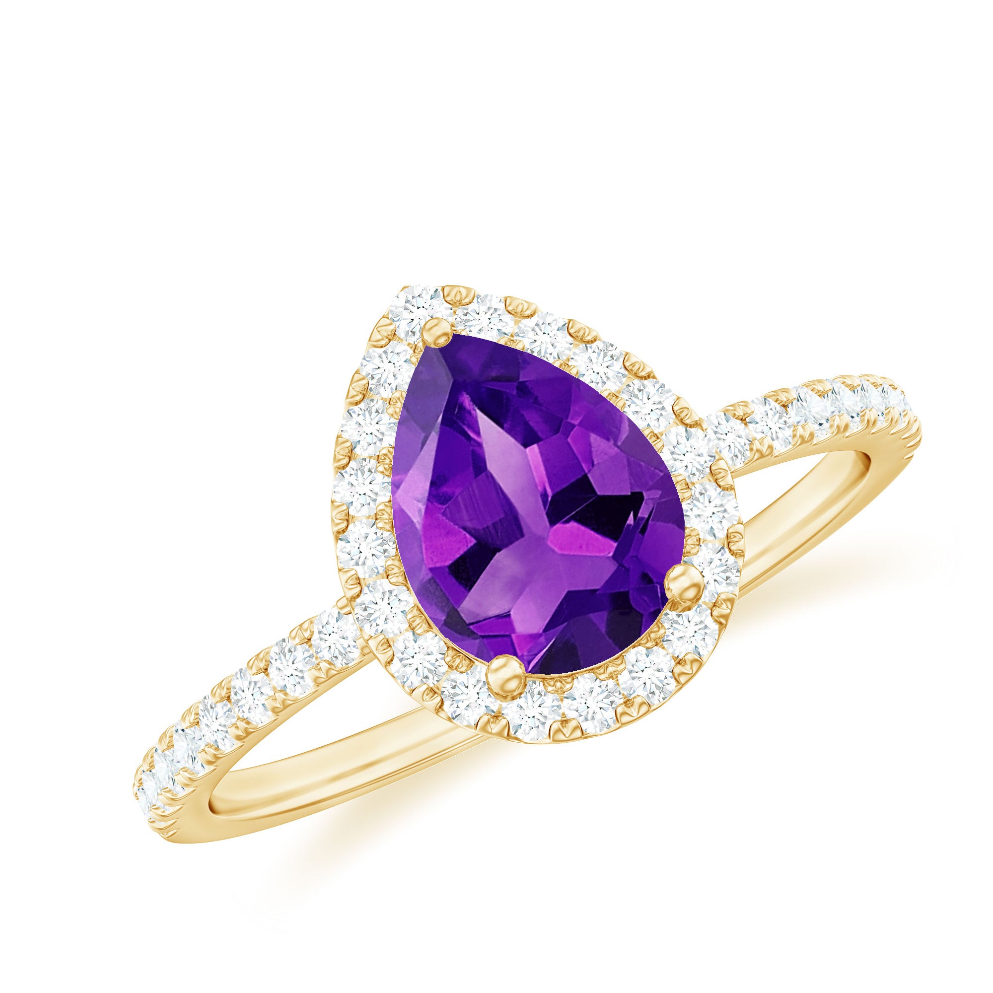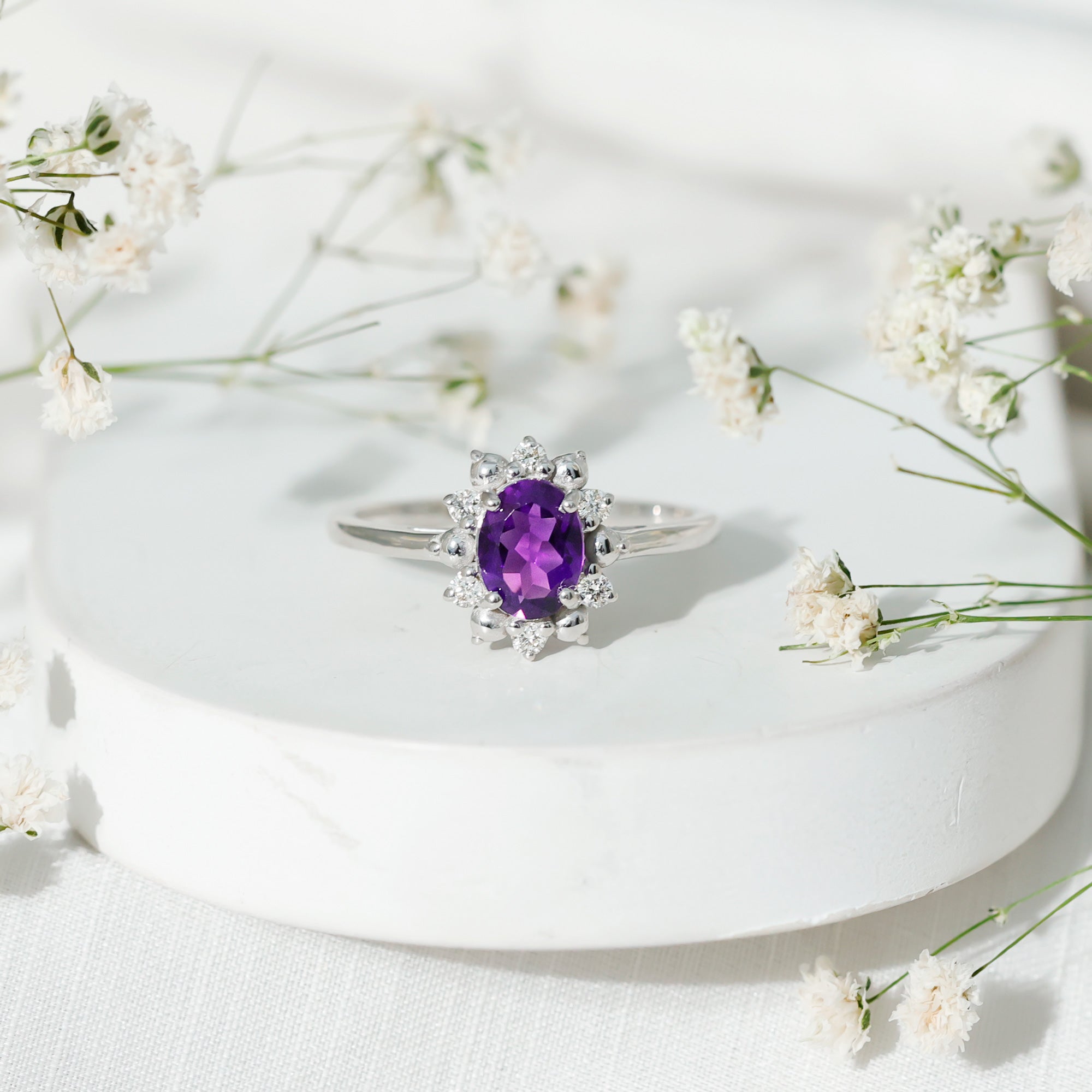 Round amethyst rings and amethyst halo rings are the most popular and trendy designs. Although, you can also choose from different cuts - princess cut, oval cut, cushion cut or emerald cut for engagement ring. Choosing a particular cut of amethyst is an individual choice.