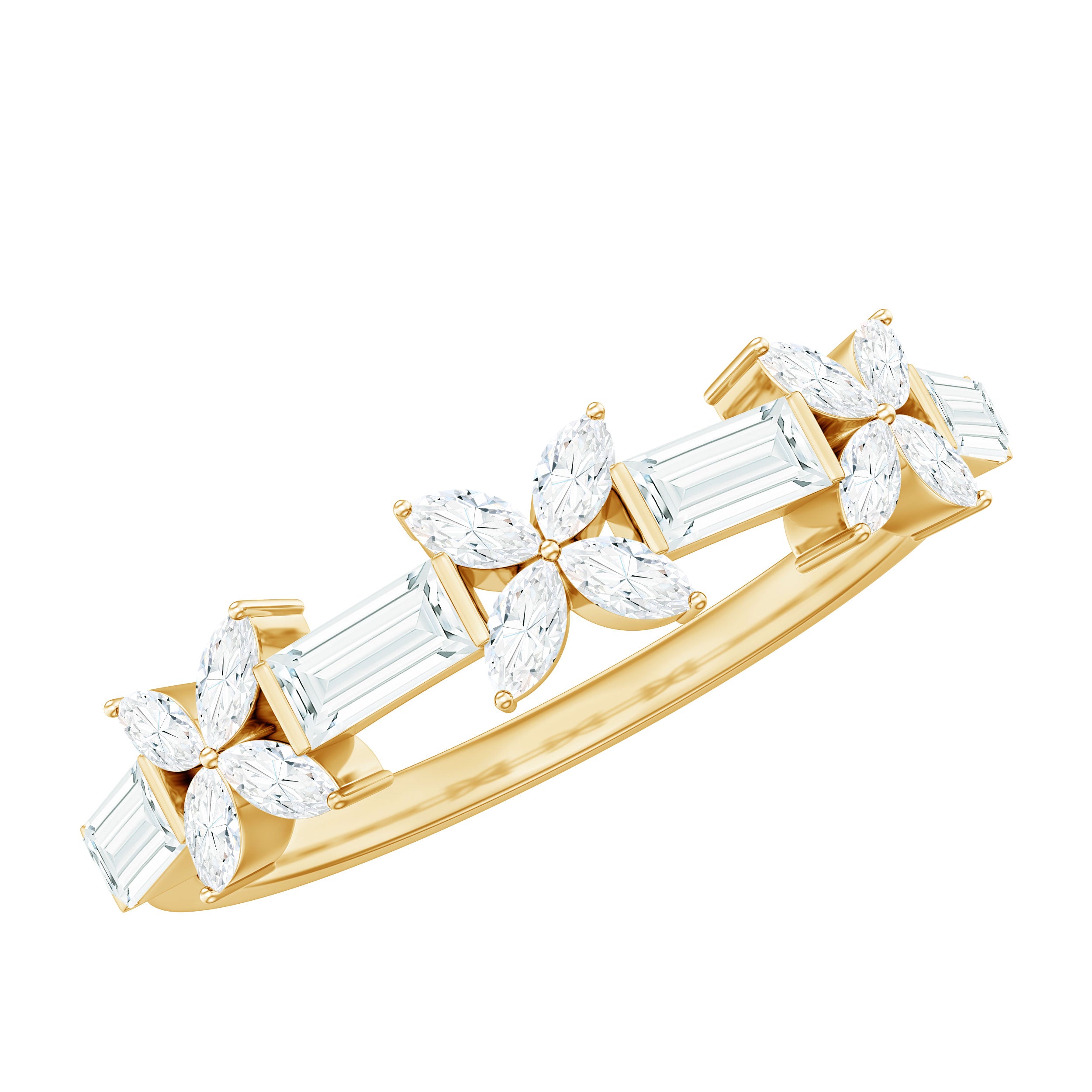 Marquise and Baguette Cut Simulated Diamond Flower Half Eternity Ring