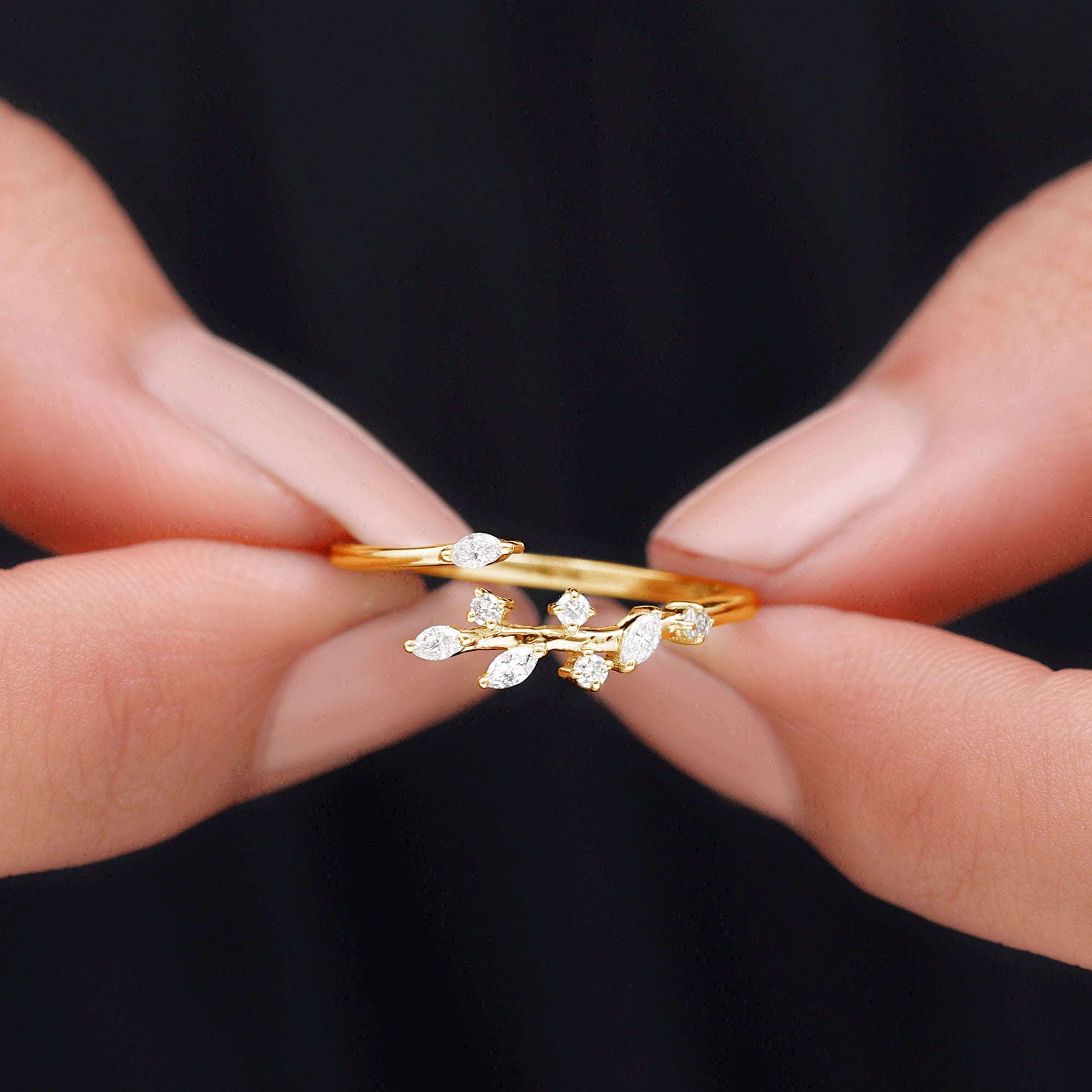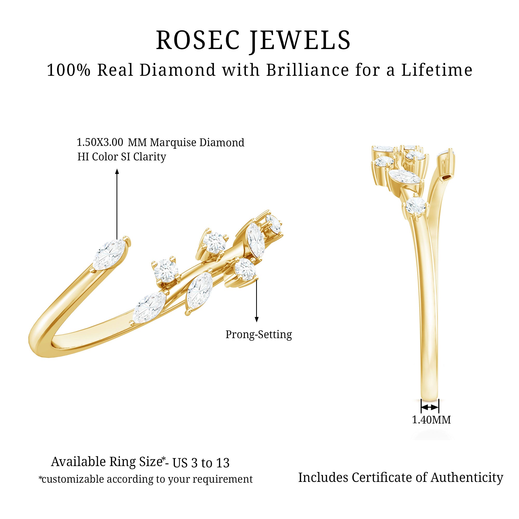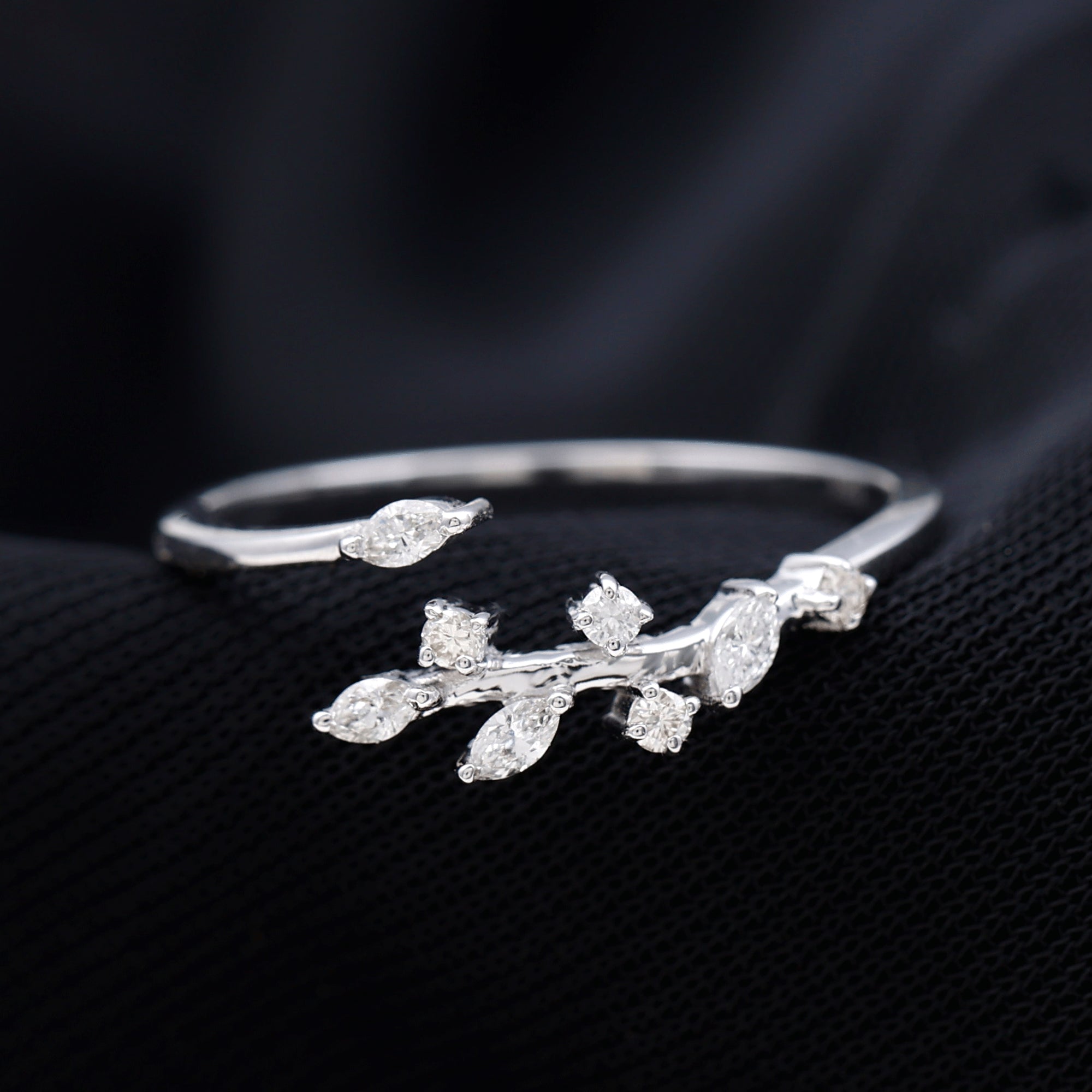 Marquise and Round Shape Natural Diamond Leaf Wrap Ring