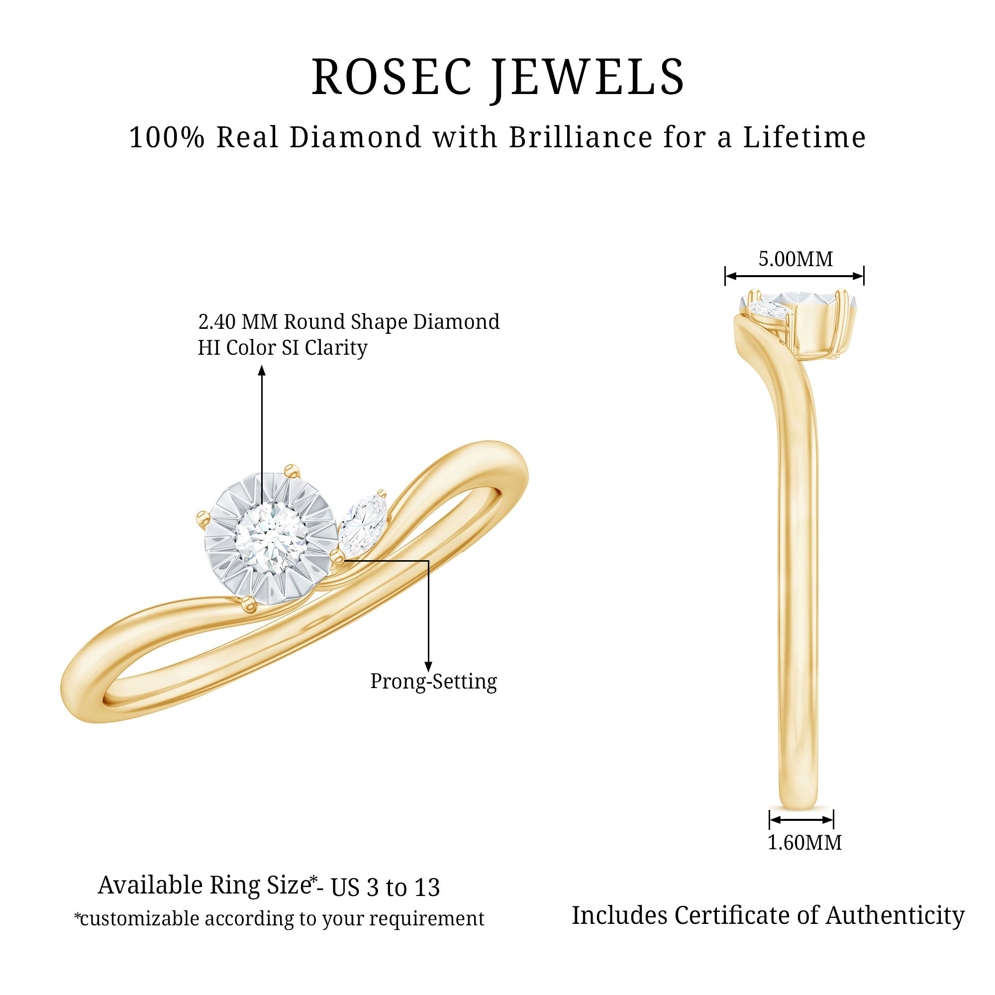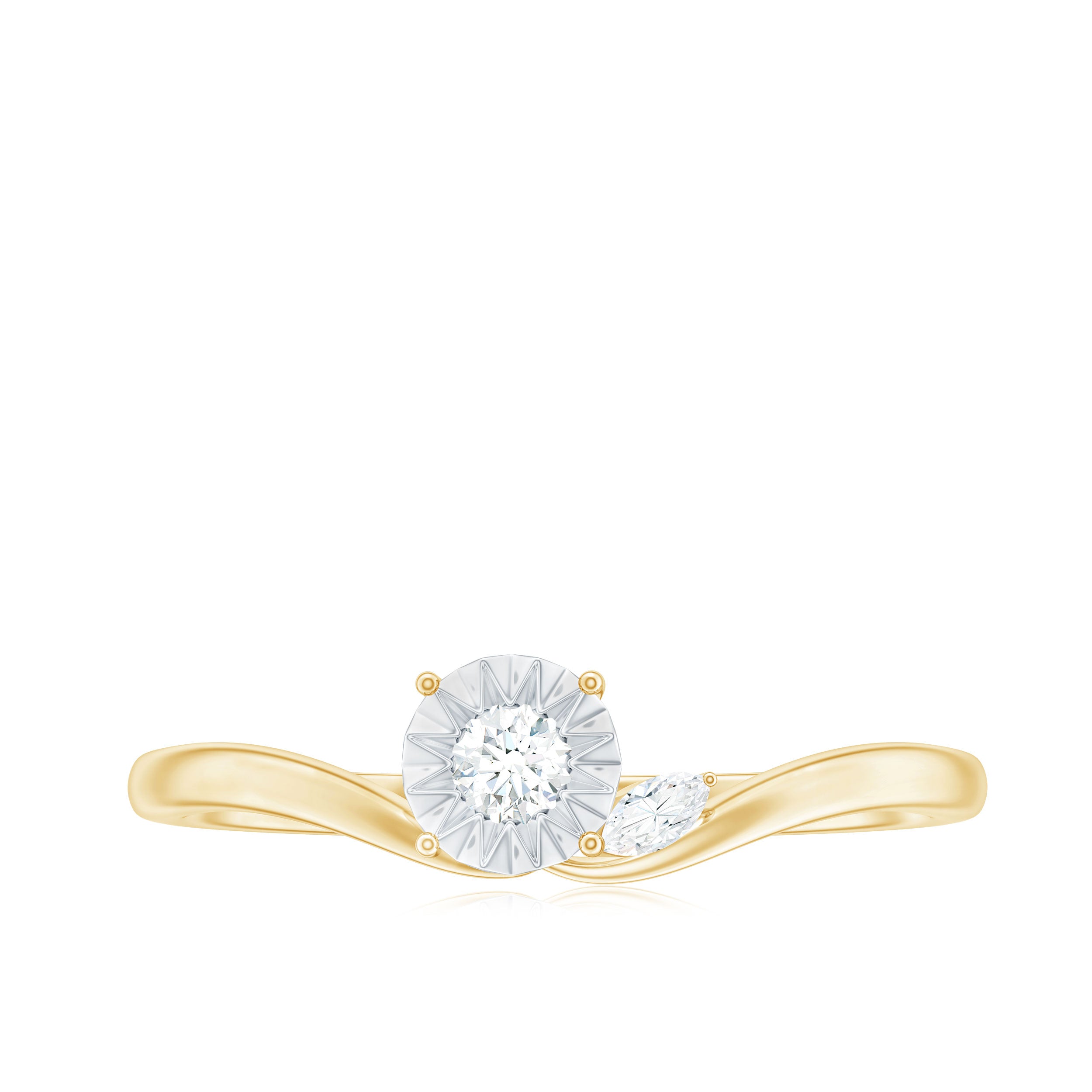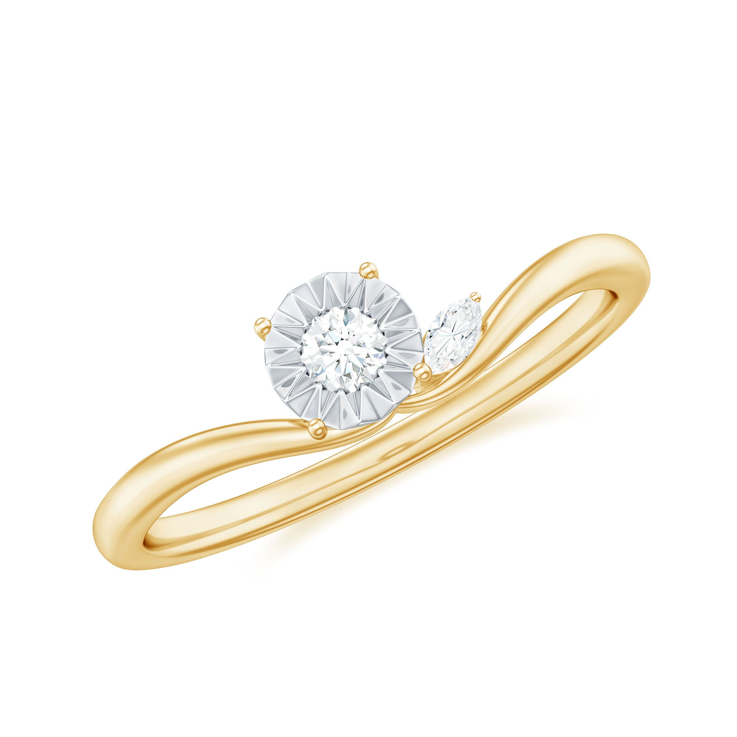 Marquise and Round Diamond Curved Promise Ring in Gold