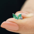 The Leaf Earring showcases two Marquise-Cut Lab Created Emerald secured in Prong Setting and arranged in a Leaf Design. Wear it on your Helix, Cartilage, or Upper Lobe Piercing. Add a touch of natural beauty to your look with this gorgeous and one-of-a-kind Two Stone Earring.