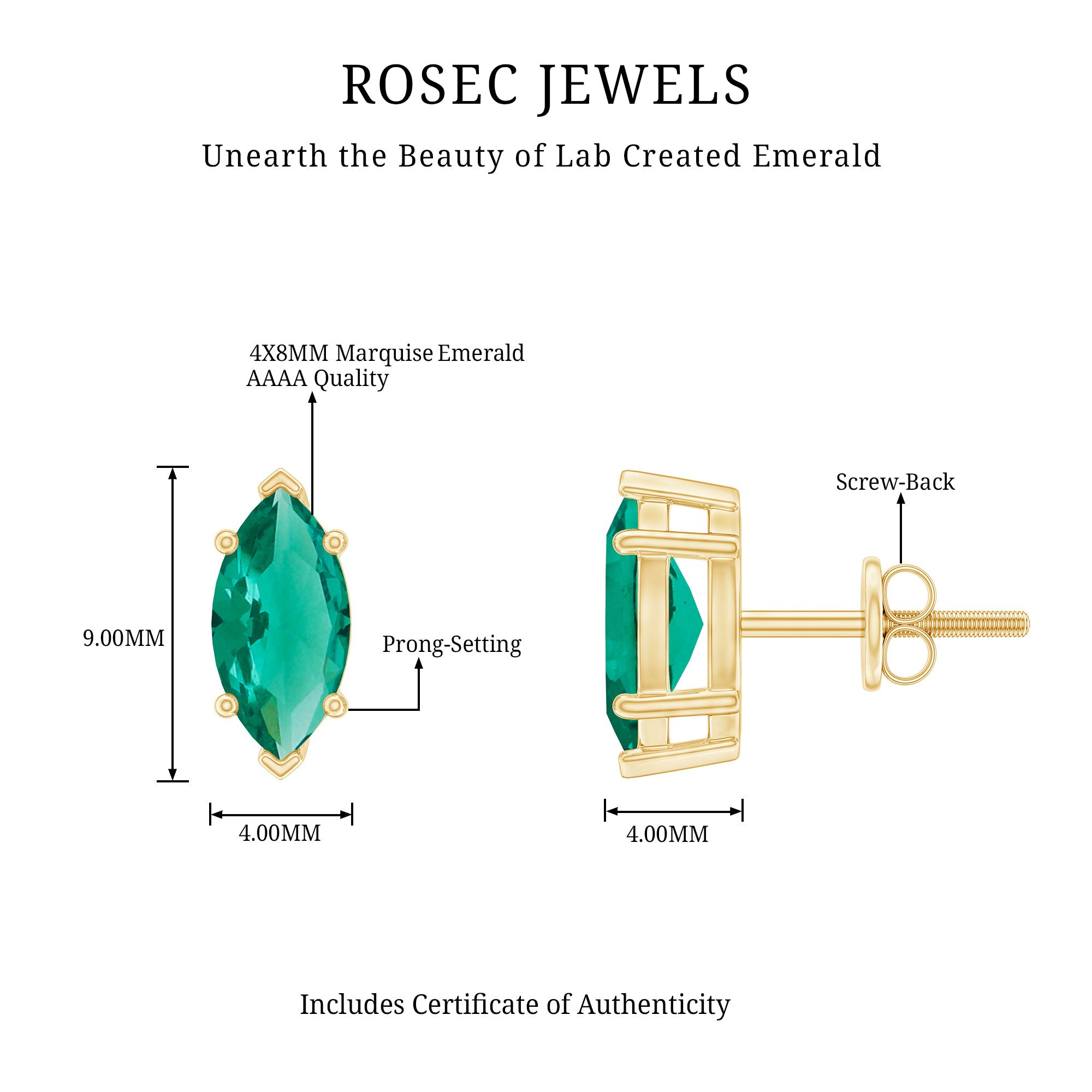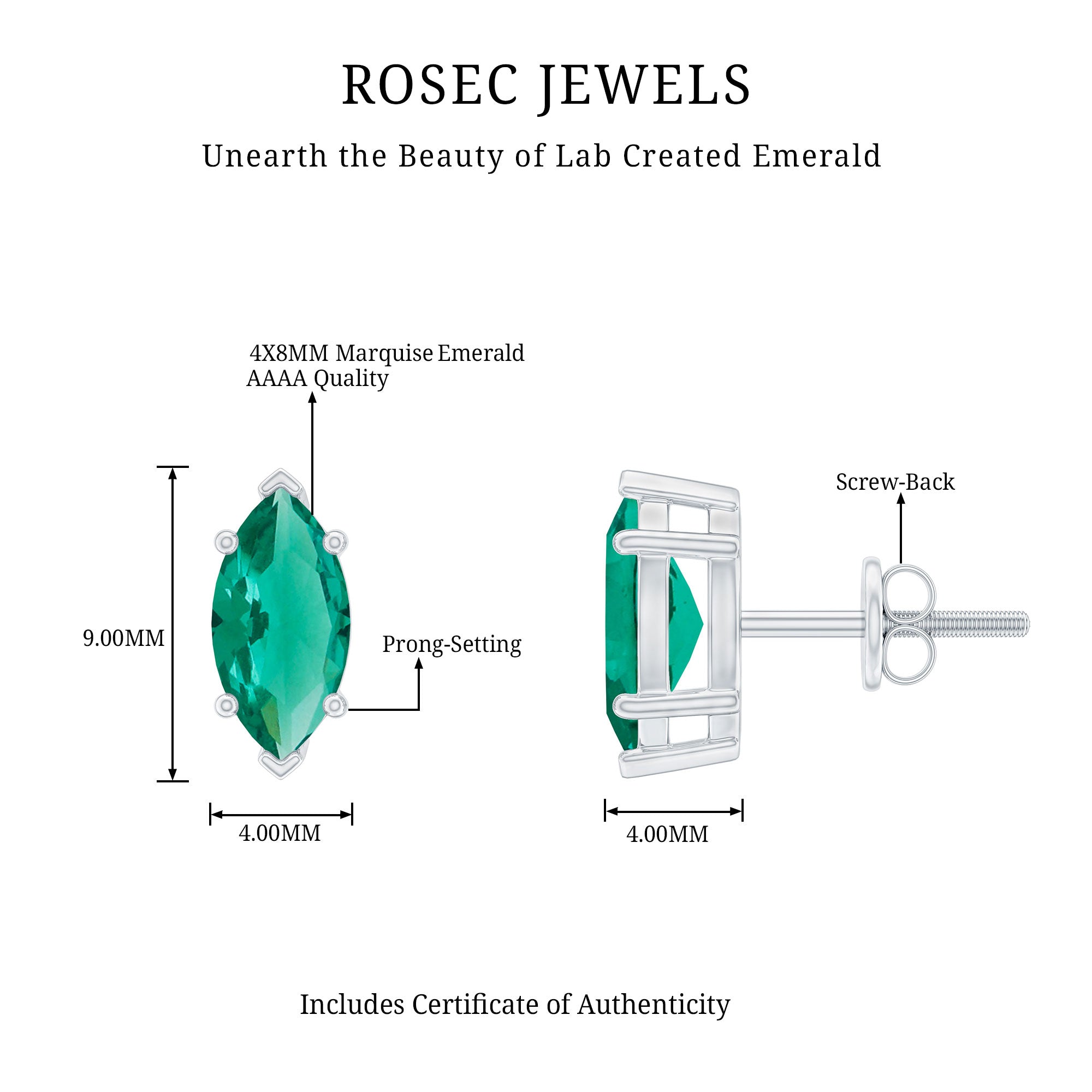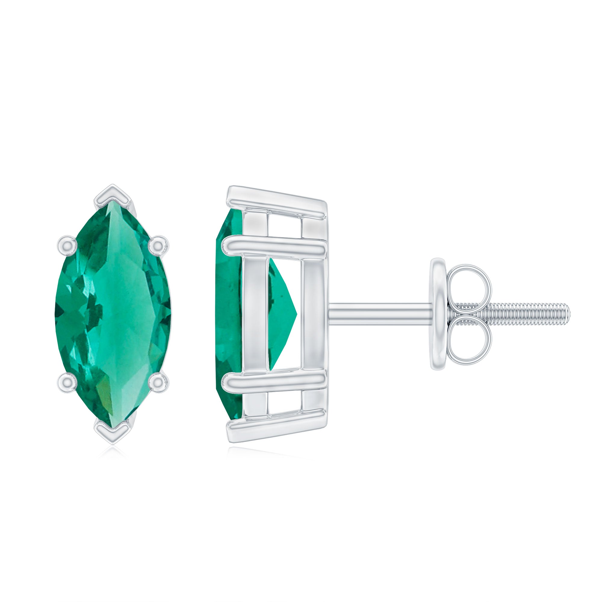 Designed to effortlessly elevate your everyday style, these Emerald Stud Earrings combine classic refinement with a bold twist. These Solitaire Stud Earrings showcase a breathtaking 4X8 MM marquise cut lab created emerald, securely set in prong setting. This setting not only highlights the stones beauty but also safeguards it. The screw back closure guarantees a snug and secure fit, making these Solitaire Emerald Earrings ideal for daily wear without any concerns about slipping or falling out. Whether you are dressing up for a special dinner or keeping it casual for a day out, these Marquise Earrings are a timeless option that adds the perfect touch of color and sparkle. Crafted with AAAA quality lab created emerald, the stones offer remarkable brilliance while being eco-friendly and ethical, perfect for those who appreciate beauty with a purpose. They make a lovely gift to celebrate a birthday, a personal milestone, or simply to show someone you care. Elegant, easy to wear, and full of charm, these Lab Grown Emerald Earrings are destined to become a cherished piece in any jewelry collection.