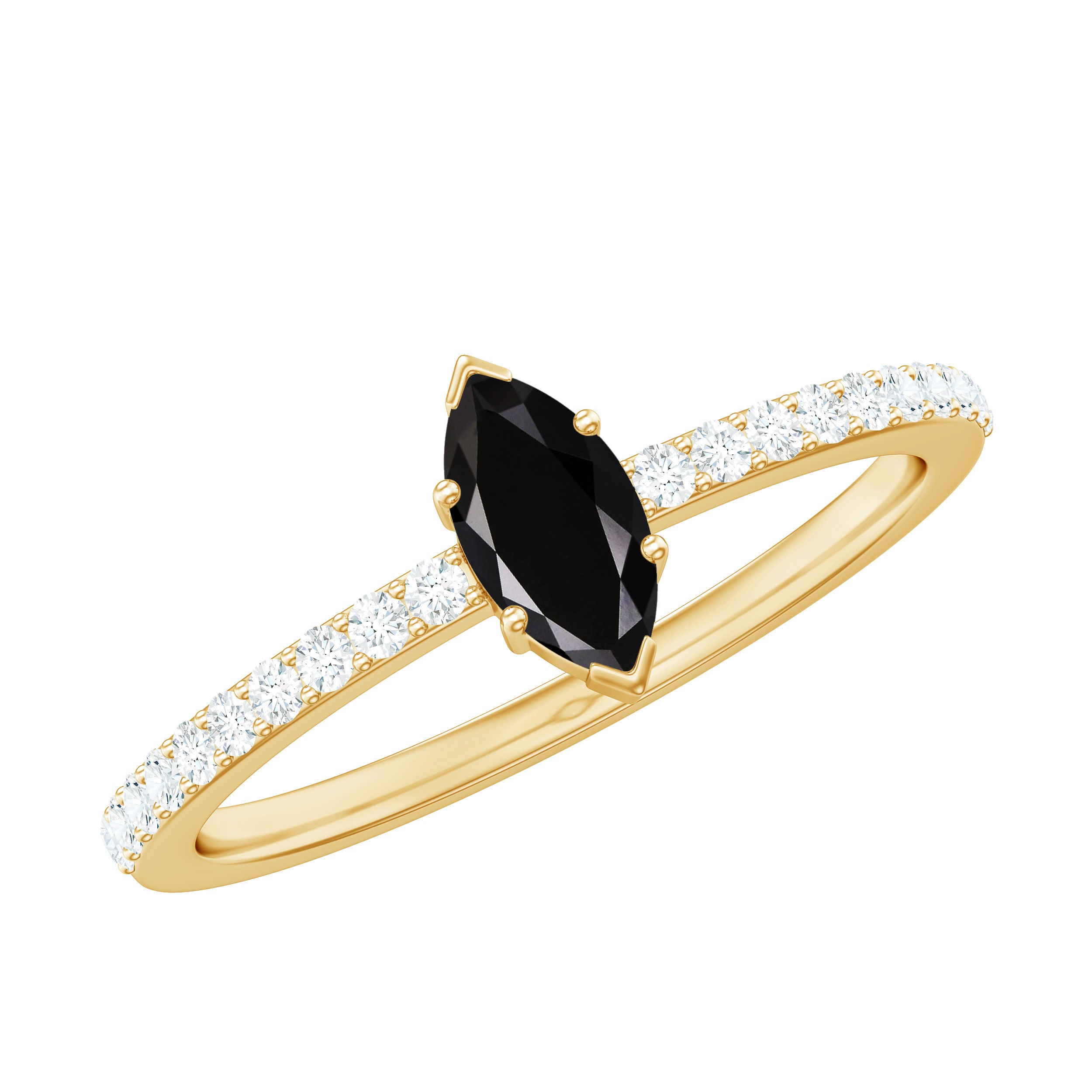 A striking symbol of your everlasting love, this gorgeous Promise Ring for her features a lovely center marquise shape Black Spinel and Round Shape Diamond set as side stones.