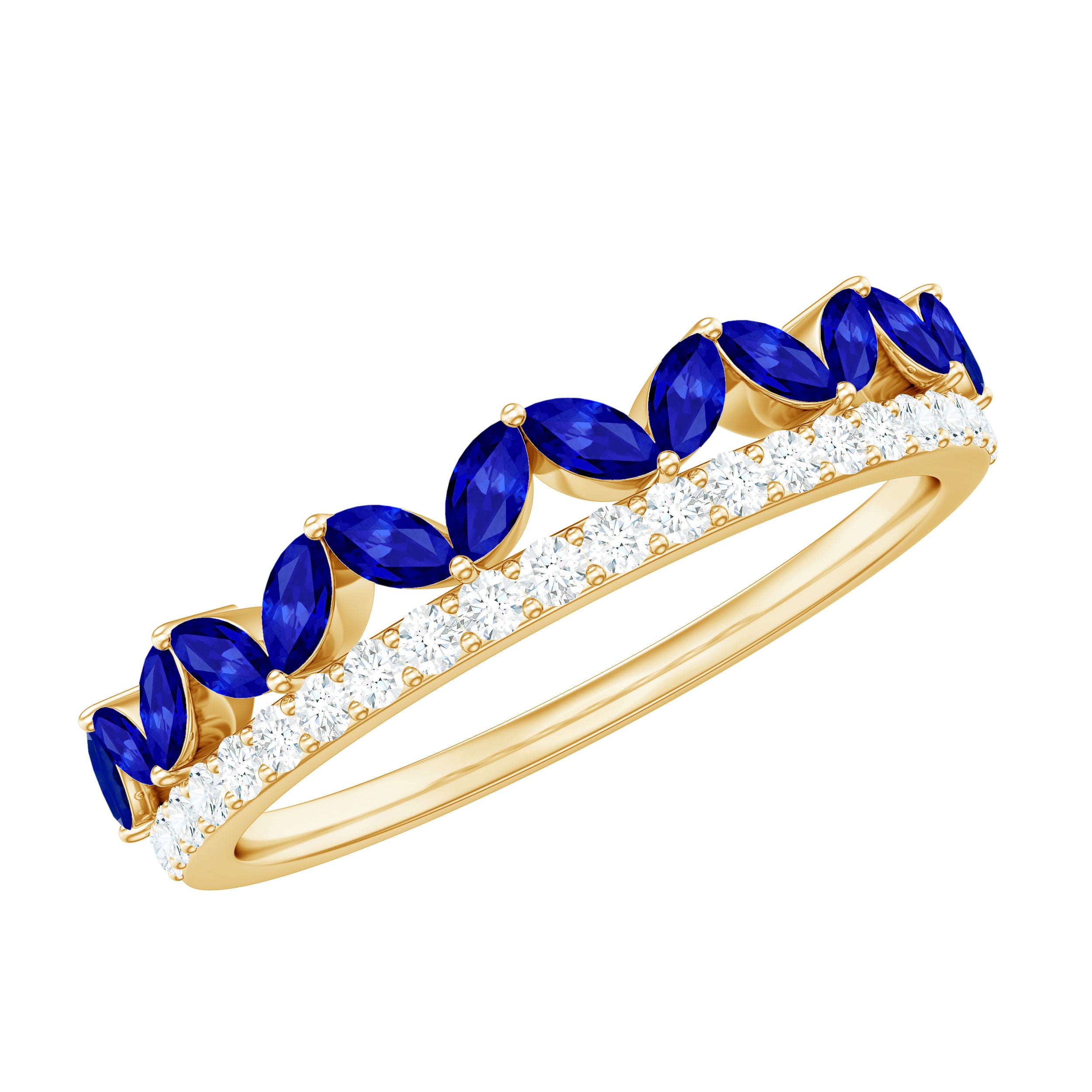Marquise Cut Created Blue Sapphire Half Eternity Stackable Ring with Diamond