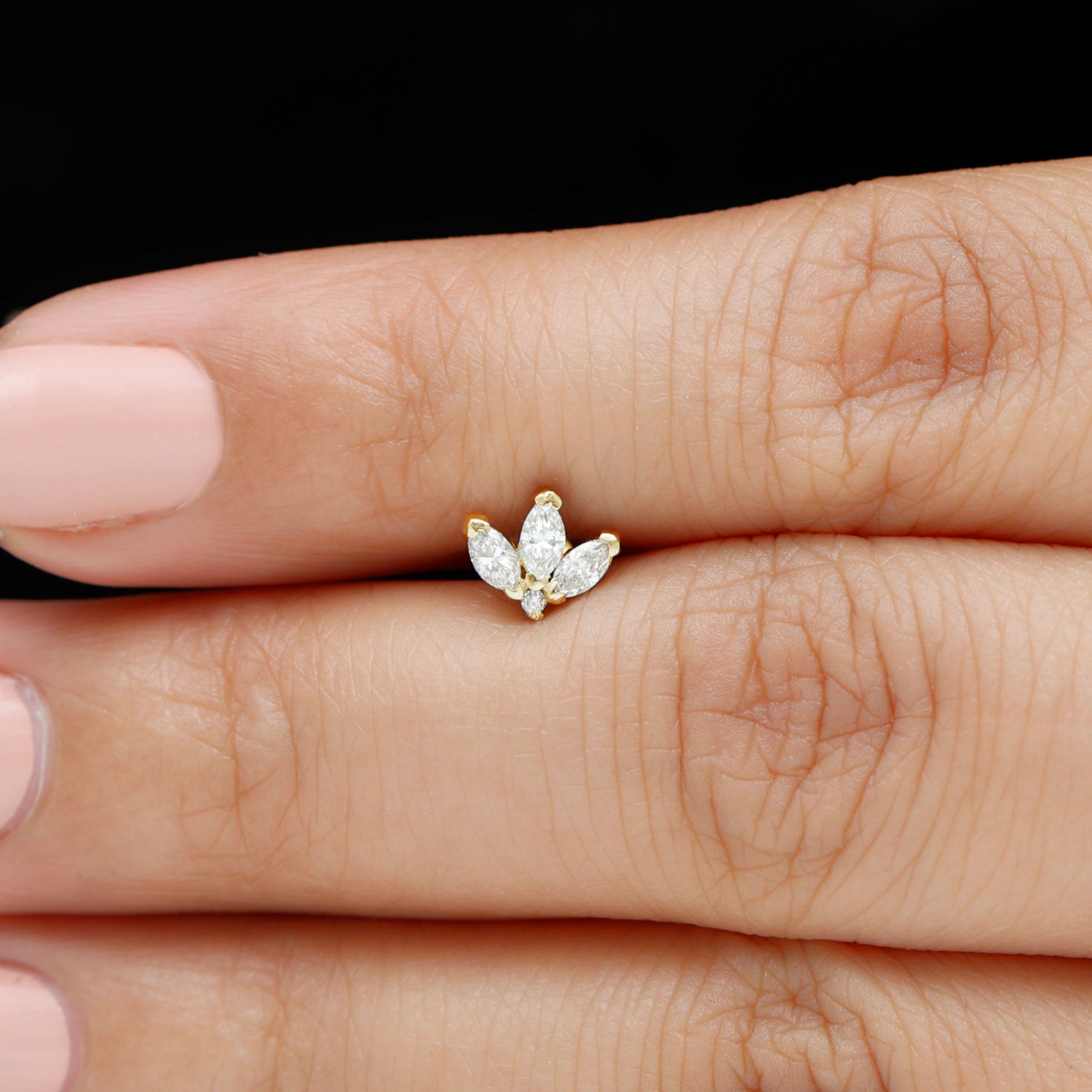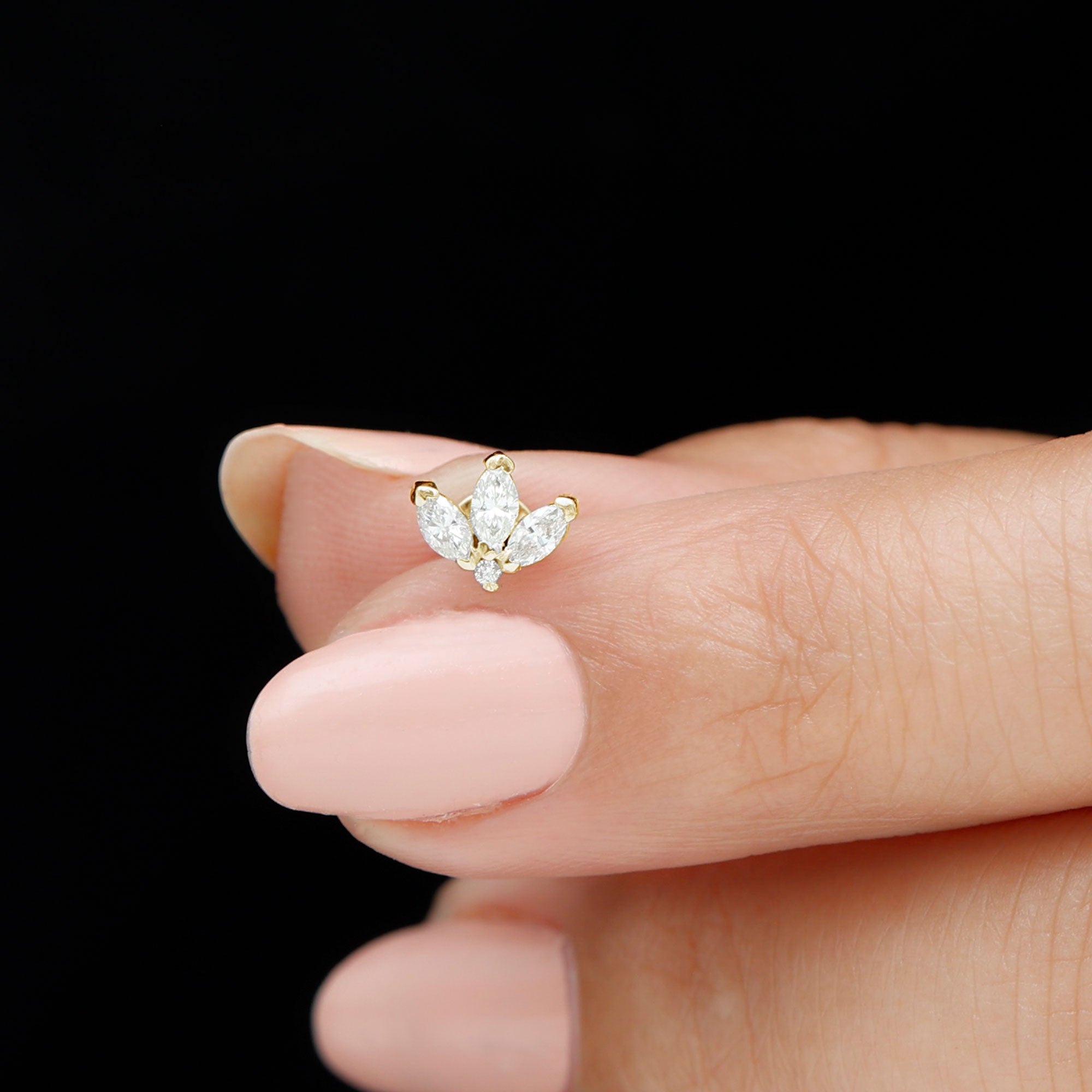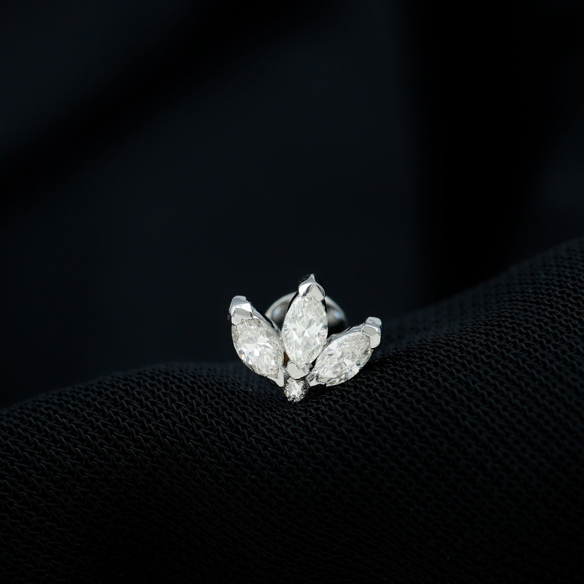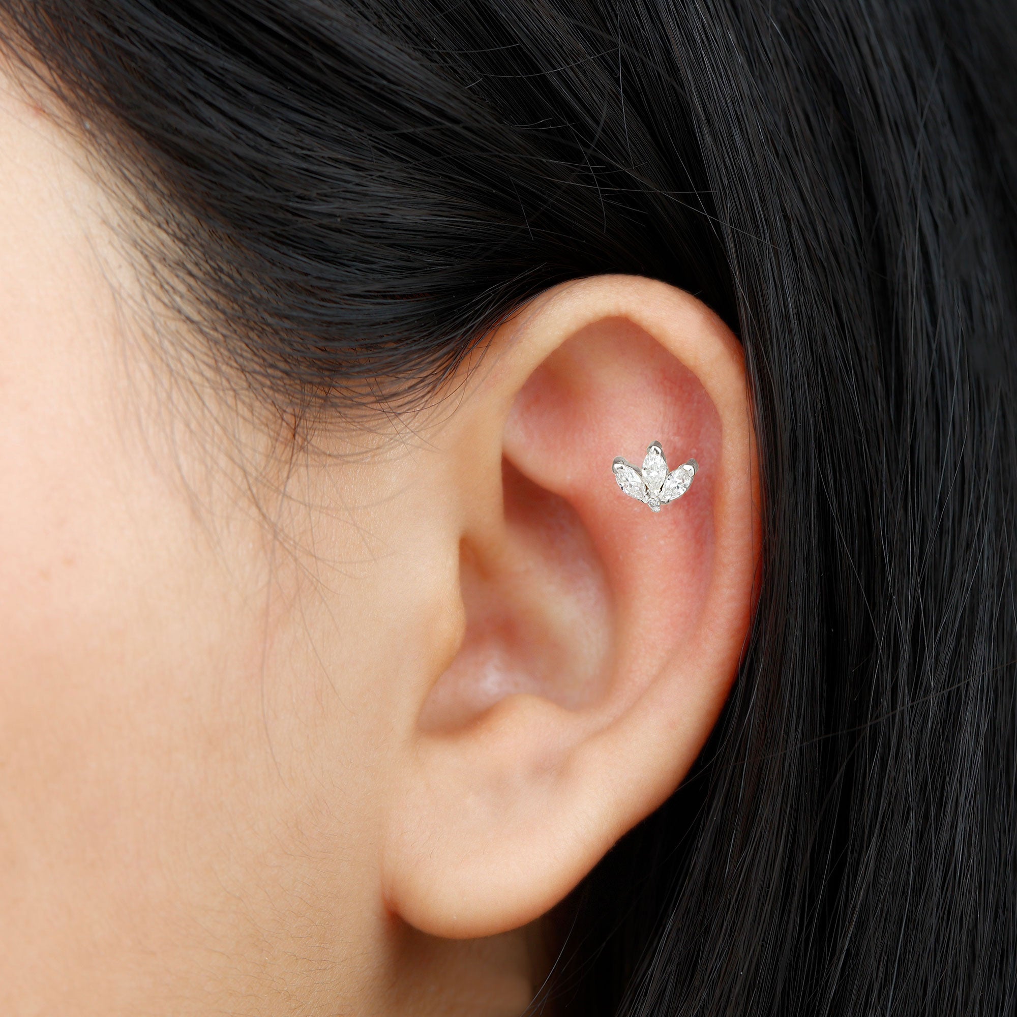 Marquise Cut Diamond Lotus Flower Earring for Cartilage Piercing