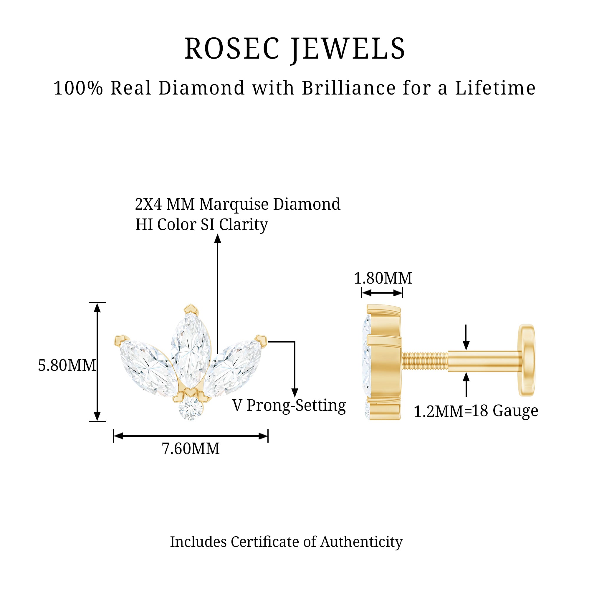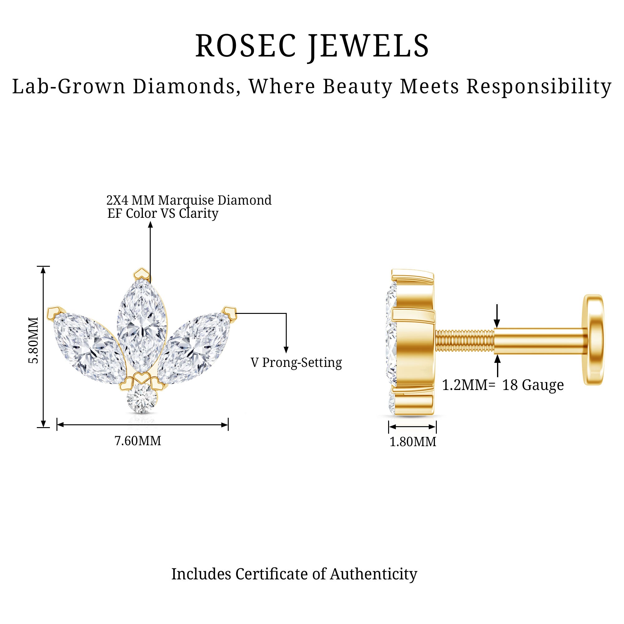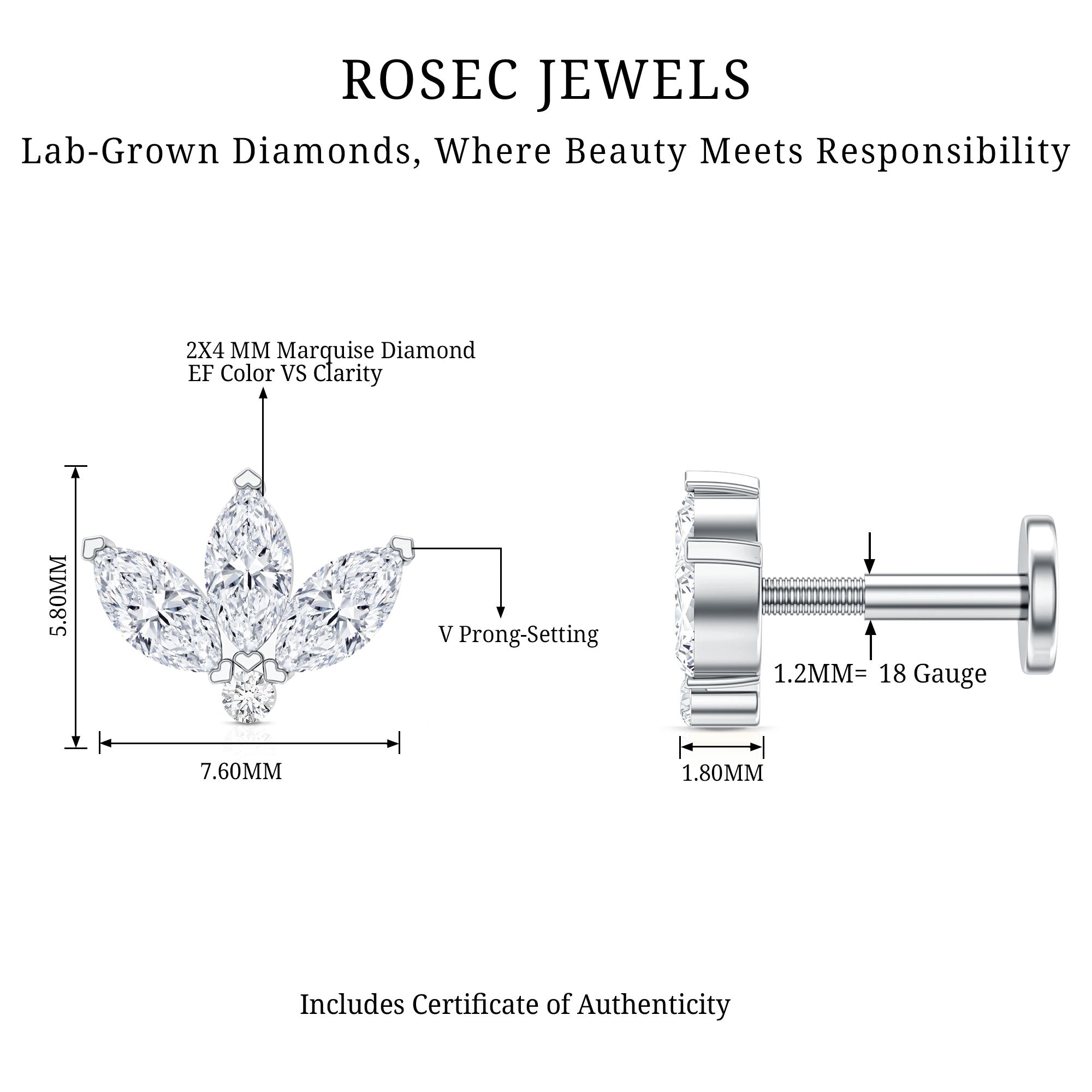- This stunning Flower Rook Earring showcases Marquise Shape Diamonds set in secure prong setting, resembling a captivating lotus design. While a dainty round diamond is studded at the center.