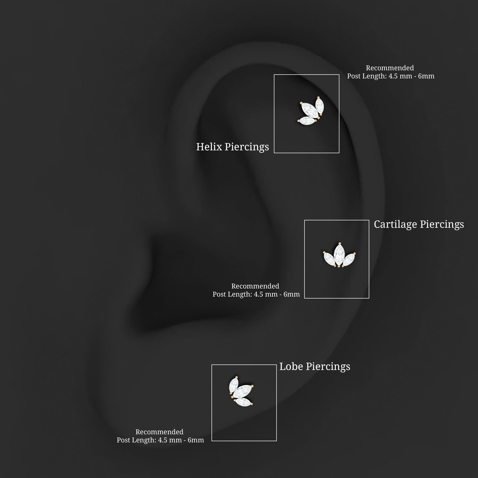Marquise Cut Diamond Lotus Flower Earring for Helix Piercing
