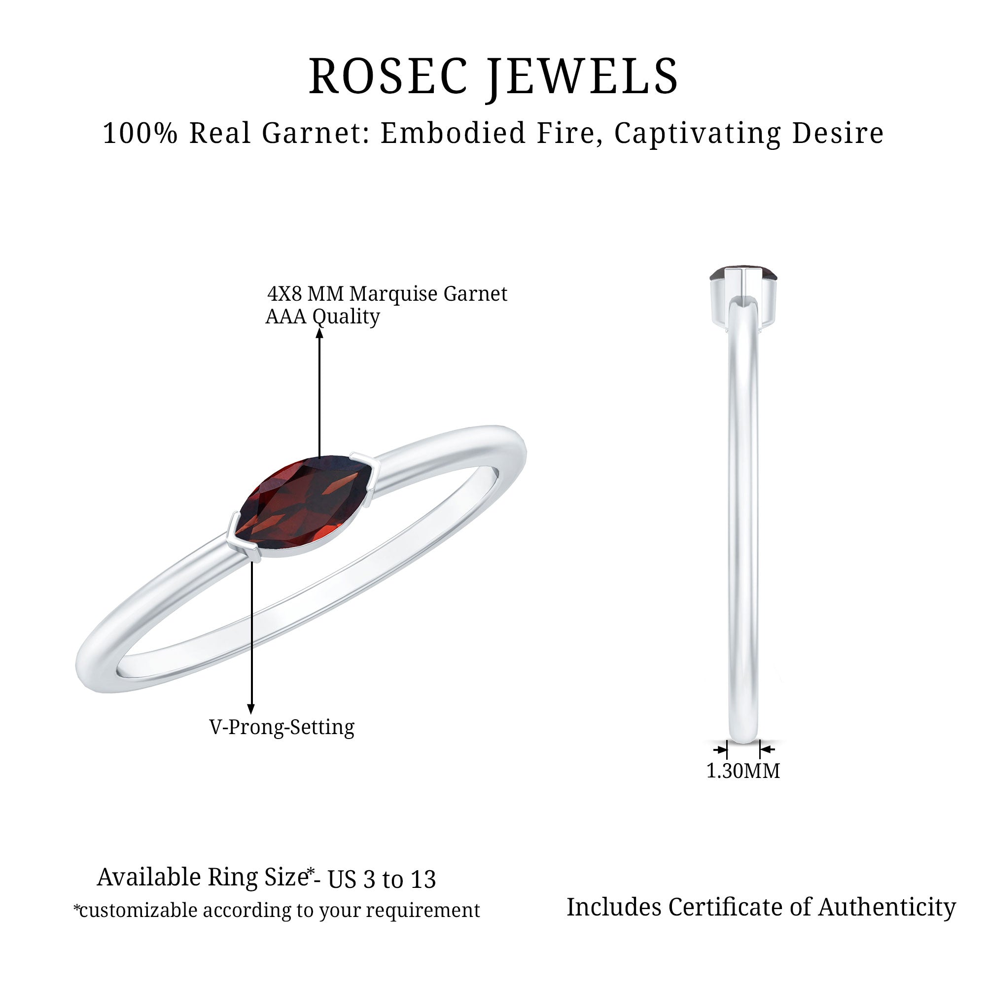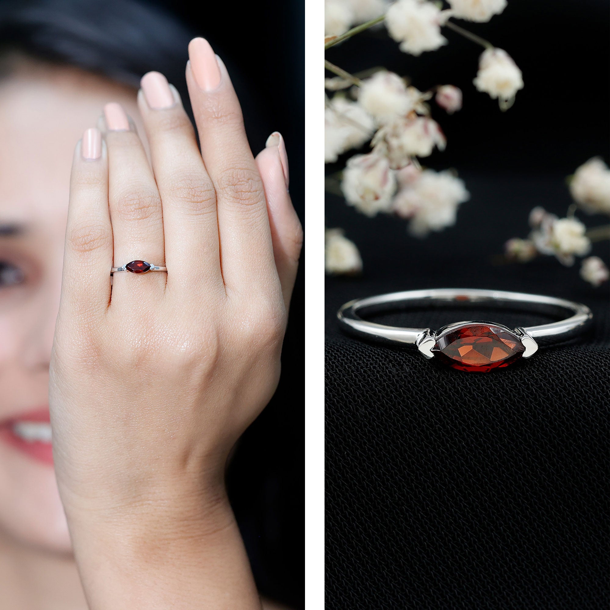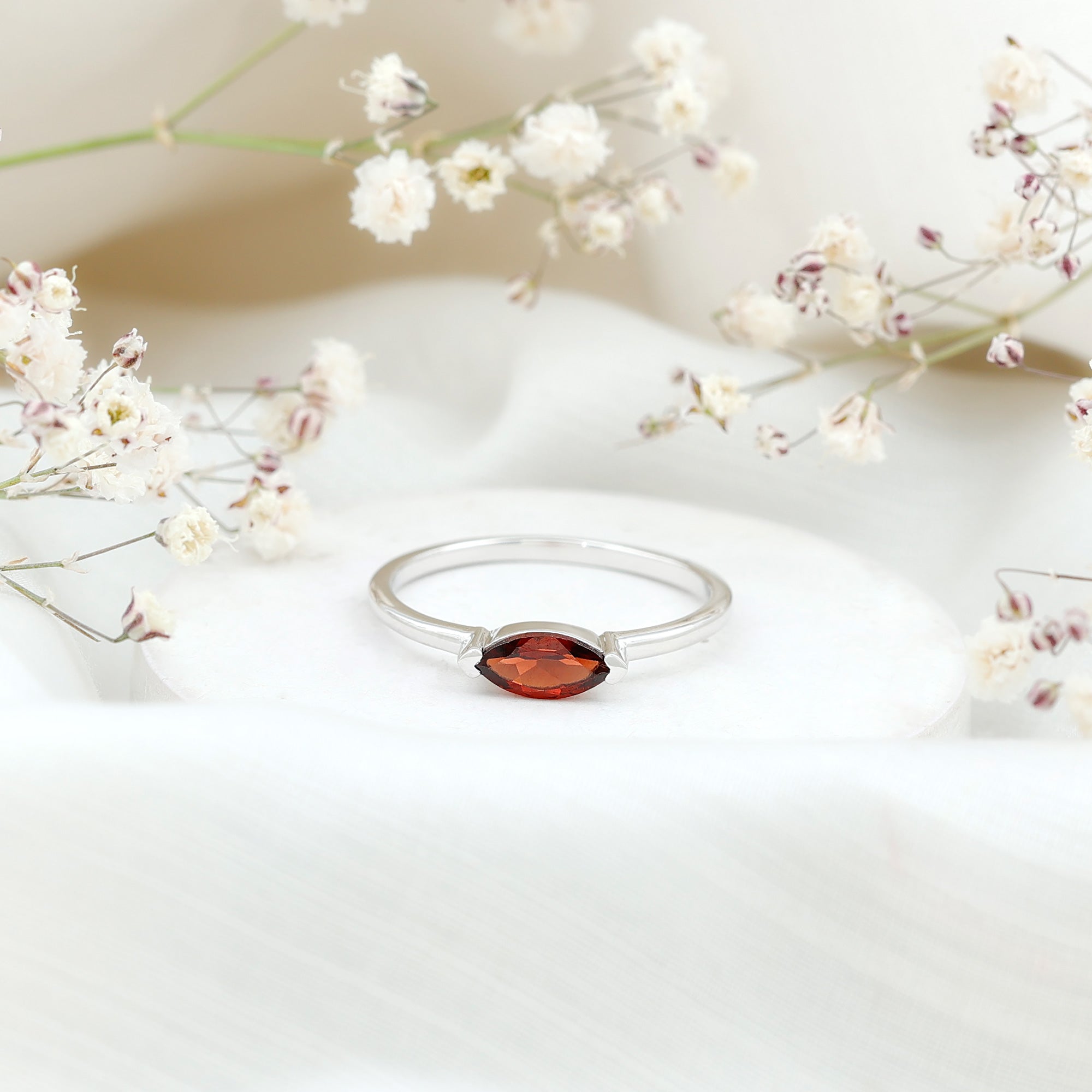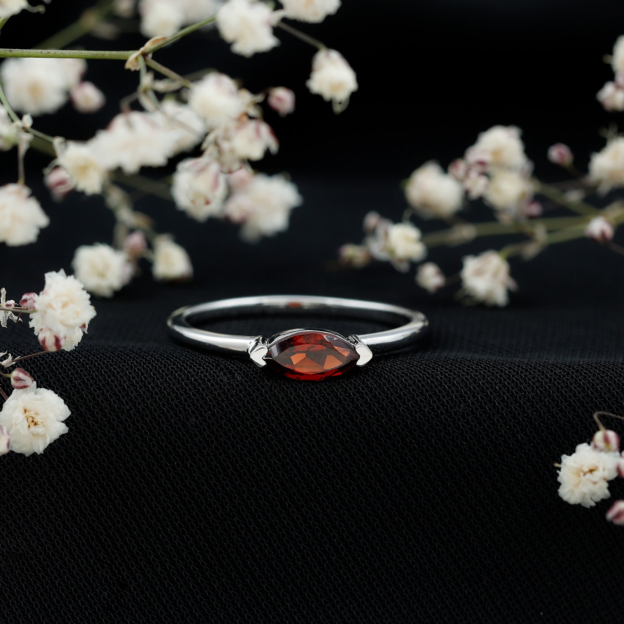 Invoke passion, energy, and protection with this Garnet Promise Ring. It features a 4X8 MM Marquise Shape Garnet secured in Half Bezel Setting. The minimalist ring can be presented as a promise ring to your special one to mark the beginning of the bond. This Marquise Solitaire Ring beholds the classic shine of AAAA Quality Garnet embedded in 14K White Gold Plated Silver, making it perfect ring for the occasion. Garnet invokes love, passion, trust and commitment which makes this ring perfect to mark the promise of forever love. This Marquise Promise Ring will express all your feelings to her without saying a single word. This January Birthstone Ring will be shipped to you in a premium packaging with a certificate of authenticity.