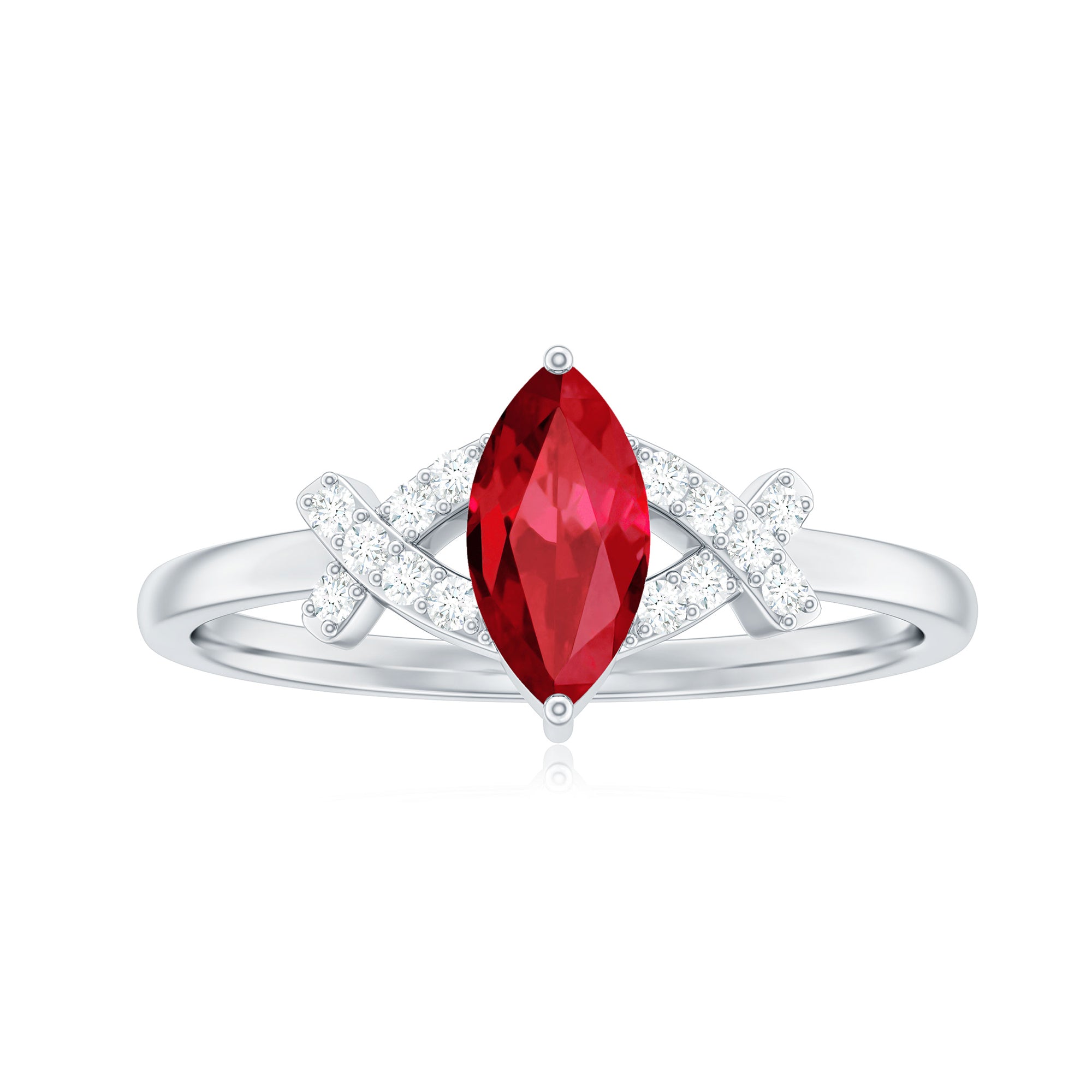 Marquise Cut Lab Created Ruby Designer Engagement Ring