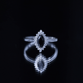 It is a Halo Ring consisting of Marquise Cut Created Black Diamond as a Solitaire embellished in Prong Setting with round shape Moissanite as Halo embellished in Prong Setting.