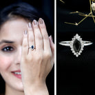 Marquise Cut Lab Grown Black Diamond Ring with Moissanite Halo