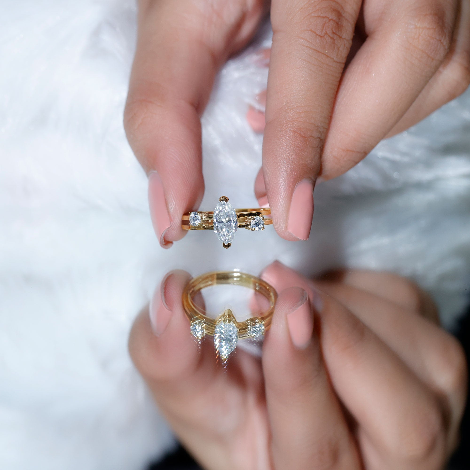 If you are in search of a ring that embodies modernity, significance, and a touch of sparkle, this Lab Grown Diamond Engagement Ring is the perfect choice. At its heart lies a stunning 5X10 MM Marquise Cut Lab Grown Diamond, elegantly set in a Prong Setting that radiates brilliance with its elongated shape. Crafted with EF-VS Quality Lab Grown Diamond stones, this Marquise Engagement Ring offers a clear and captivating sparkle. What truly distinguishes this ring is its Double Band design, embellished with 2 dazzling Round Shape Lab Diamond stones. Together, they present a look that is both unique and timeless, striking a balance between boldness and beauty. This Double Band Engagement Ring is ideal for someone who appreciates a blend of classic and contemporary styles. Available in US sizes 3 to 13, this 1 Carat Lab Grown Diamond Ring is designed for a perfect fit and everyday comfort. Whether you are planning a proposal or gifting it as a cherished present, it arrives in a beautiful jewelry box, ready to create an unforgettable moment. Simple, elegant, and deeply meaningful, this Solitaire Diamond Ring conveys everything you wish to express without the need for many words.