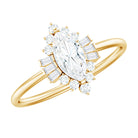 Capture the magic of vintage romance with this exquisite Antique Looking Engagement Ring, designed to mesmerize with timeless beauty and brilliant craftsmanship. At the heart of the design lies a striking 4X8 MM marquise cut moissanite, known for its exceptional fire and brilliance. The elongated shape flatters the finger while radiating elegance, making it a perfect symbol of enduring love. Encircling the center stone is a breathtaking halo of baguette and round moissanite stones, creating a radiant burst of sparkle reminiscent of Art Deco glamour. The combination of shapes elevates the aesthetic of this Moissanite Engagement Ring, adding a harmonious blend of vintage charm and modern brilliance. This Marquise Engagement Ring is ideal for those who appreciate intricate details and a classic silhouette with a twist. Whether worn as a symbol of a lifelong promise or cherished as a family heirloom in the making, its beauty is undeniable and everlasting. Crafted with precision for a graceful and comfortable fit, this Halo Engagement Ring is suited for everyday elegance or momentous occasions.