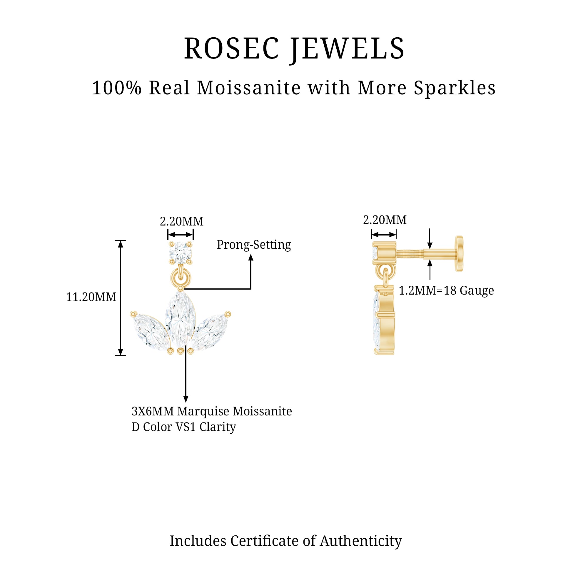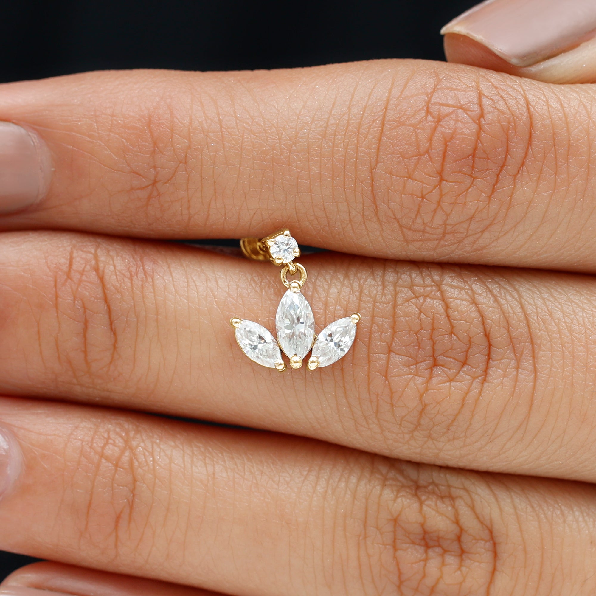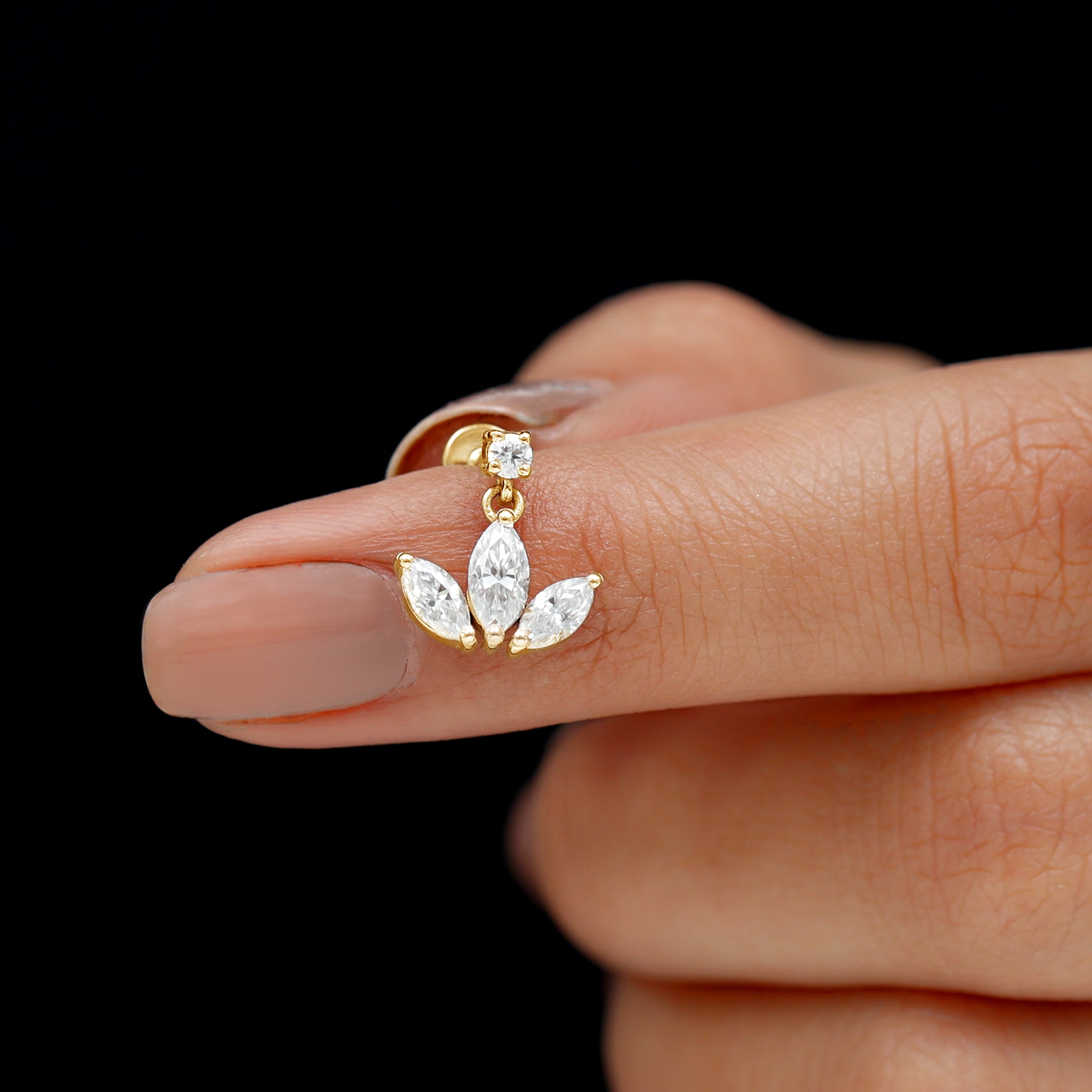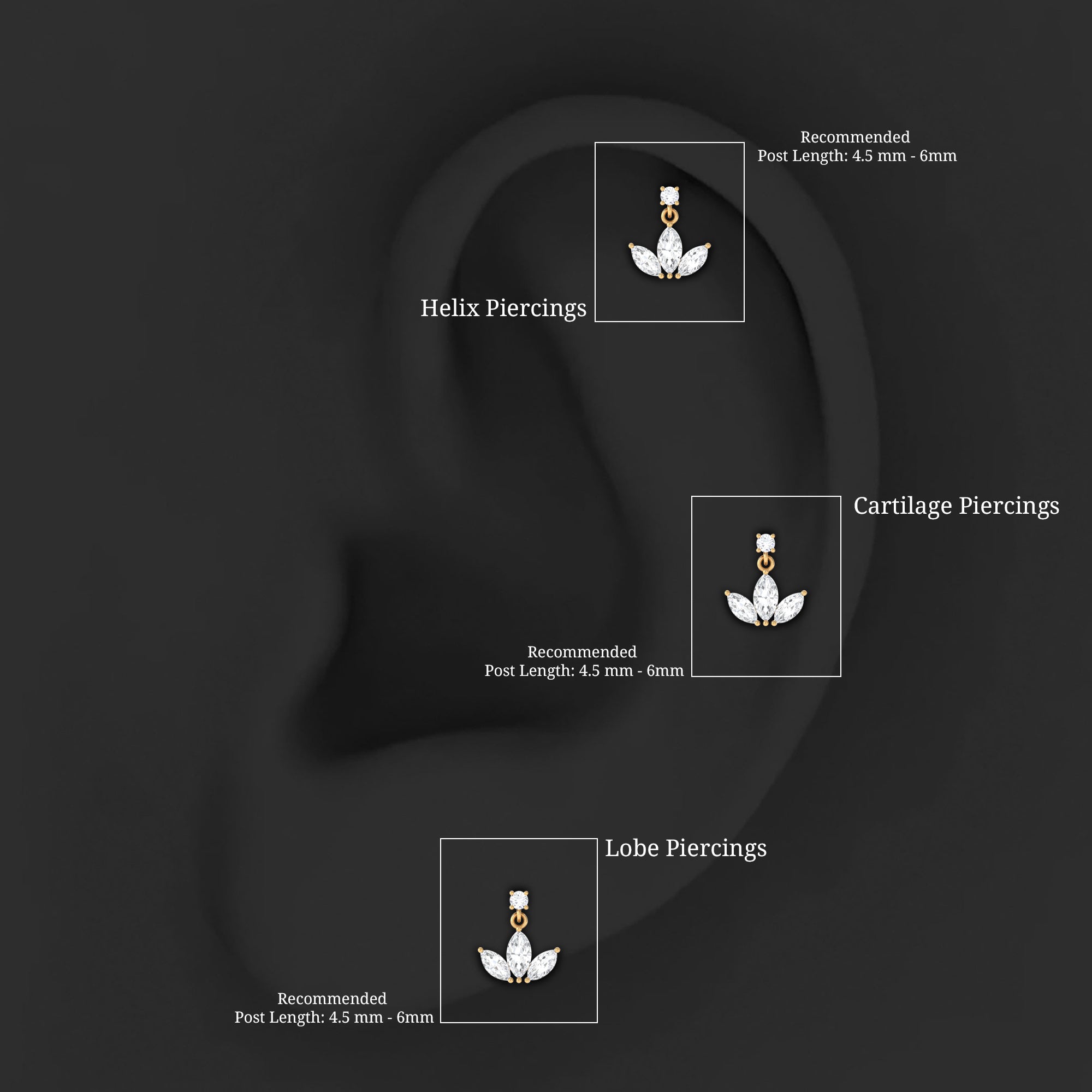 Marquise Cut Moissanite Lotus Flower Drop Helix Earring