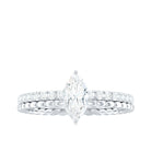 Win her heart with the stunning details of this Solitaire Engagement Ring, featuring a 4X8 MM Marquise Cut Moissanite (D-VS1 quality) securely set in 2 prongs. This unique and artistic touch, with shank embellished with a row of surface prong set round cut moissanites for a constant sparkle, closed with the other displays delicate scalloped metal motifs for a contemporary vibe. Together, these elements in this Big Moissanite Engagement Ring create the look of a stackable ring while ensuring the comfort of a single band. Designed to symbolize everlasting love, this Marquise Moissanite Ring is perfect for the bride who values elegance, uniqueness, and timeless beauty. It comes beautifully packaged in a premium jewelry box, ready to be gifted and cherished for a lifetime. Made with precision and style, the Marquise Engagement Ring is offered in various metal types and colors, providing a luxurious and sustainable symbol of your connection.