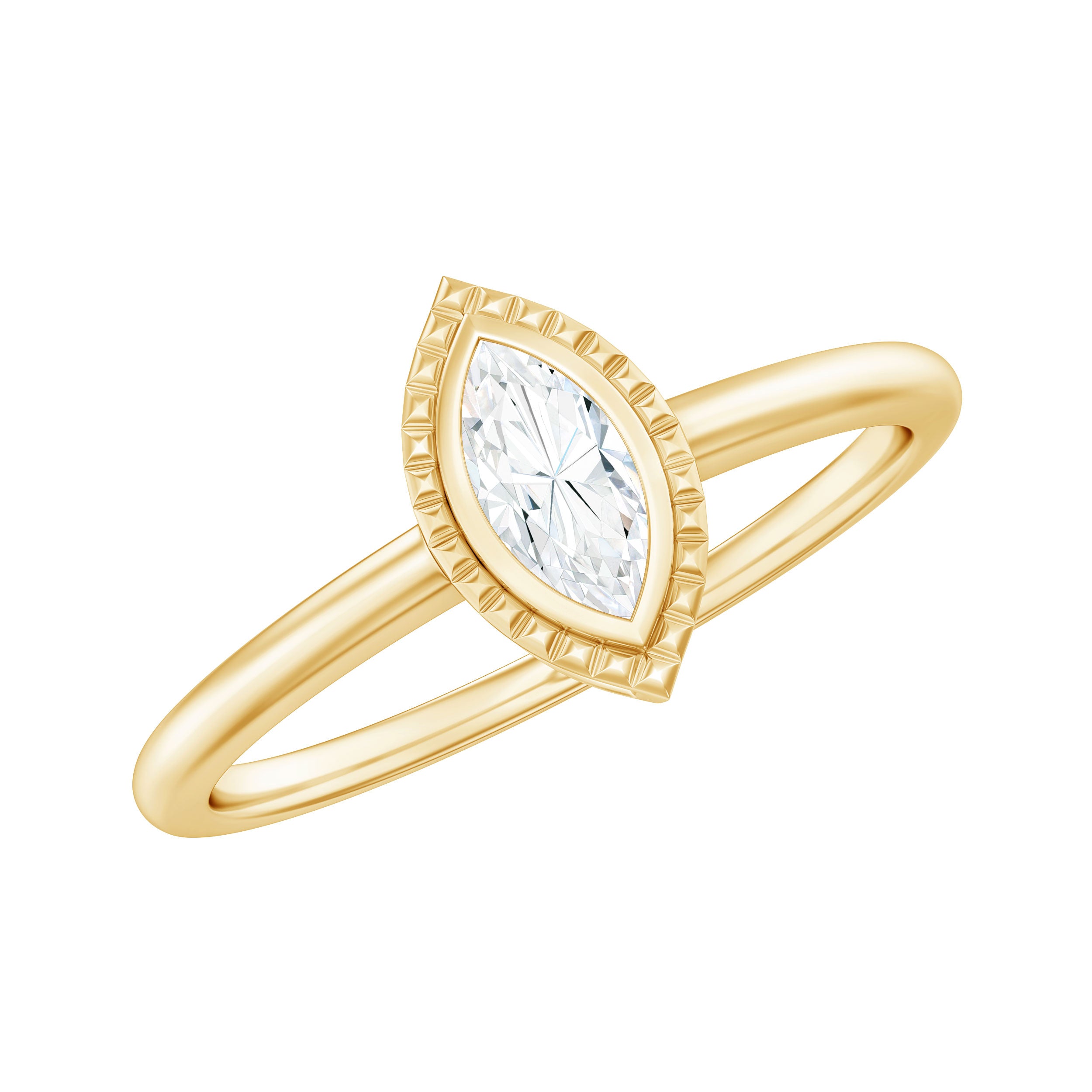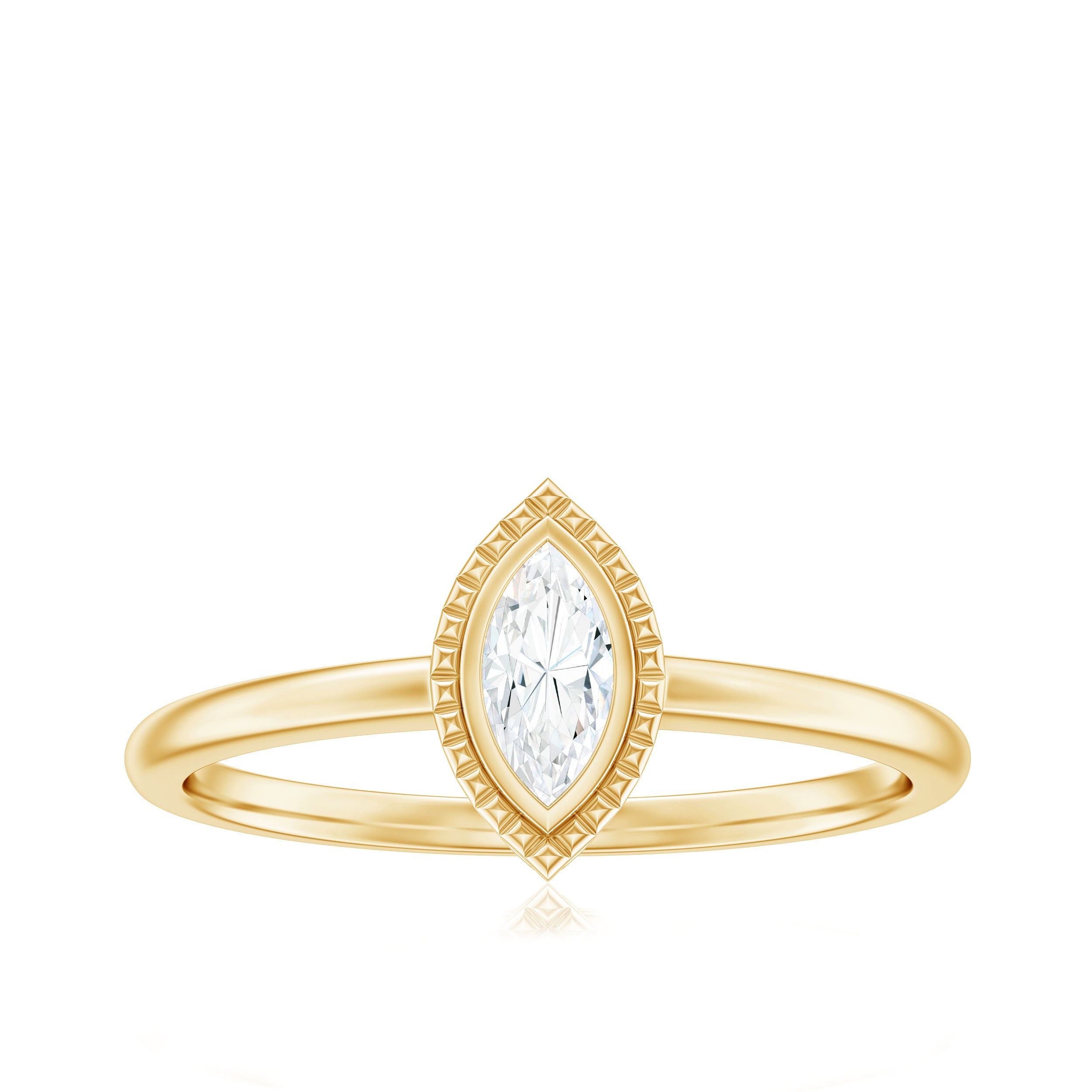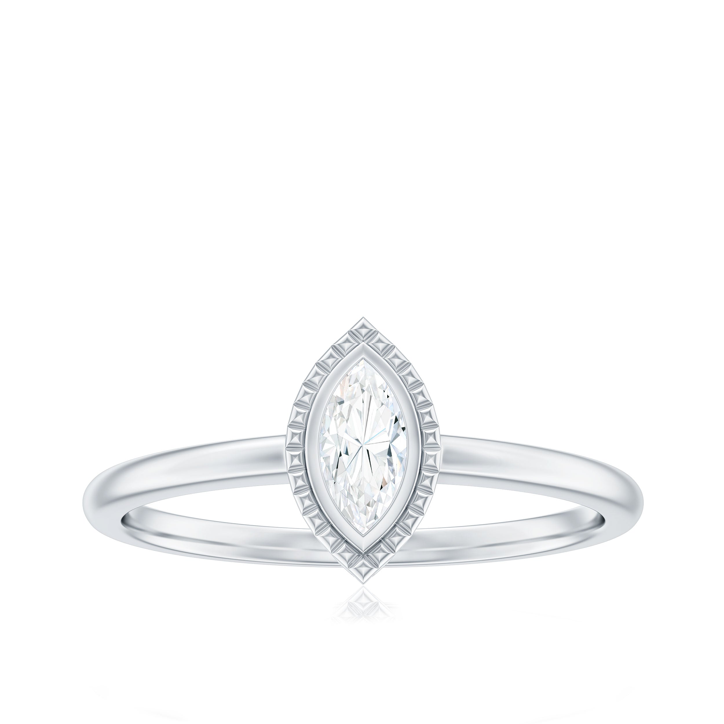 Marquise Cut Moissanite Solitaire Ring in Bezel Setting