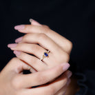 Experience the enchanting beauty of this solitaire ring, featuring a marquise-cut created blue sapphire held securely in a 2-prong setting. The lustrous shank is adorned with a stunning celtic design, accented with shimmering Diamond stones. This celtic knot ring represents eternal love and faithfulness. With a total weight of 1 carat and a quality rating of AAAA, the created blue sapphire gemstone is of the highest standard. Rest assured that all of our gemstones undergo strict quality checks and come with certification, ensuring that you are getting the best.