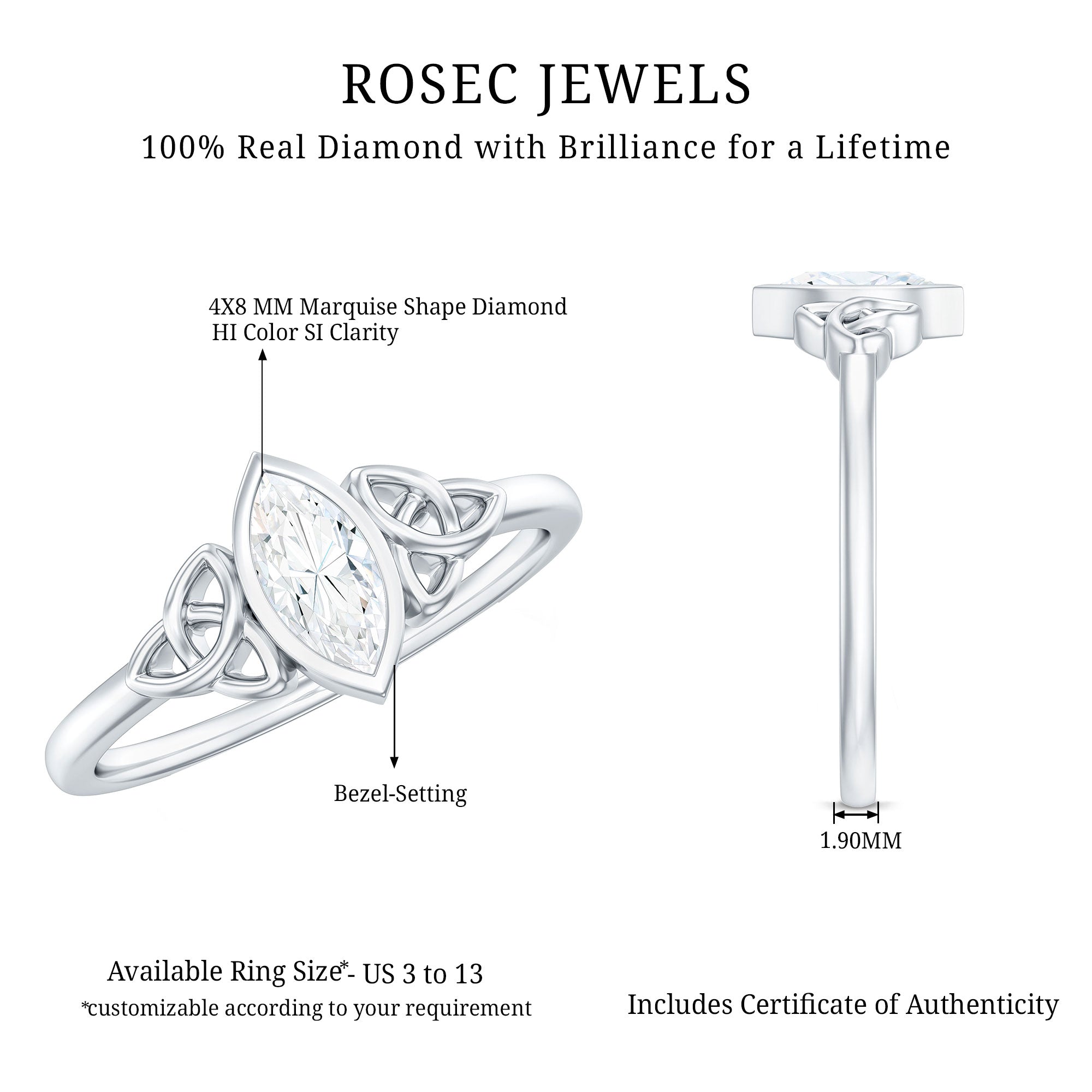 Marquise Cut Solitaire Diamond Celtic Knot Ring in Bezel Setting