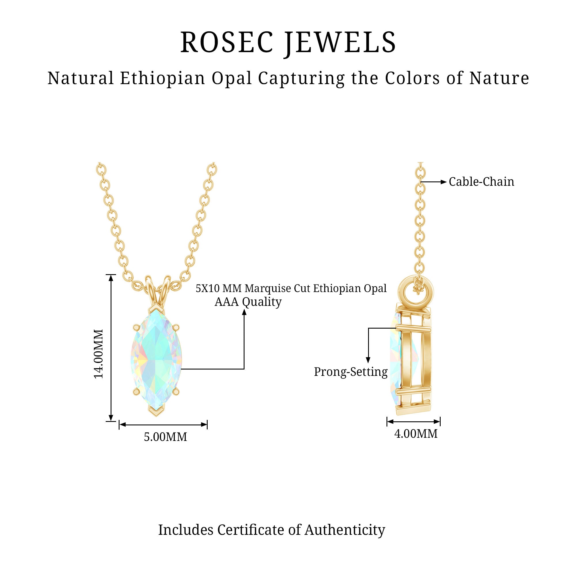 Marquise Cut Solitaire Ethiopian Opal Birthstone Necklace with Chain