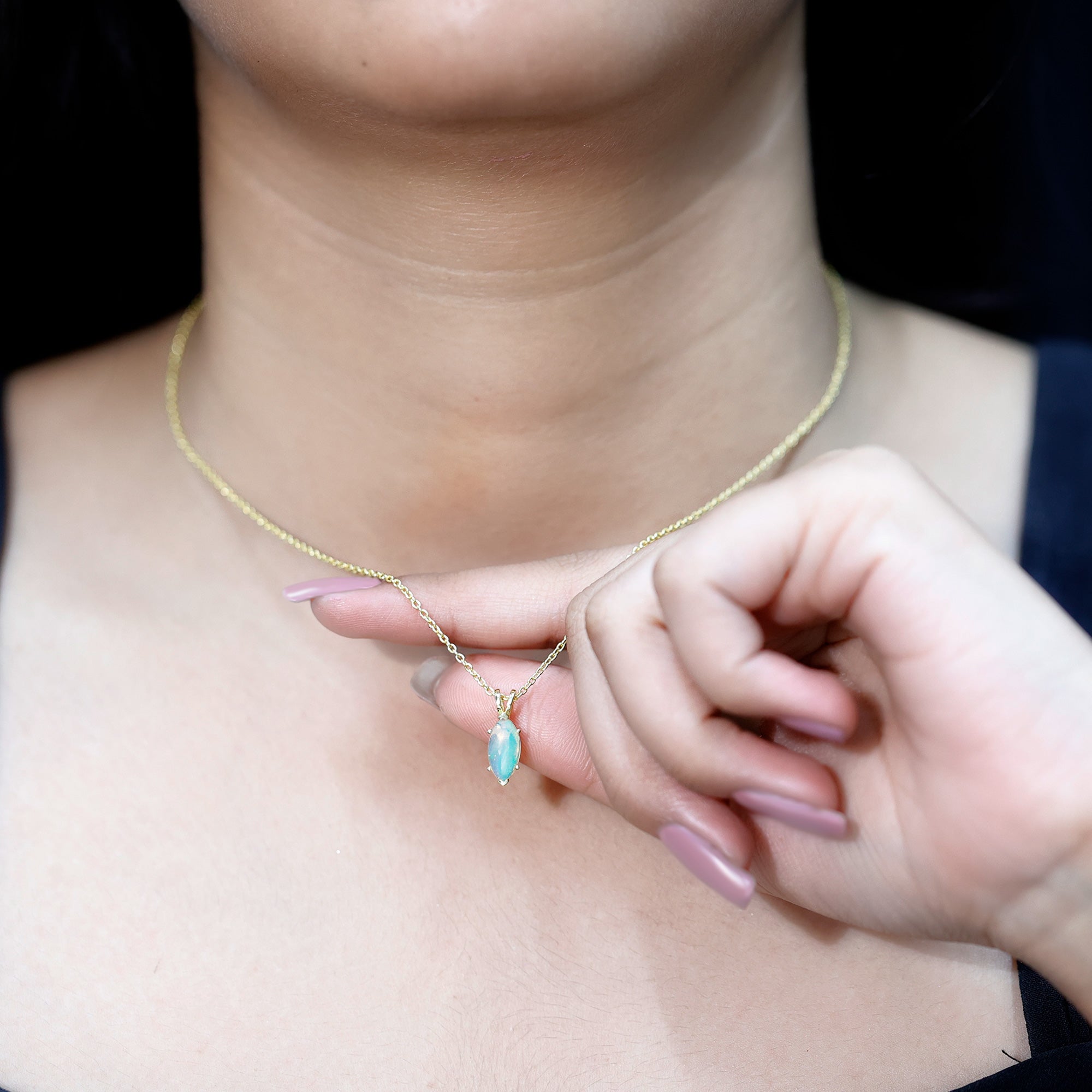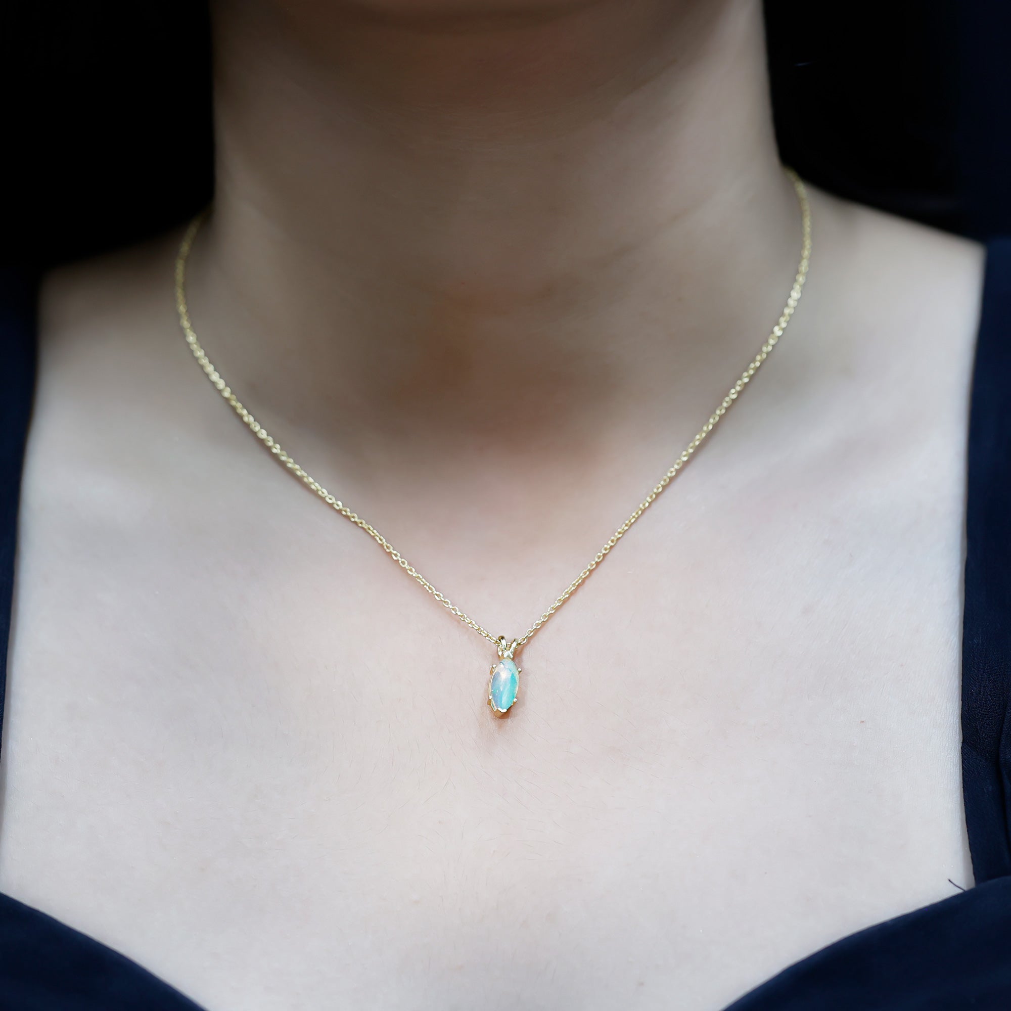 Born in the season of color and change, October hearts deserve something just as magical, like this stunning Ethiopian Opal Necklace that captures the beauty of transformation and individuality. Beautifully handcrafted in 14k yellow gold plated silver, this stunning Solitaire Pendant features a 5X10 MM marquise cut Ethiopian opal. The opal is set securely in a safe prong setting, allowing the stone’s natural beauty to shine without distraction. A graceful rabbit ear bail connects the Opal Pendant Necklace to a fine, adjustable chain that closes with a secure lobster clasp, giving you the option to wear it at the perfect length for any outfit. This Marquise Cut Pendant is a thoughtful gift for anyone born in October, or simply someone who appreciates rare, meaningful gemstones. The AAA quality Ethiopian Opal and polished metal create a clean yet eye-catching look, ideal for both everyday wear and special occasions. Whether you are celebrating a birthday, anniversary, or personal milestone, this October Birthstone Necklace is a beautiful symbol of confidence, creativity, and timeless beauty. Arriving in a signature jewelry box, it is ready to be gifted , or cherished as your own radiant reminder of elegance.