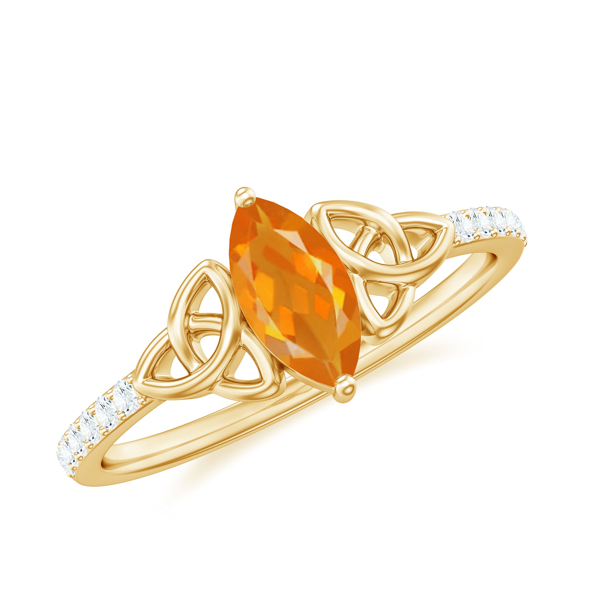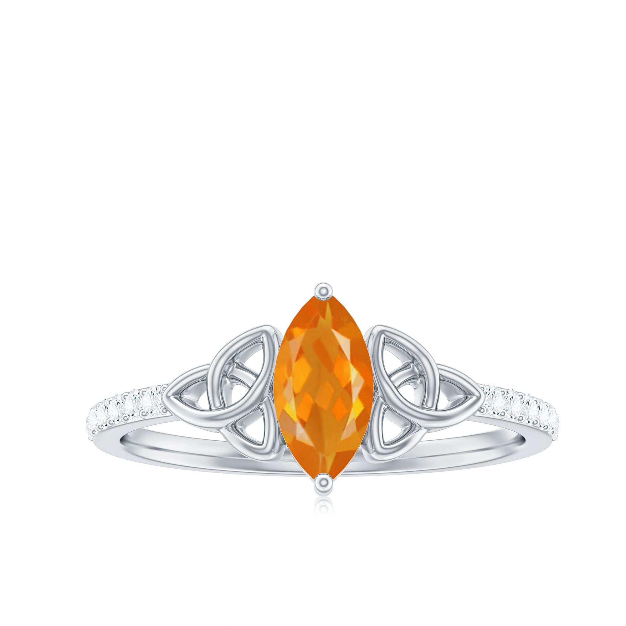 Marquise Cut Solitaire Fire Opal Celtic Knot Ring with Diamond