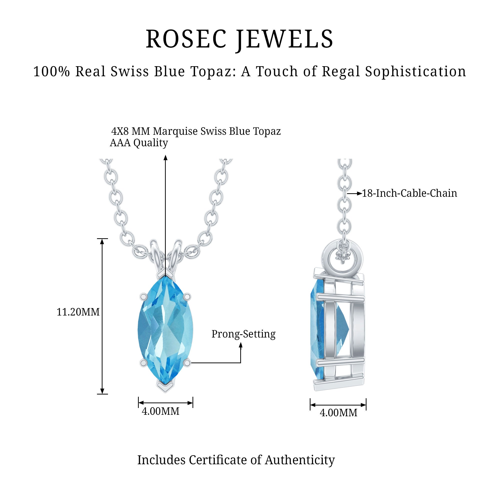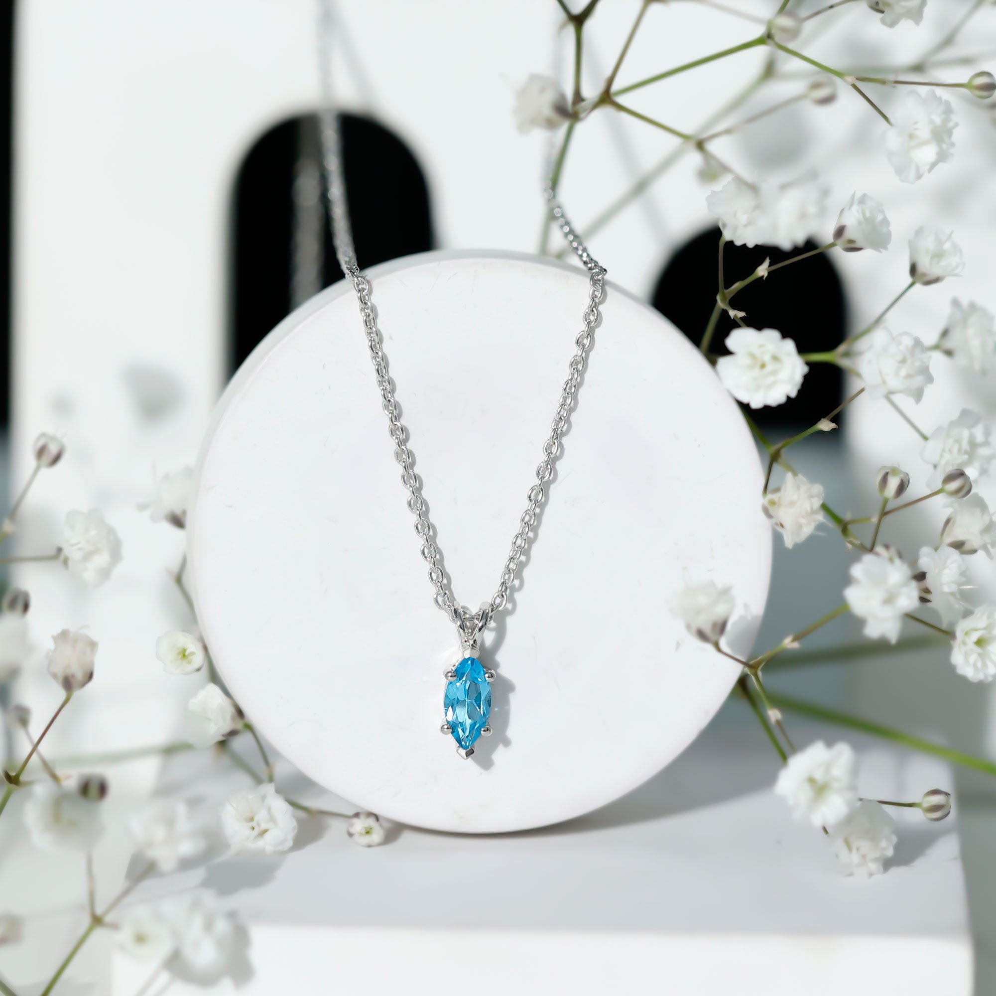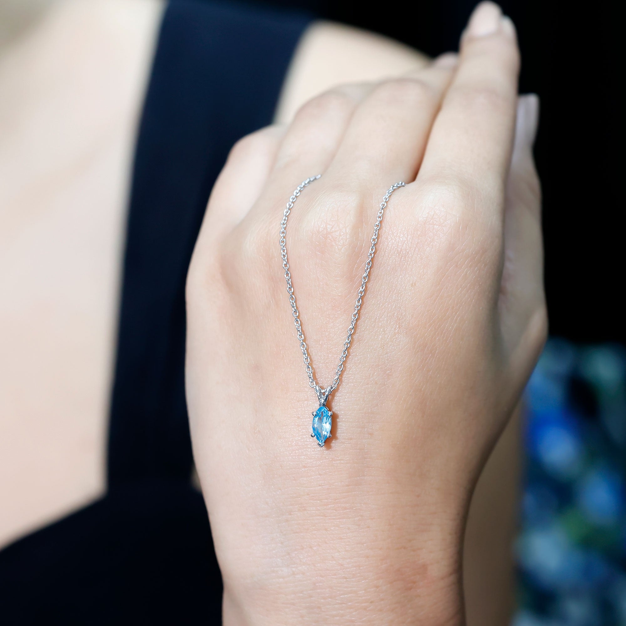 Marquise Cut Swiss Blue Topaz Solitaire Pendant with Silver Chain