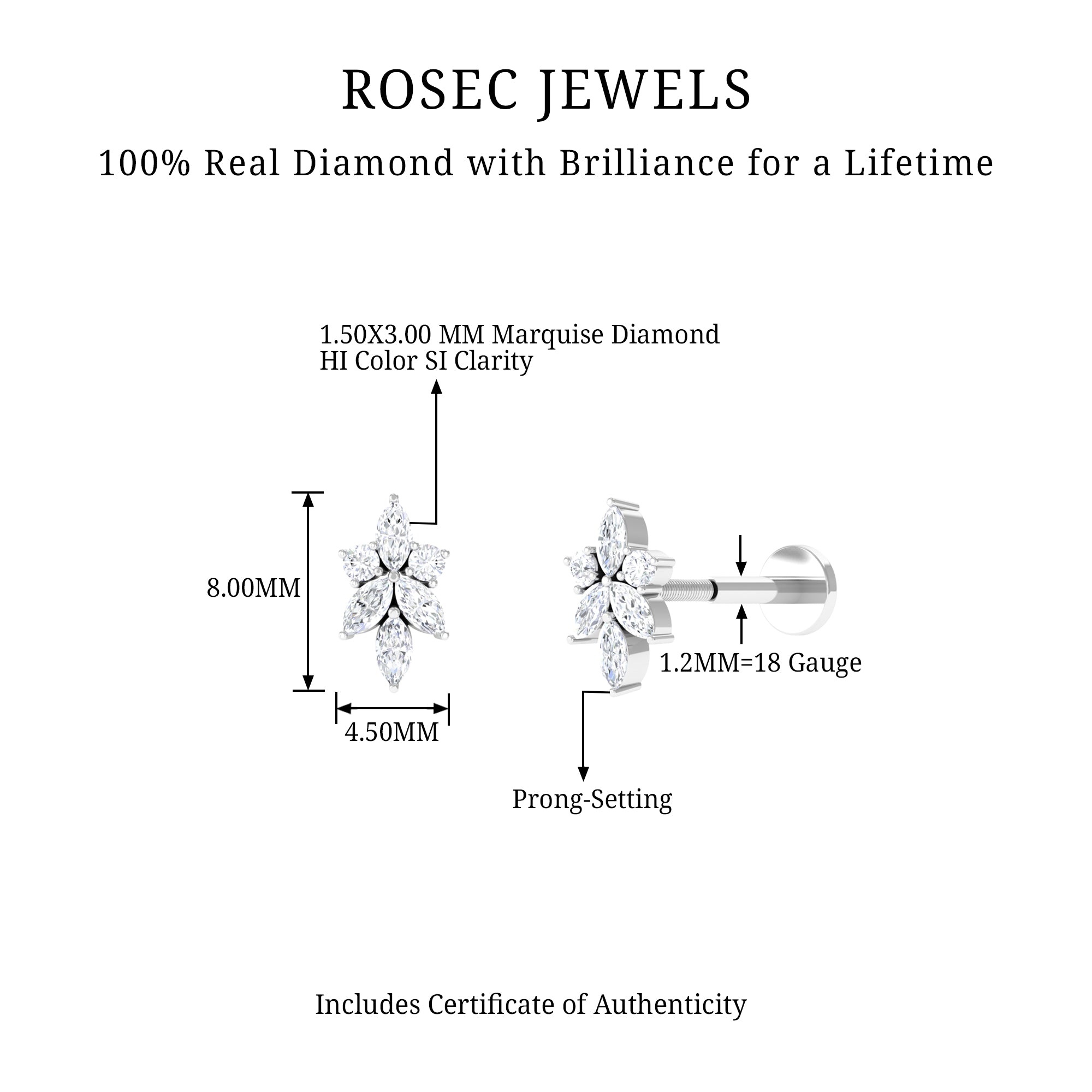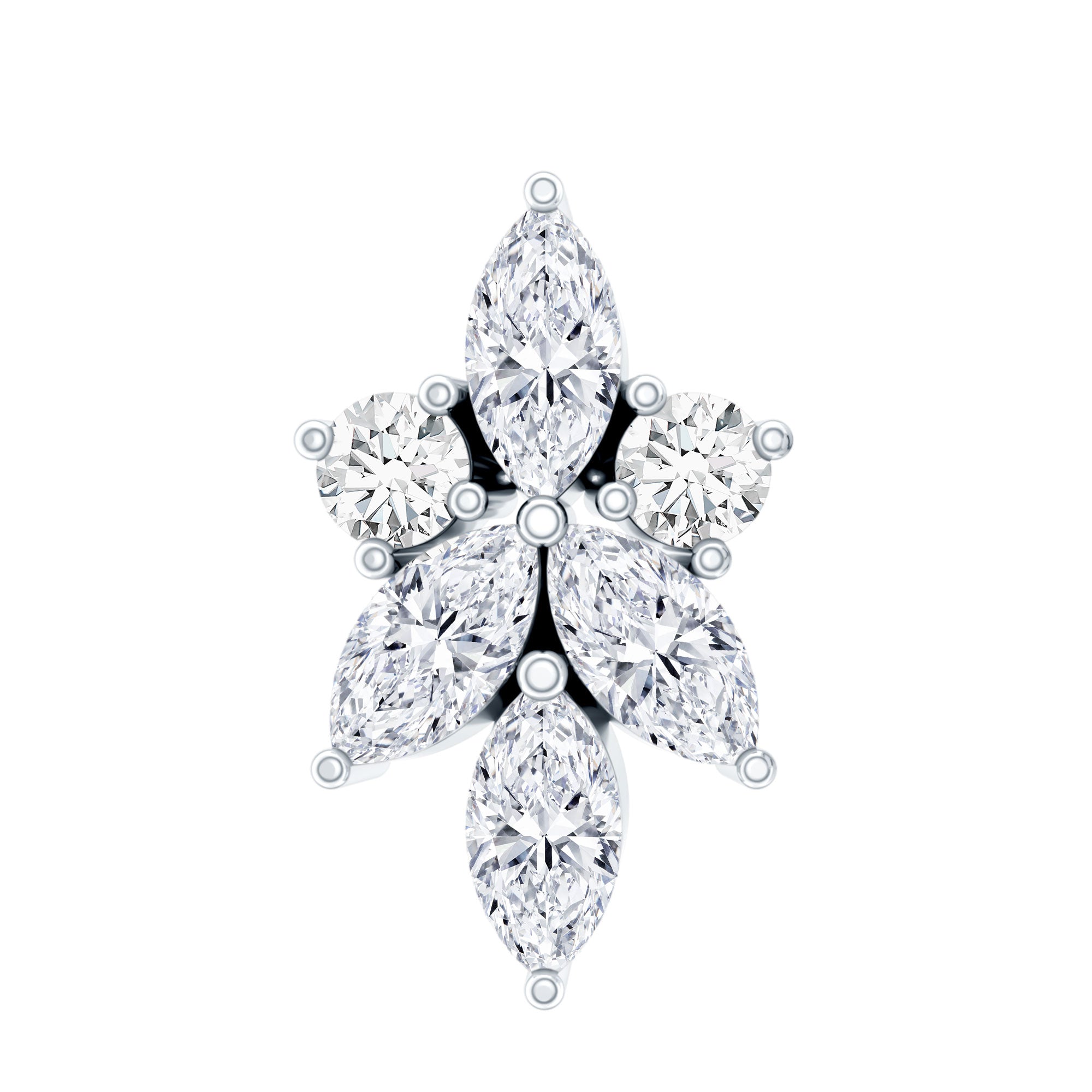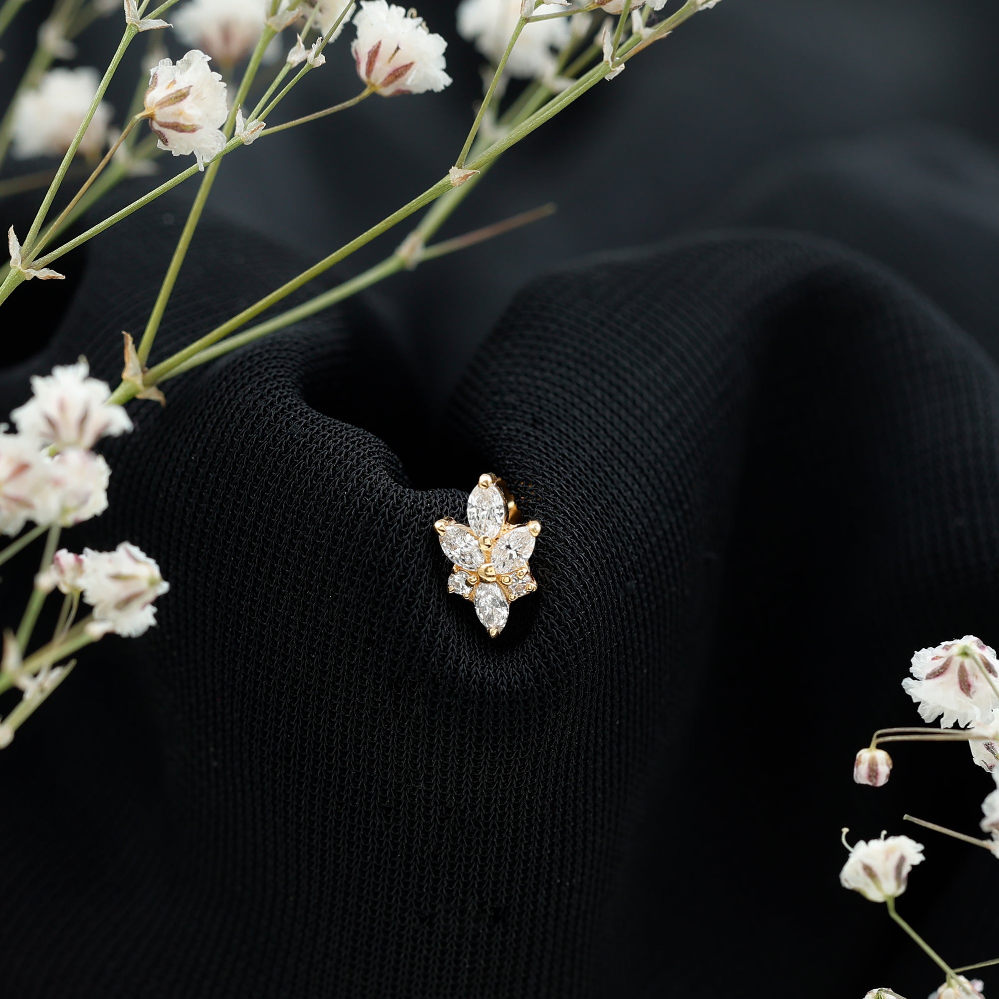 Marquise Diamond Cluster Flower Earring with Flat Back