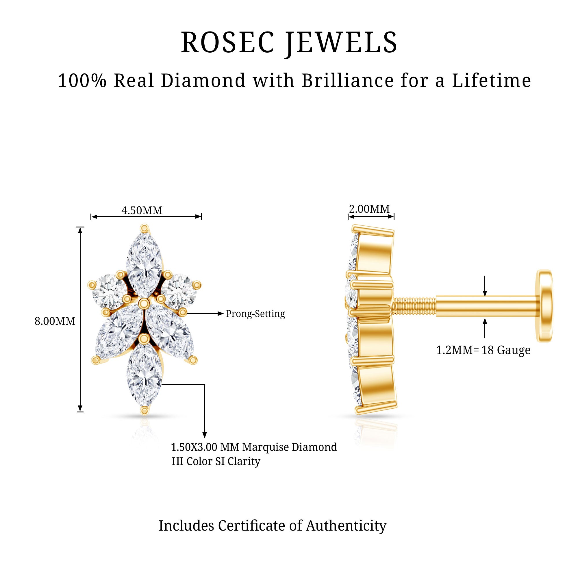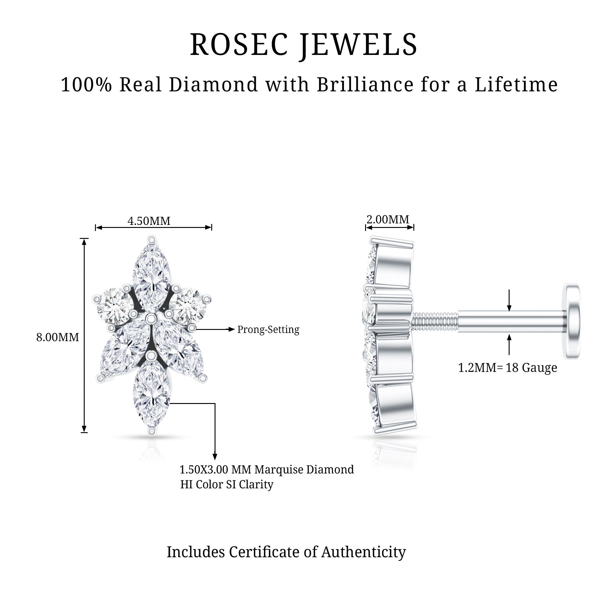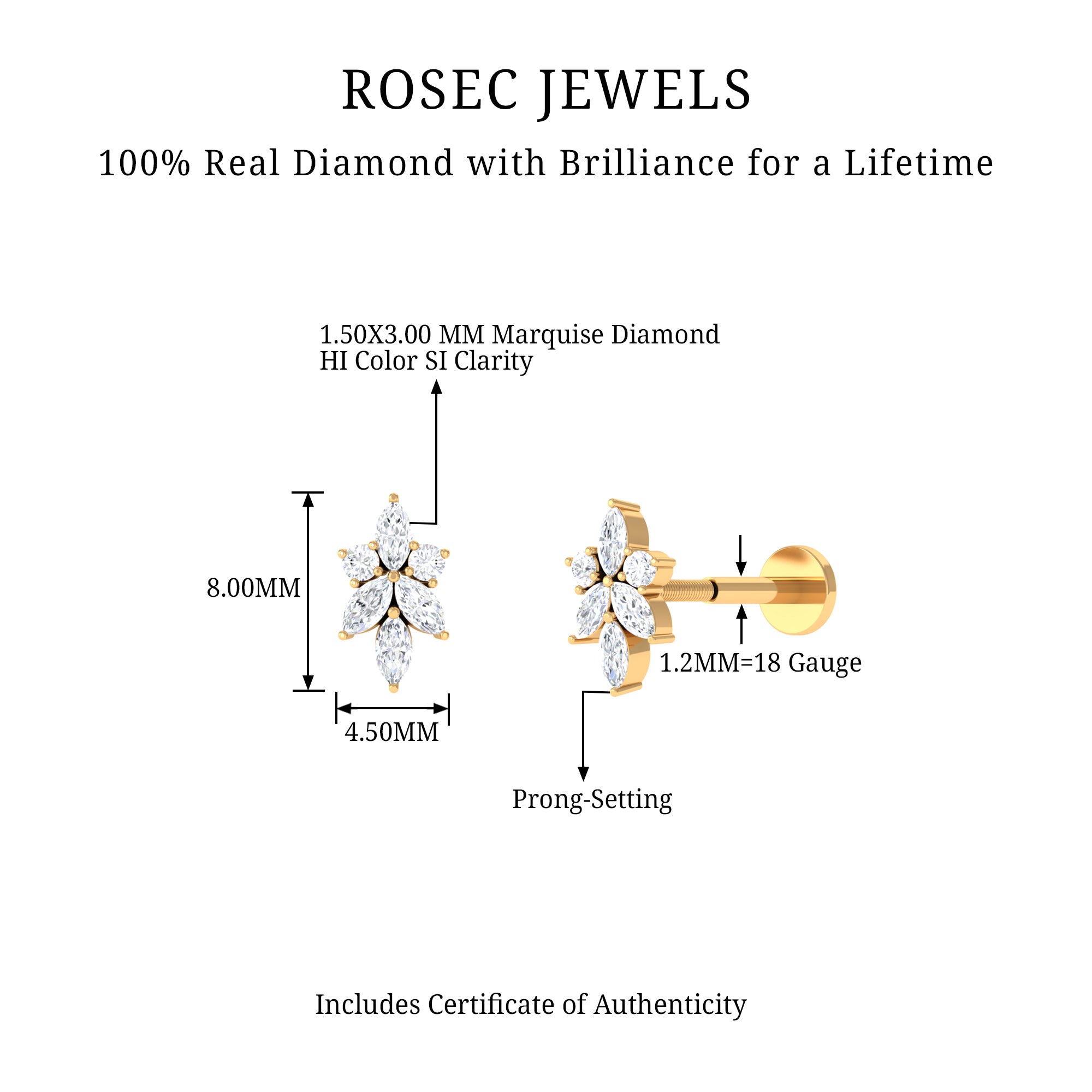 Marquise Diamond Cluster Flower Earring with Flat Back