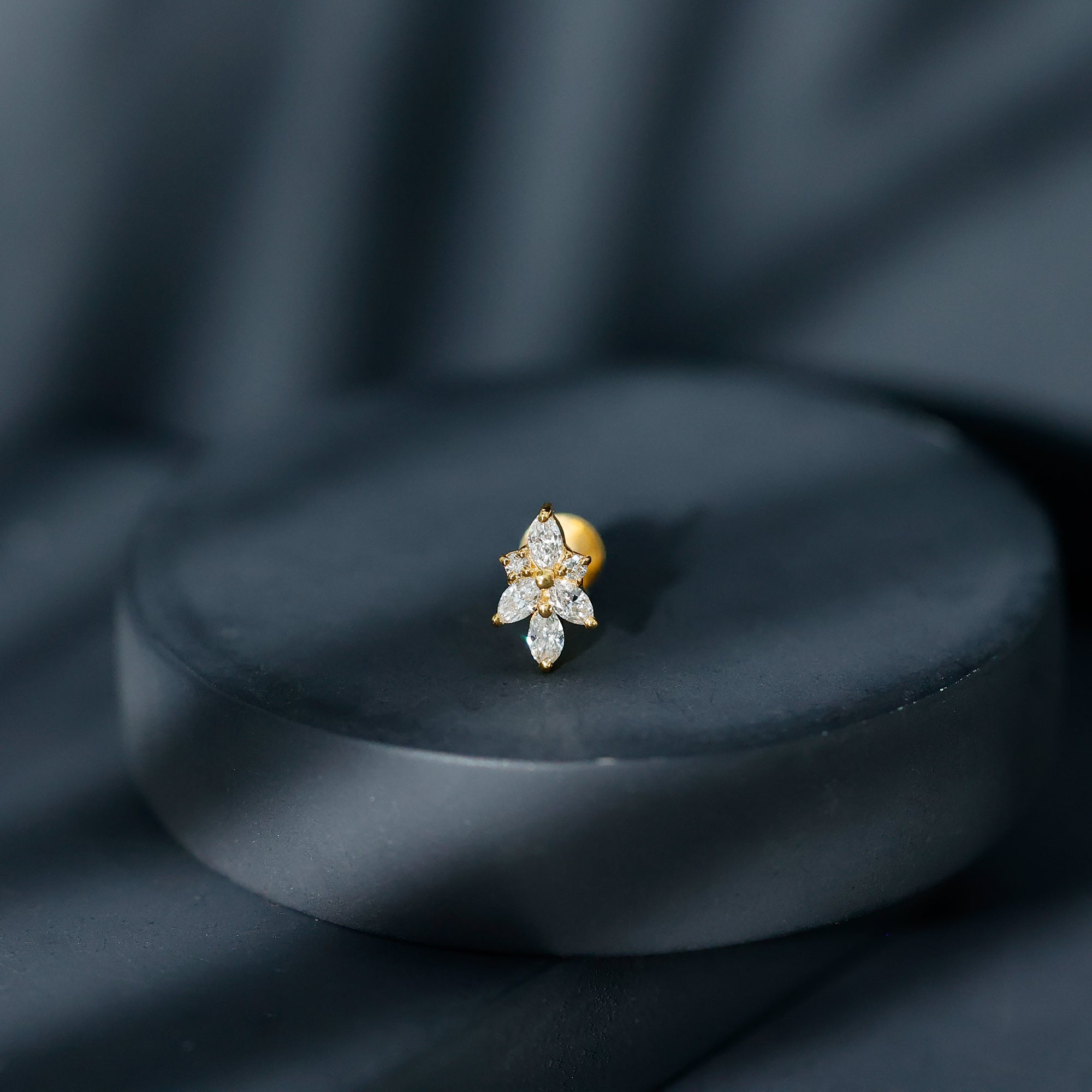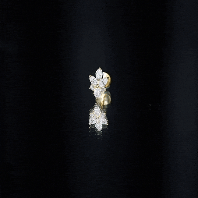 - You can wear this Diamond Flower Earring on the Conch, Helix, Cartilage, and Upper Lobe, it adds a touch of natures beauty to your unique style.