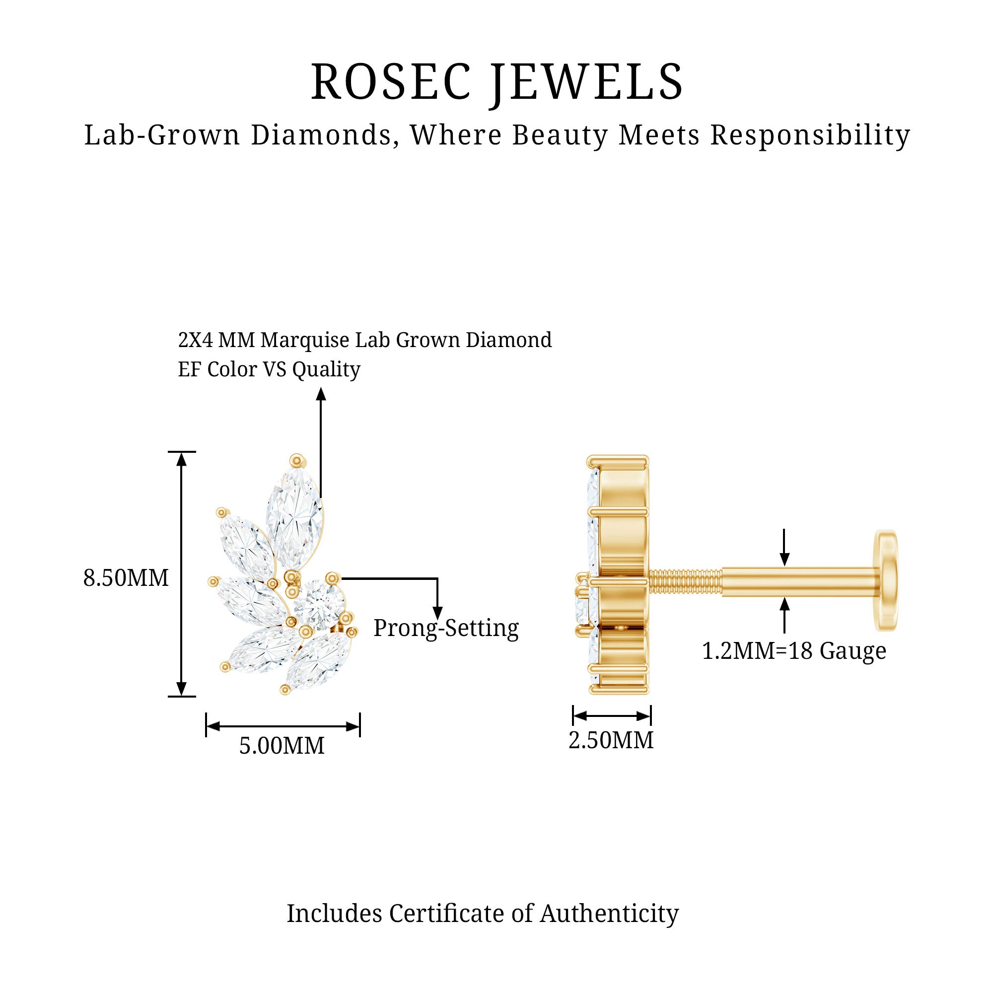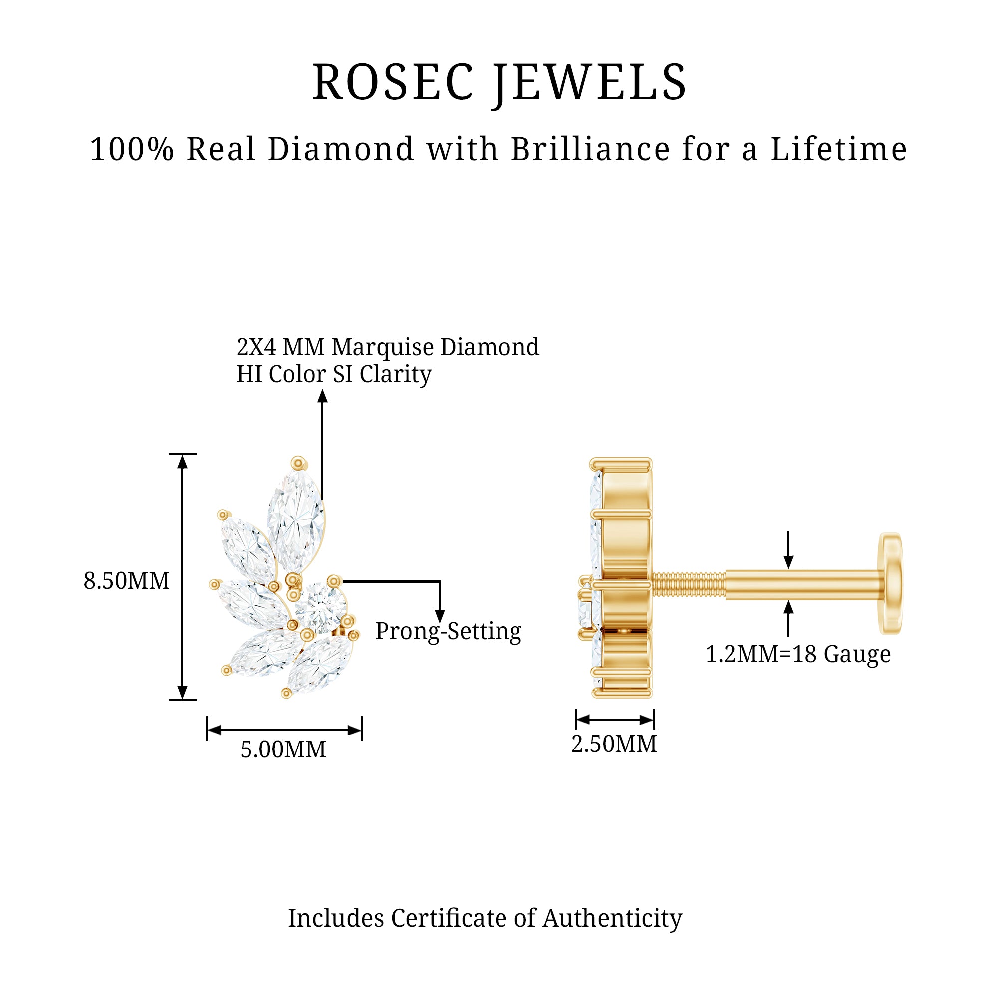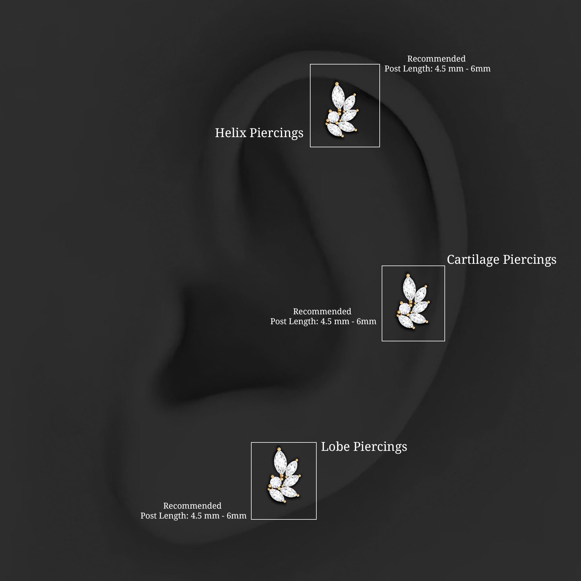 Marquise Diamond Leaf Cluster Earring for Cartilage Piercing