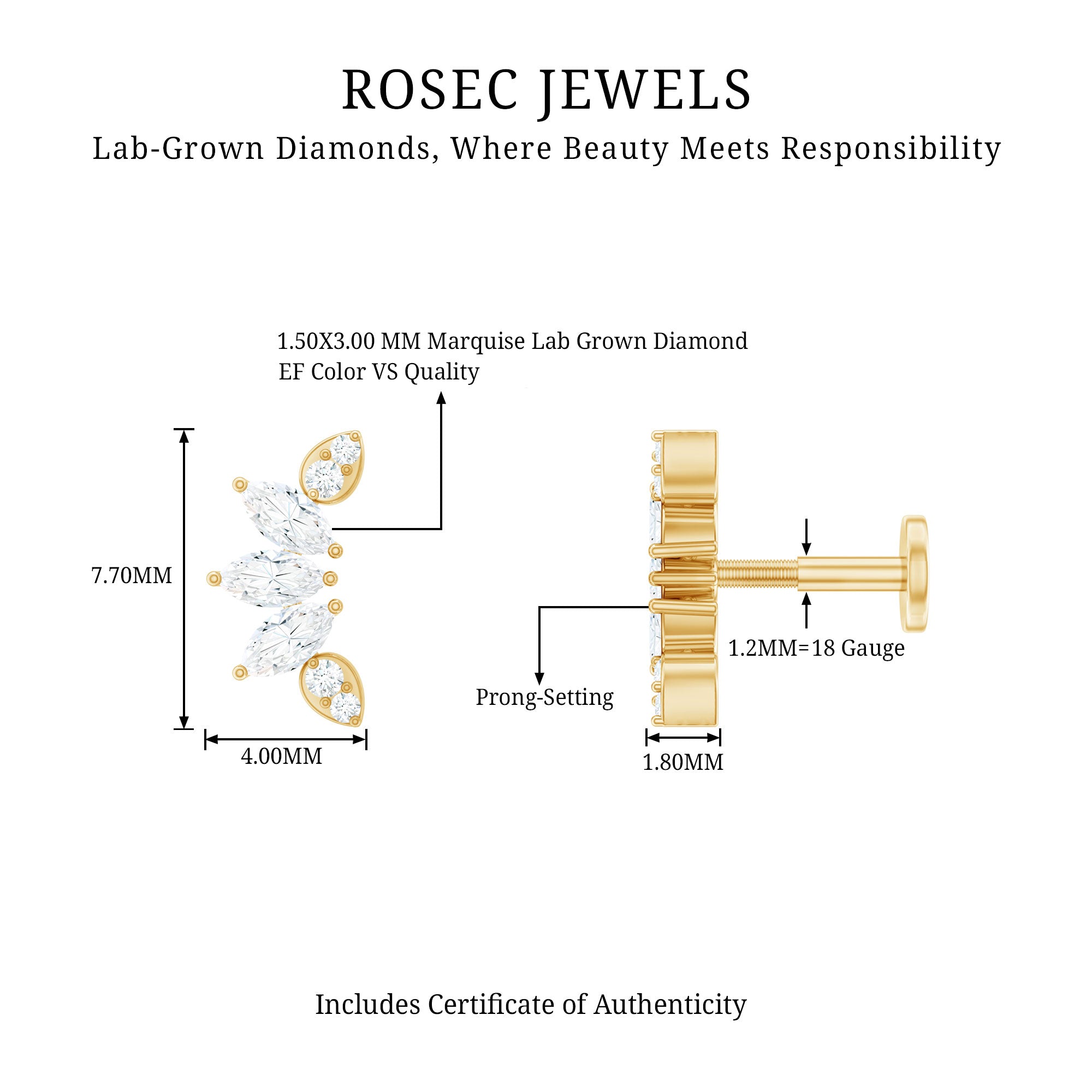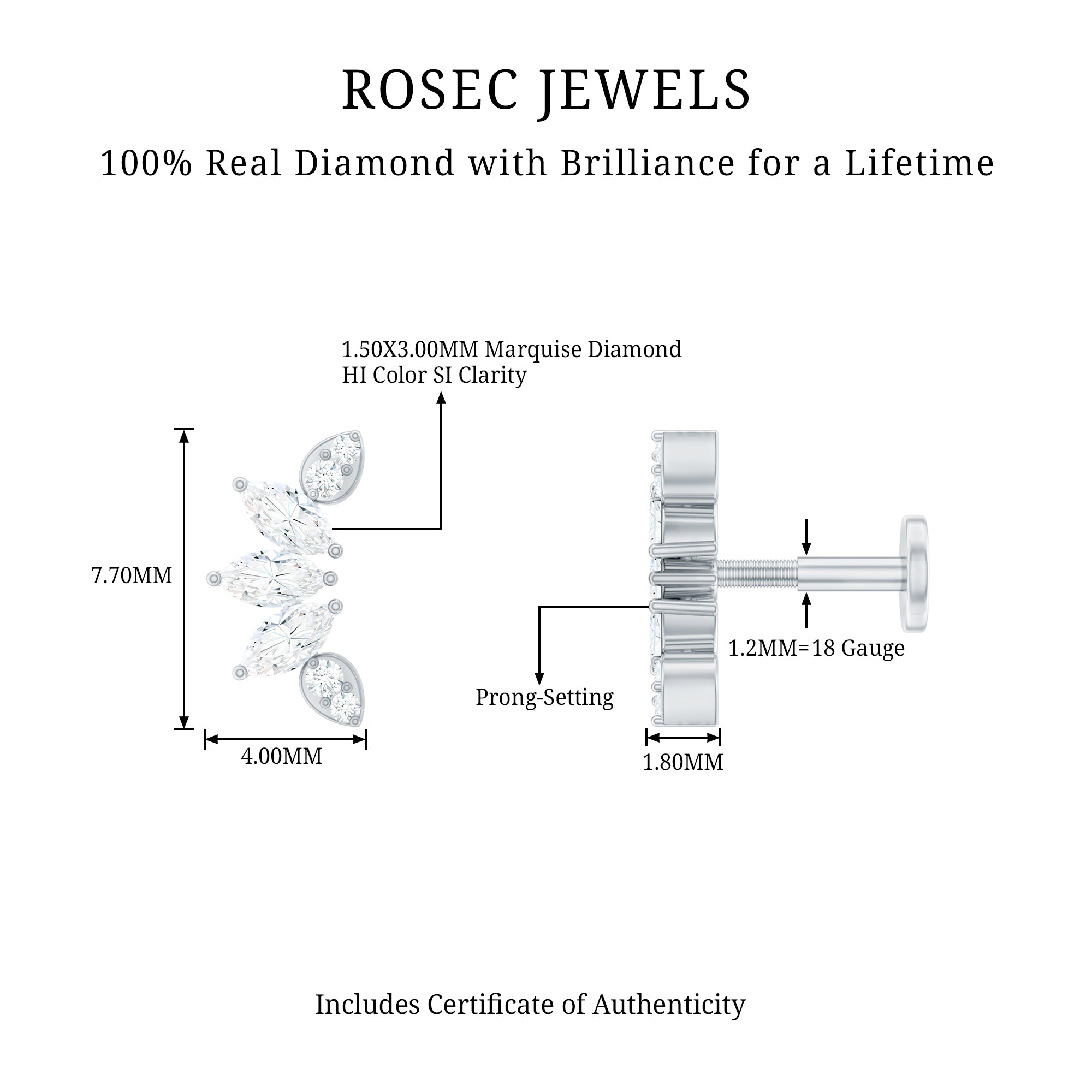 Marquise Diamond Leaf Crawler Earring for Helix Piercing