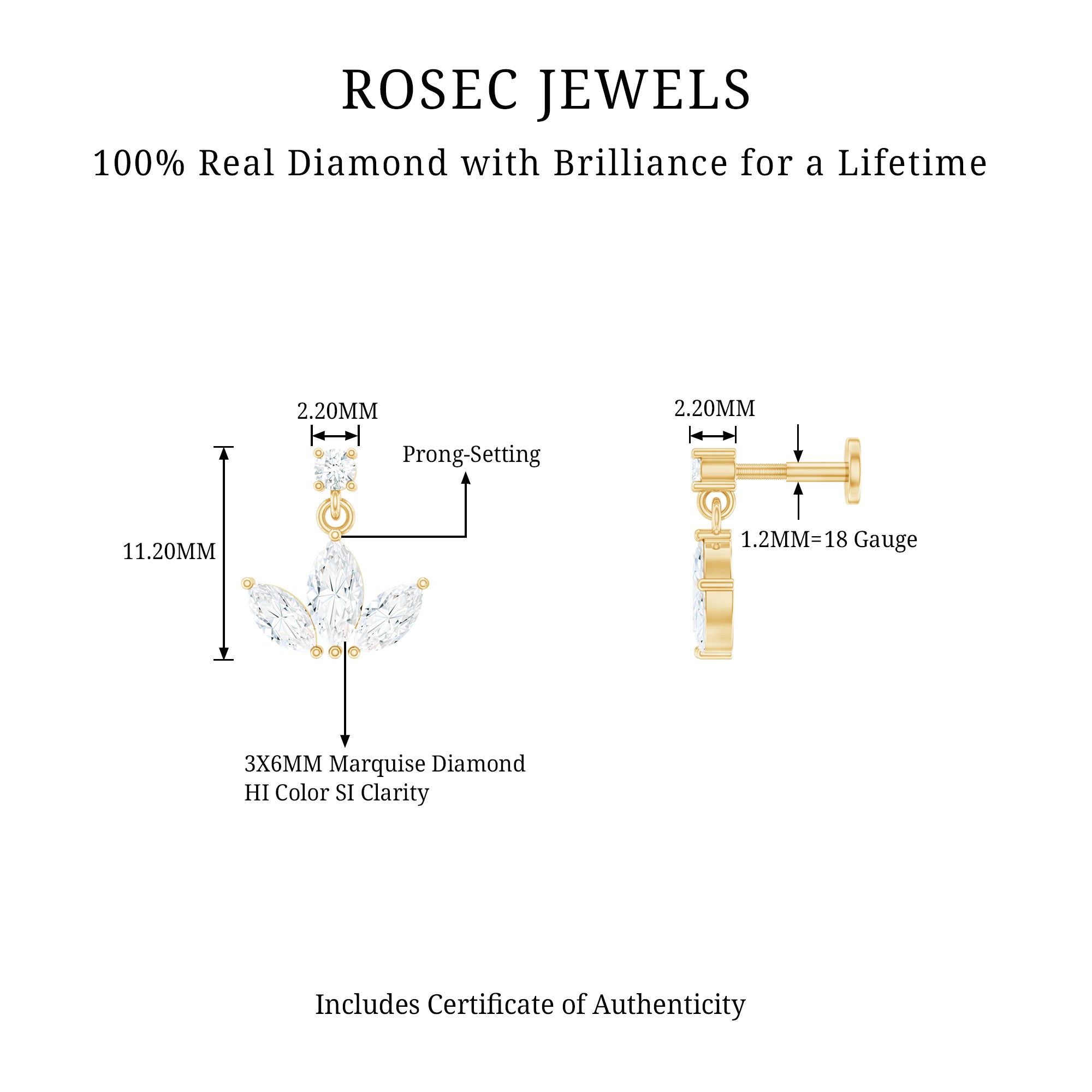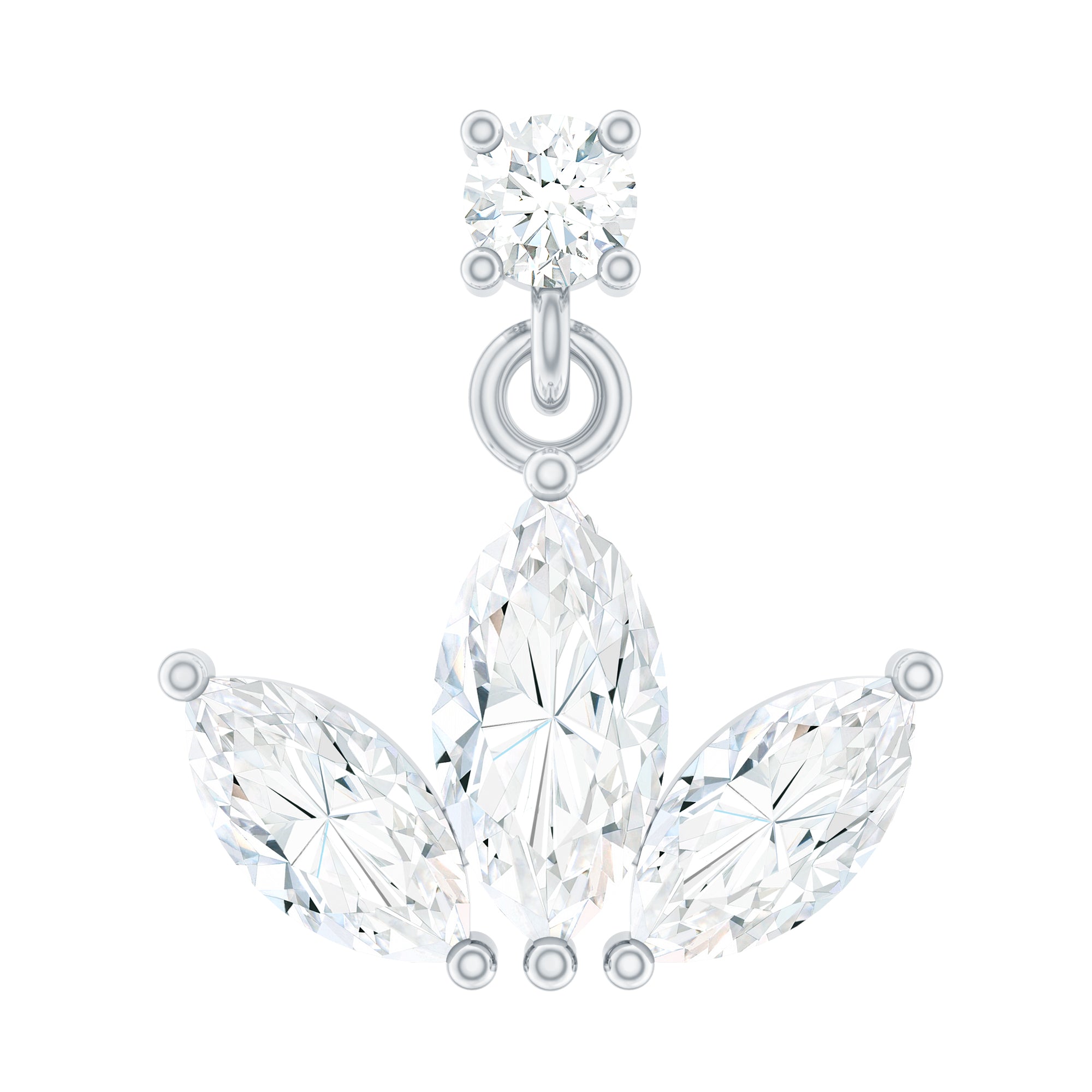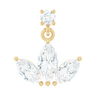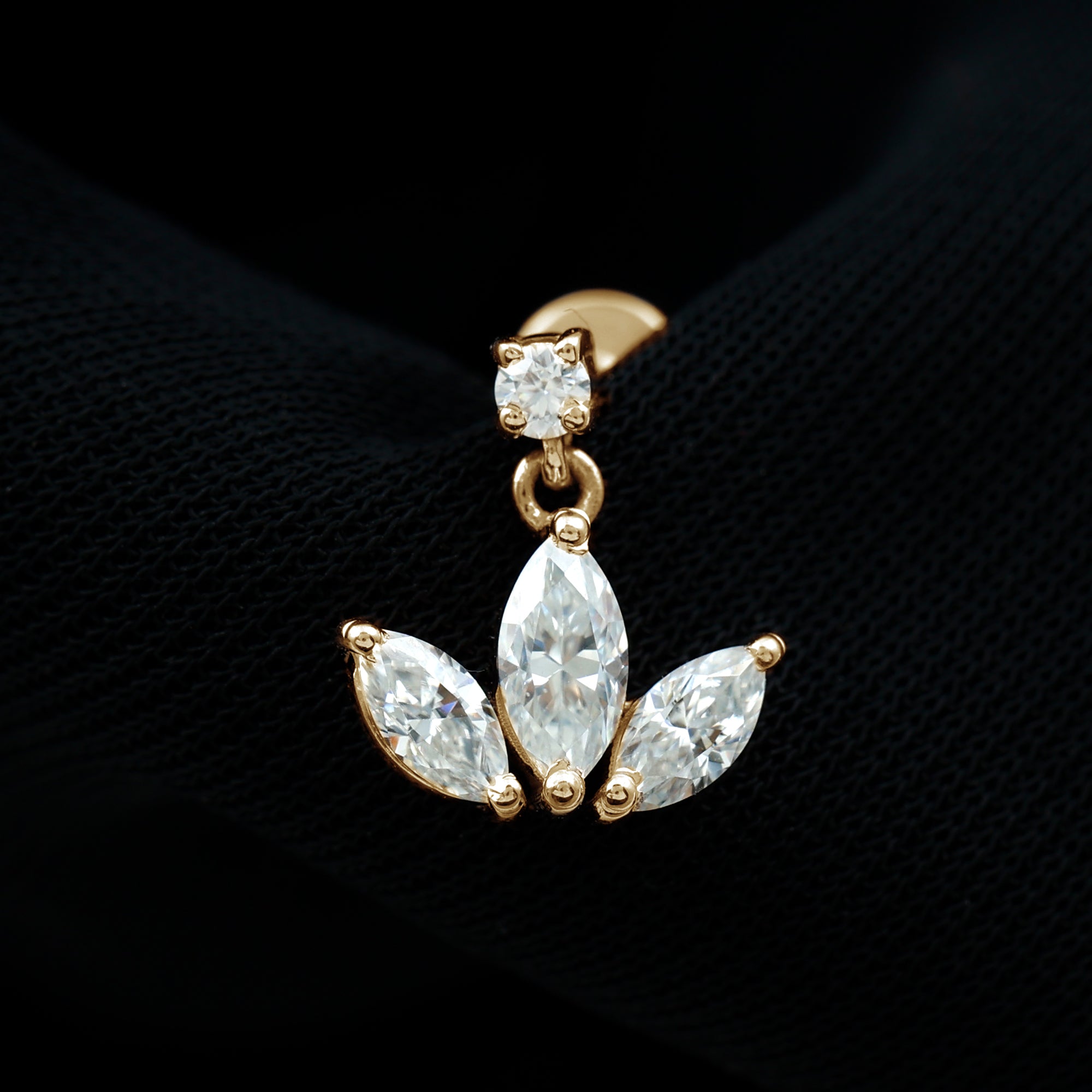 - Showcasing a round shape diamond on the top while a trio of marquise shape diamonds hanging as drop resembling a lotus, secured by prong setting.