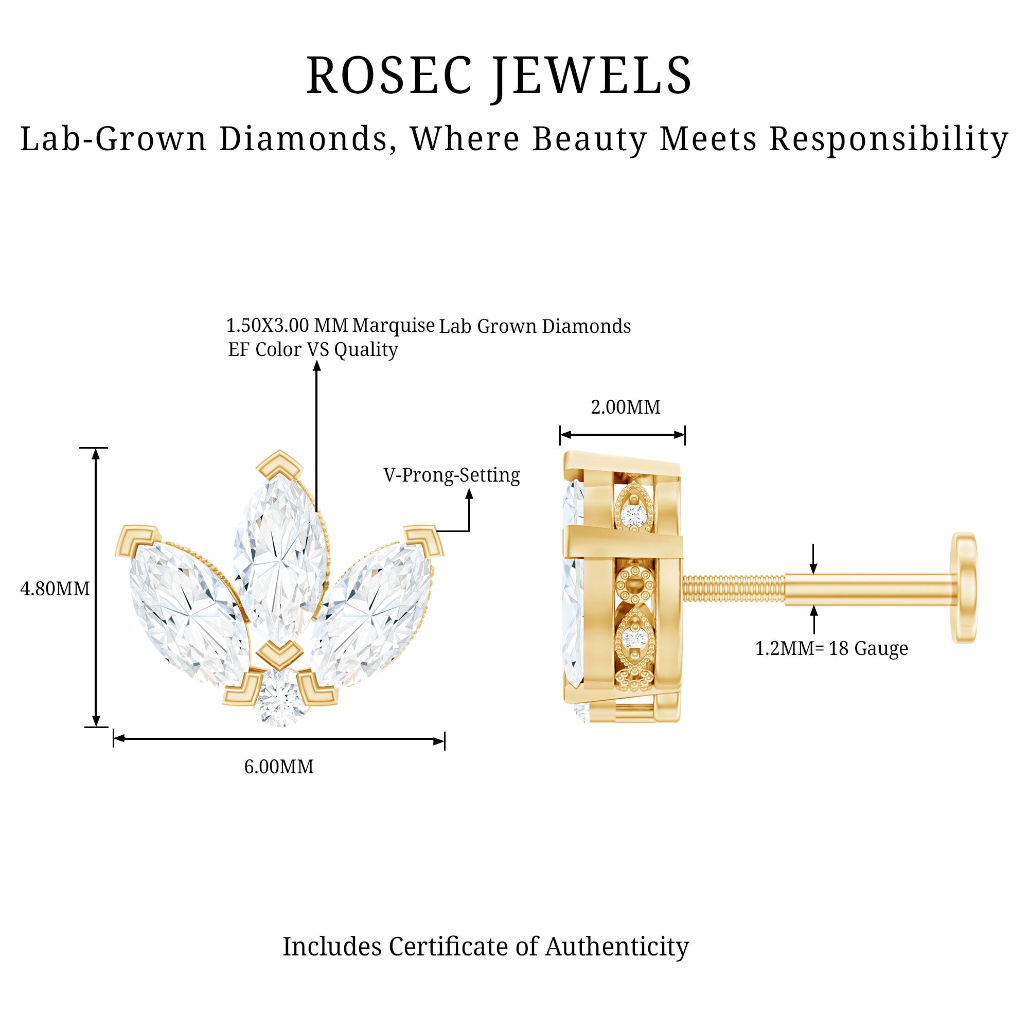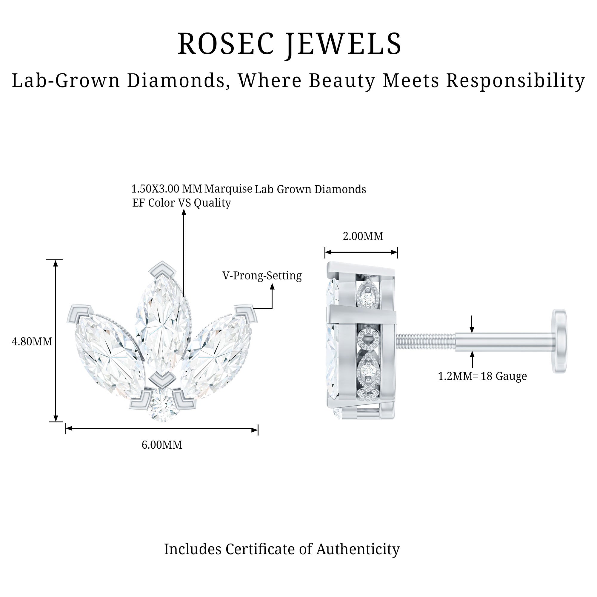 Marquise Diamond Lotus Earring for Cartilage Piercing