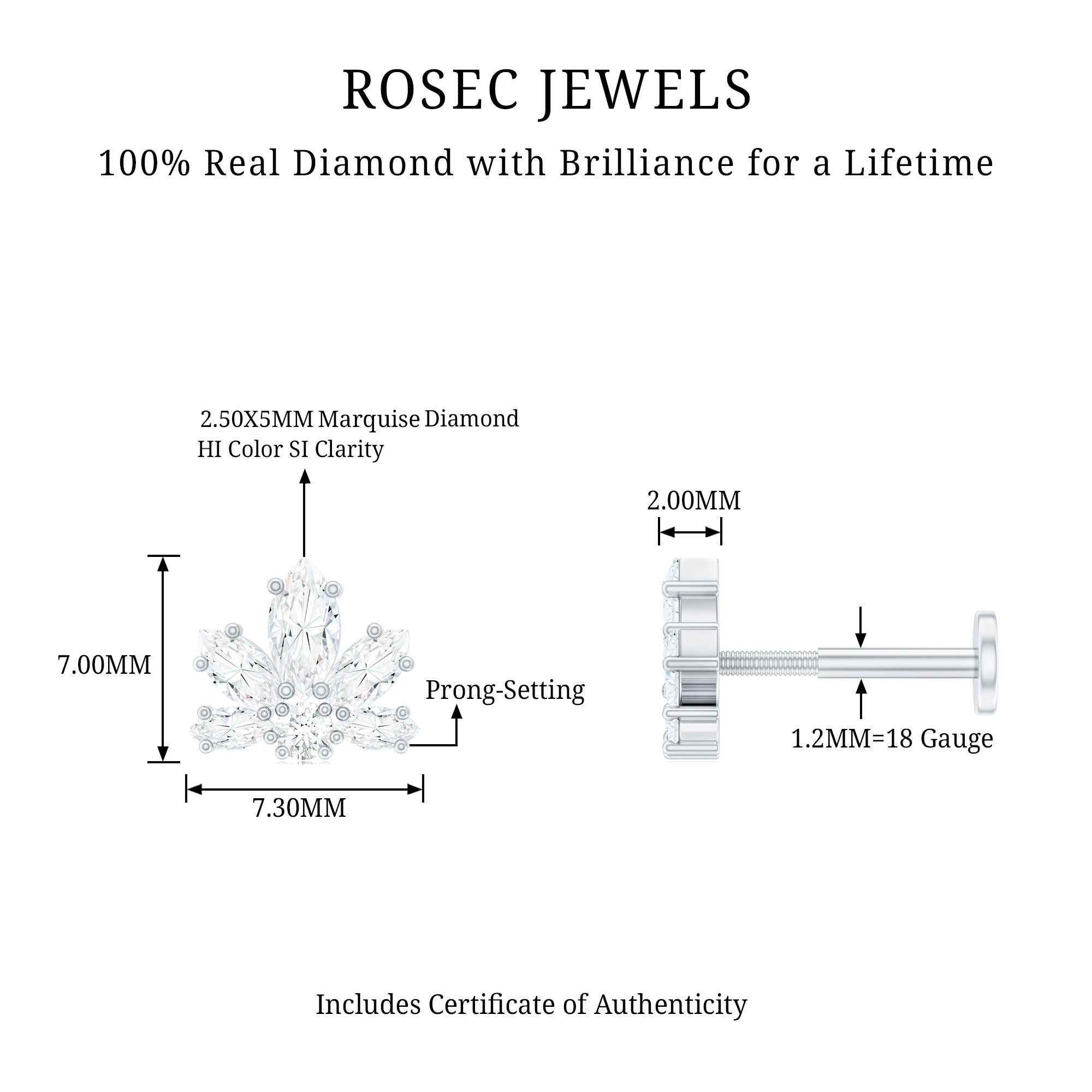 Want to add a floral charm to your ear piercings? Grab this Diamond Lotus Earring embellished with Marquise and Round Shape Diamonds all secured by Prong Setting. This Diamond Earring is designed to be fitted in your Helix, Cartilage, Conch, or Upper Lobe Piercing. The Flat Back Closure will keep it secured in place. Whether you style this Diamond Piercing Earring with your casual or dressy attire, you are destined to be the spotlight of any event. Looking for a perfect gift? Get this Diamond Floral Earring for someone special, she will surely love this earring for her whole life.