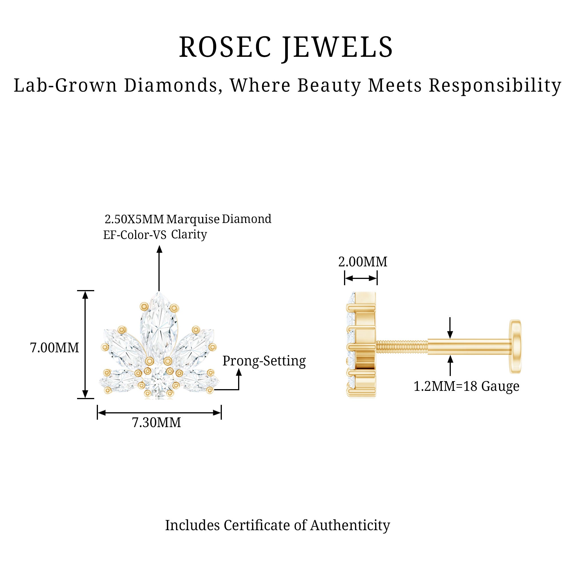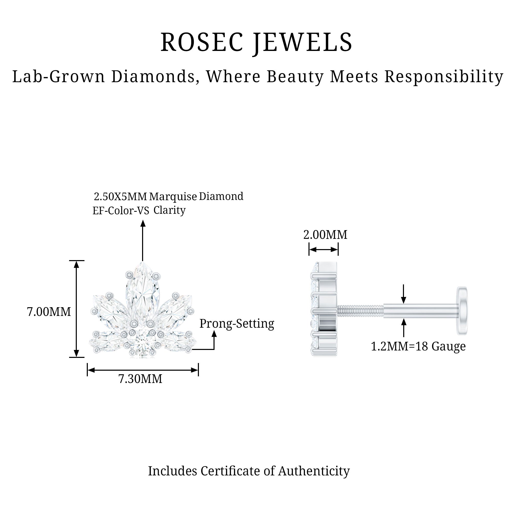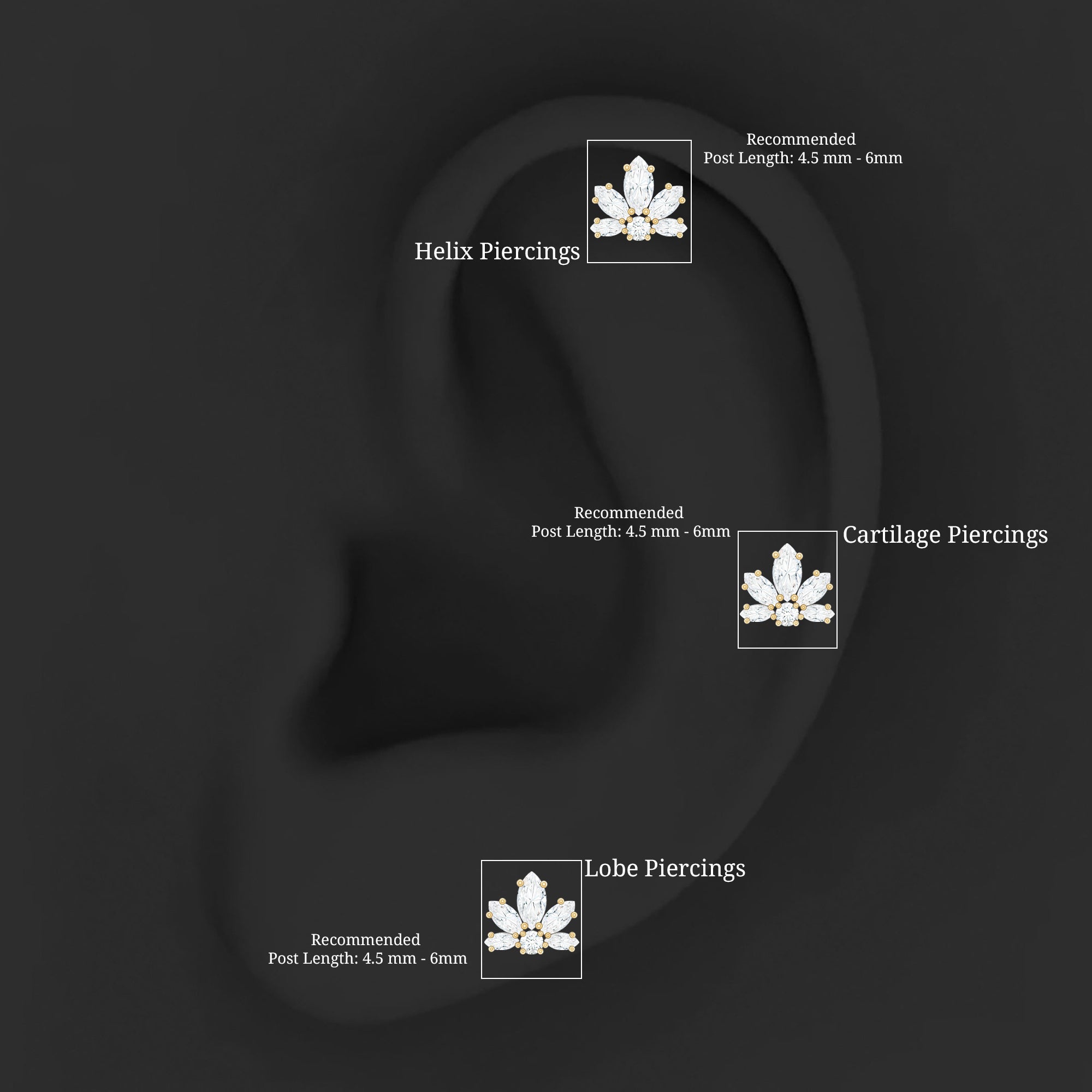 Marquise Diamond Lotus Earring for Upper Lobe Piercing