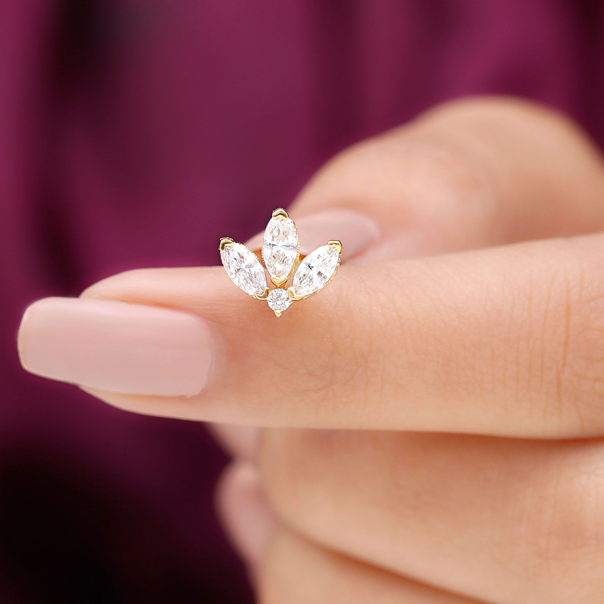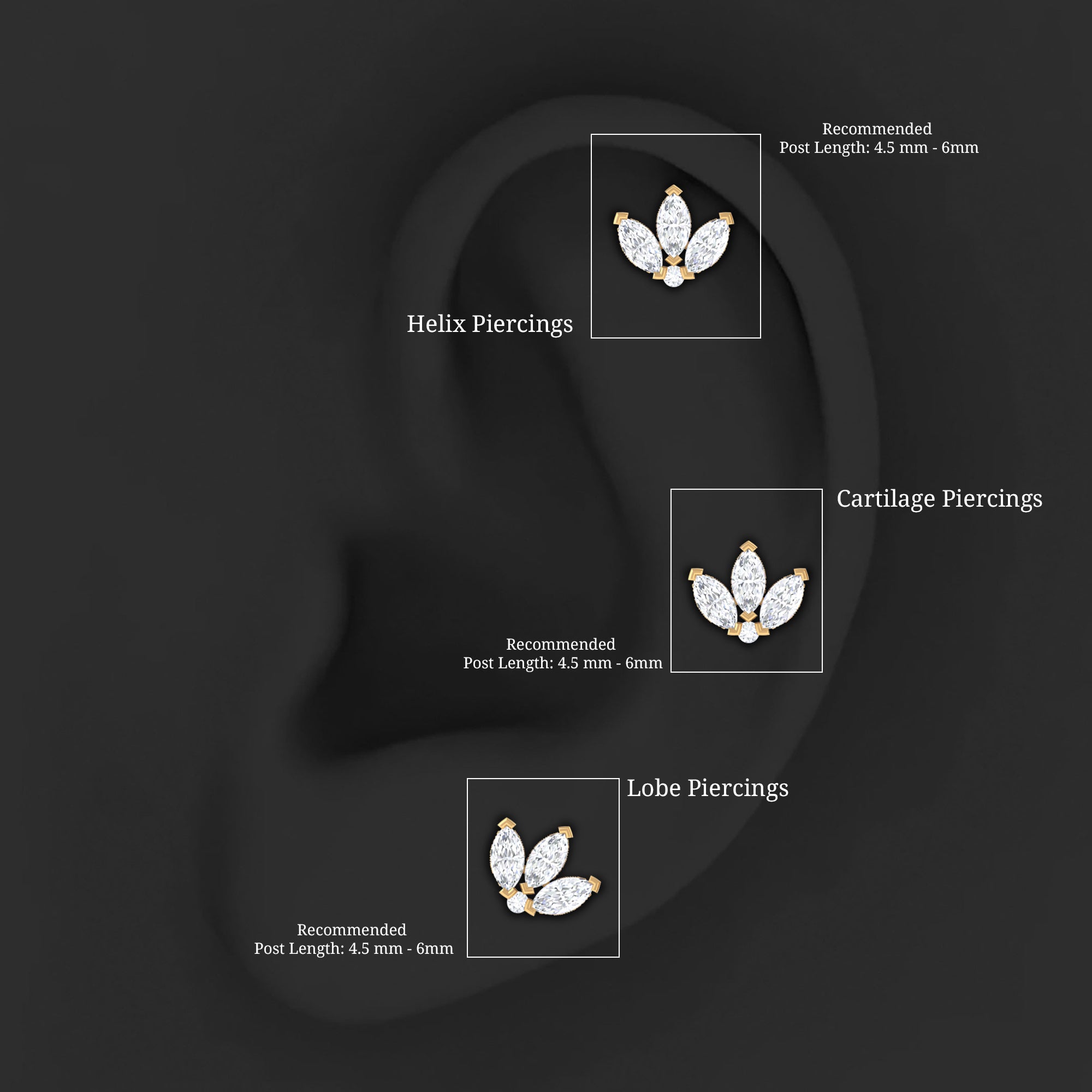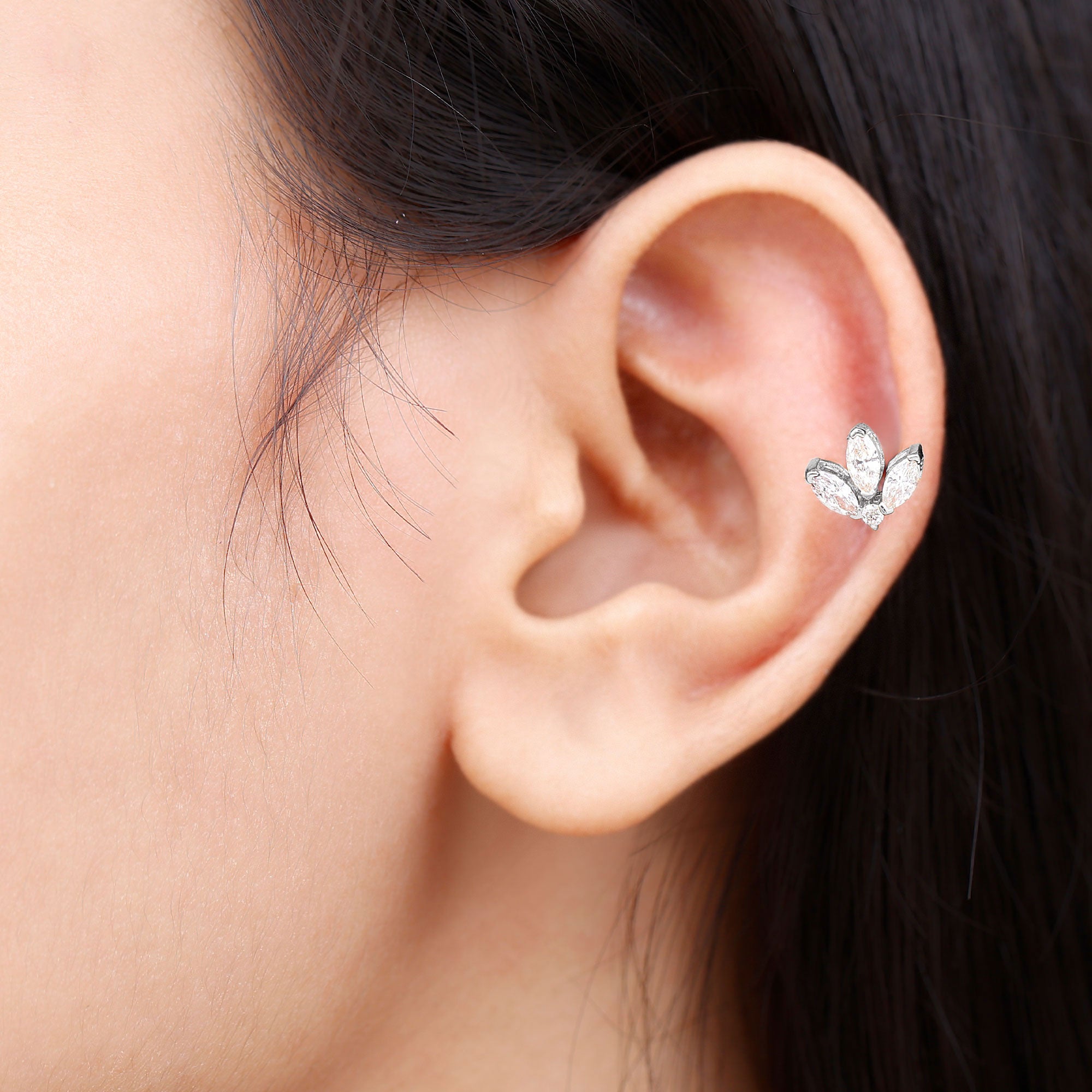 Marquise Diamond Lotus Flower Earring for Helix Piercing