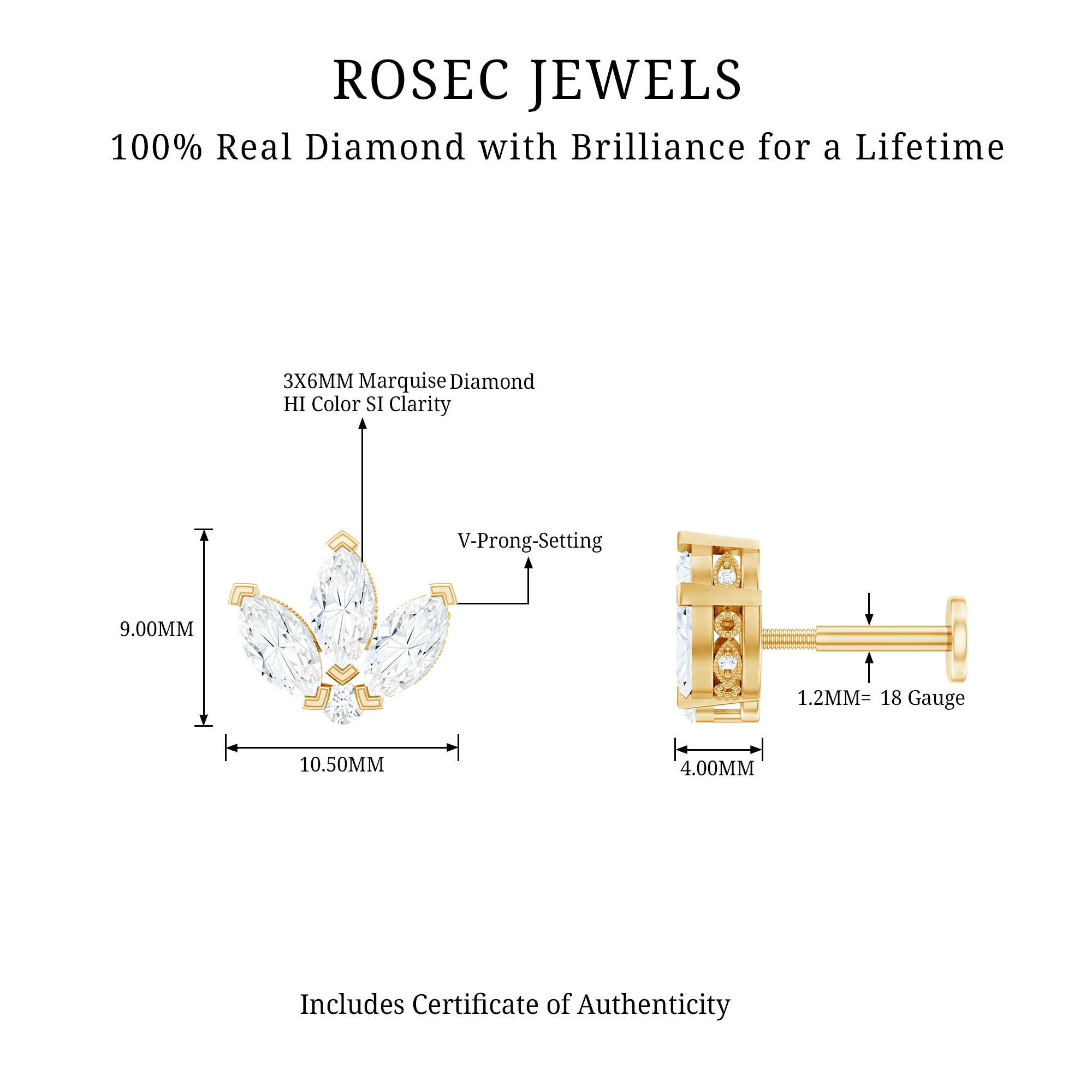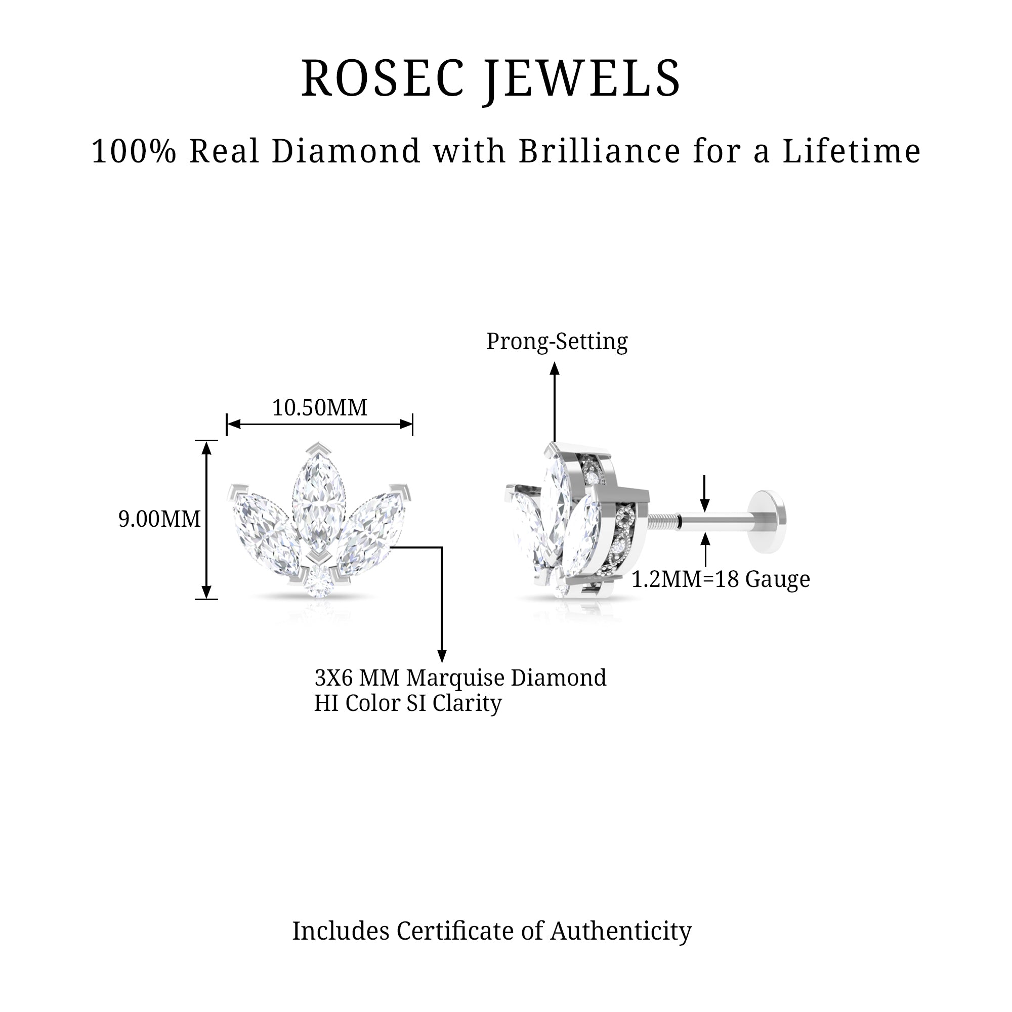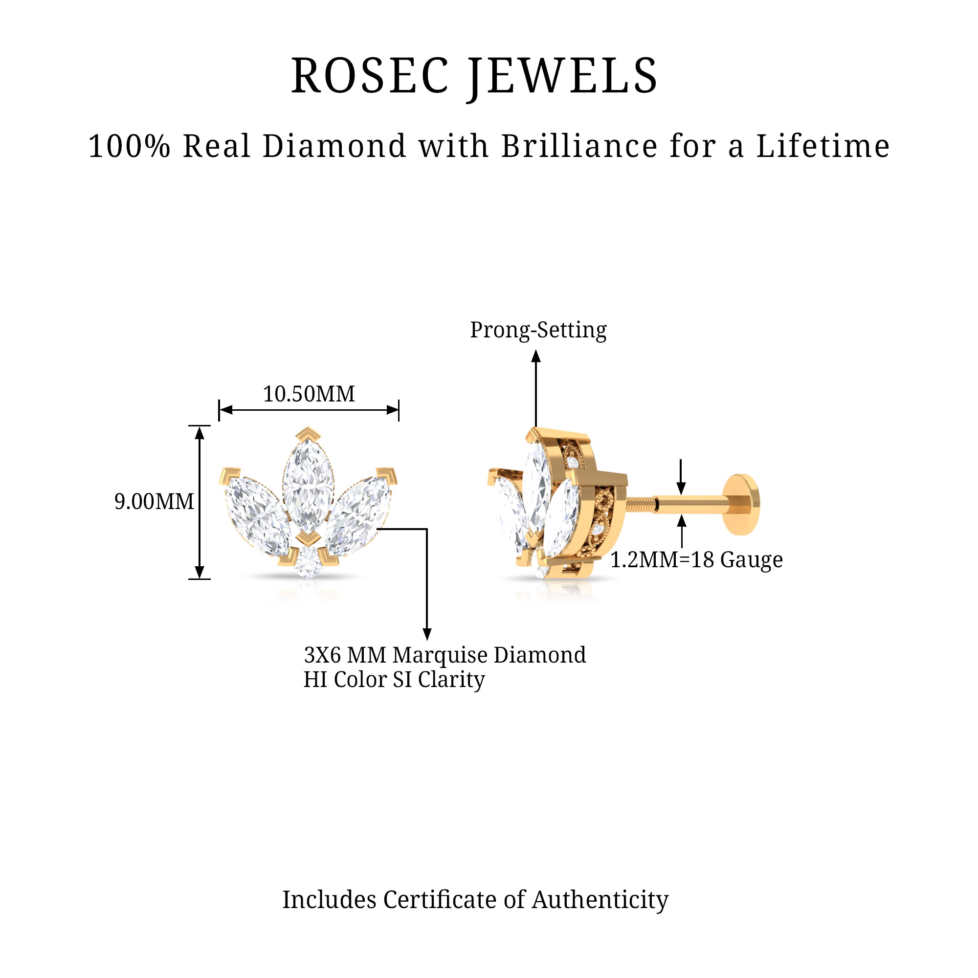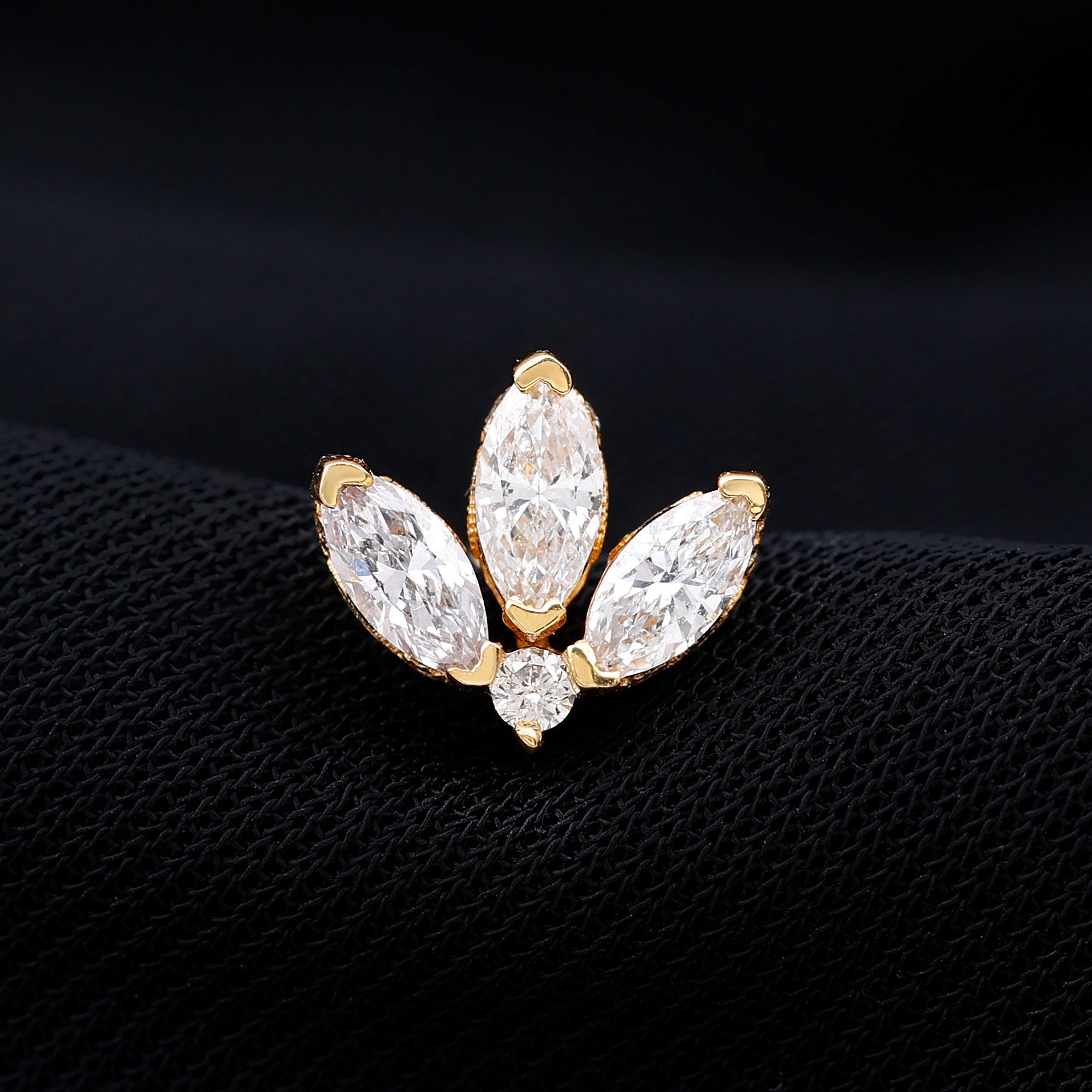 Marquise Diamond Lotus Flower Earring for Helix Piercing