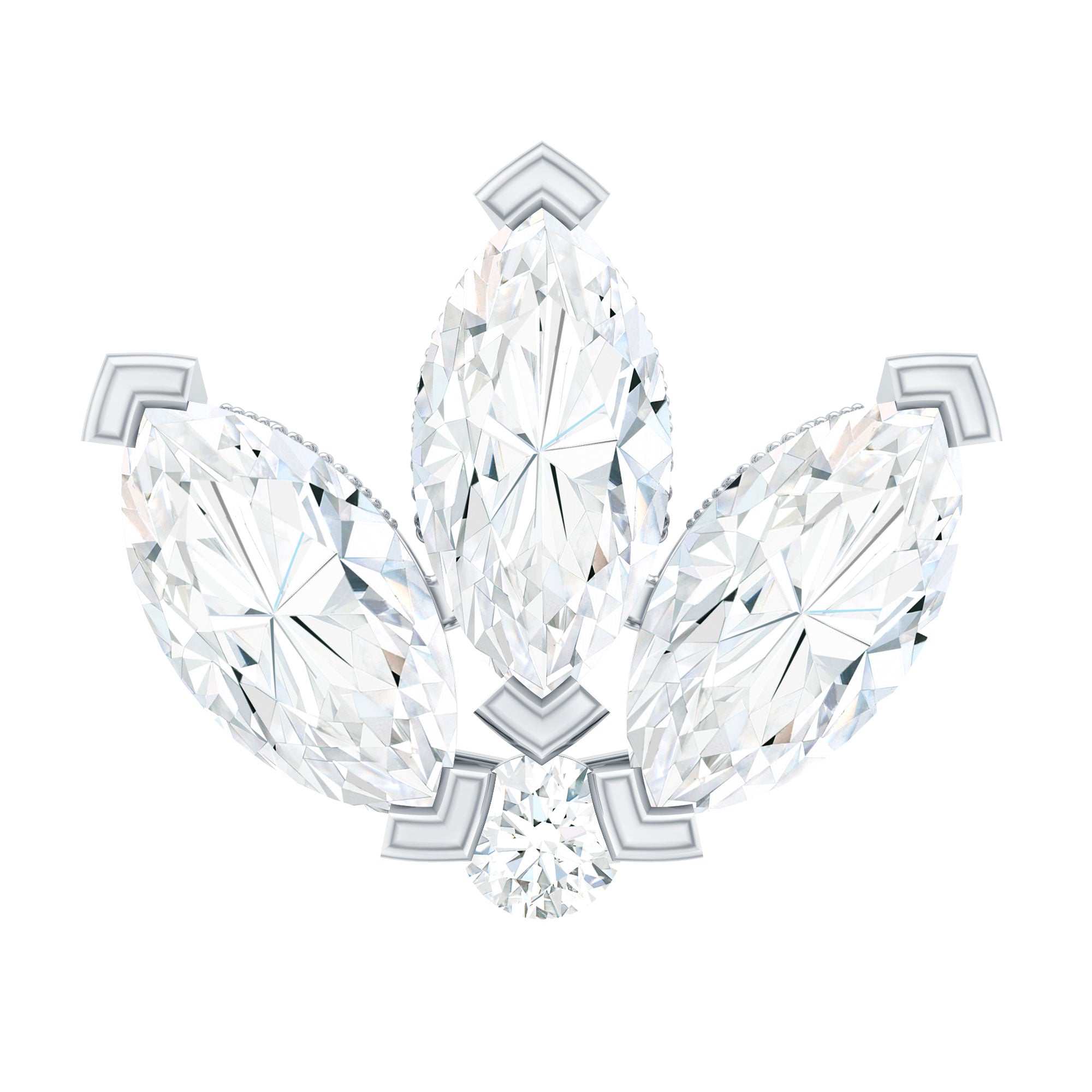 This lotus flower earring features three bright marquise diamonds secured by v prong setting, resembling a lotus flower. While dainty round diamonds are studded on the sides with milgrain detailing.