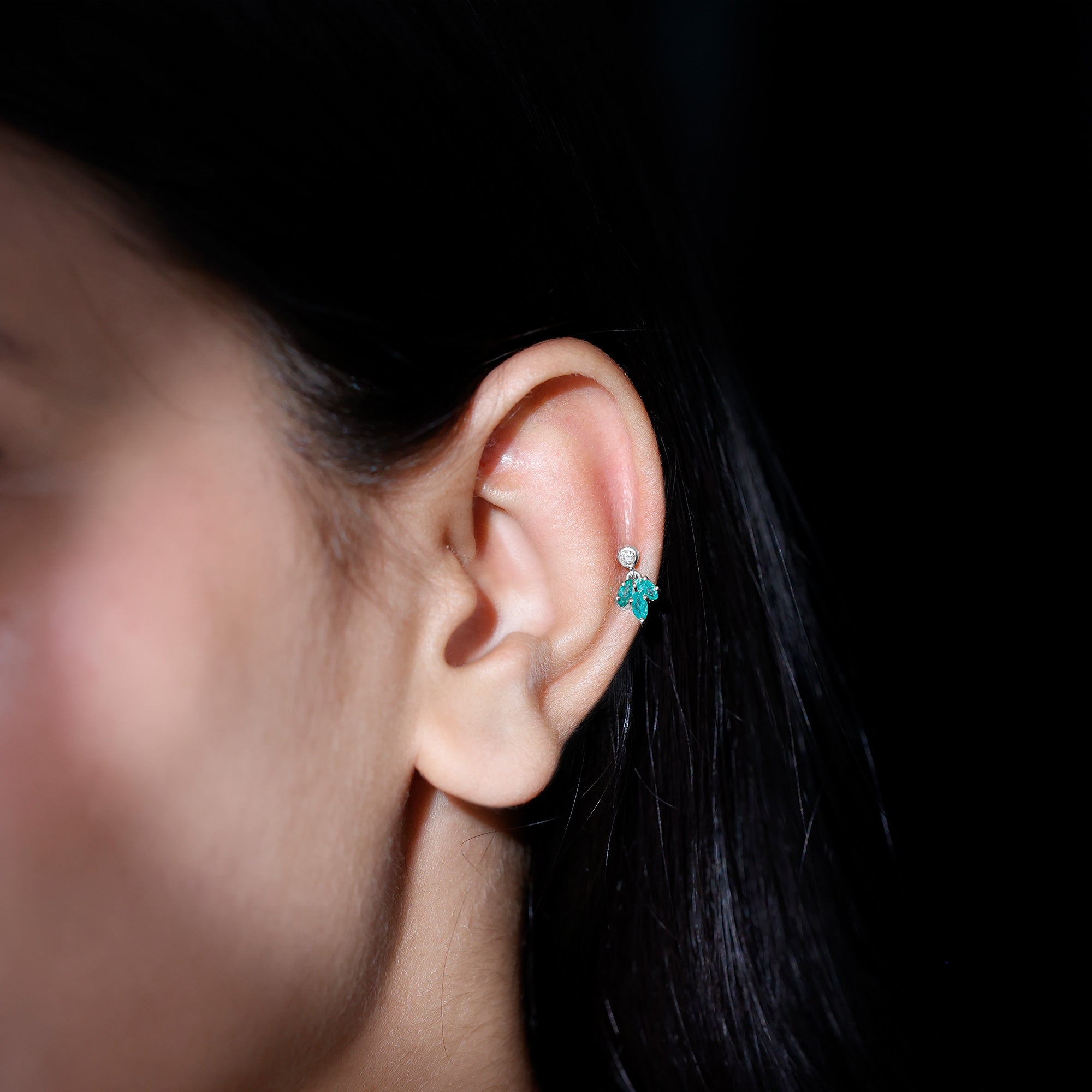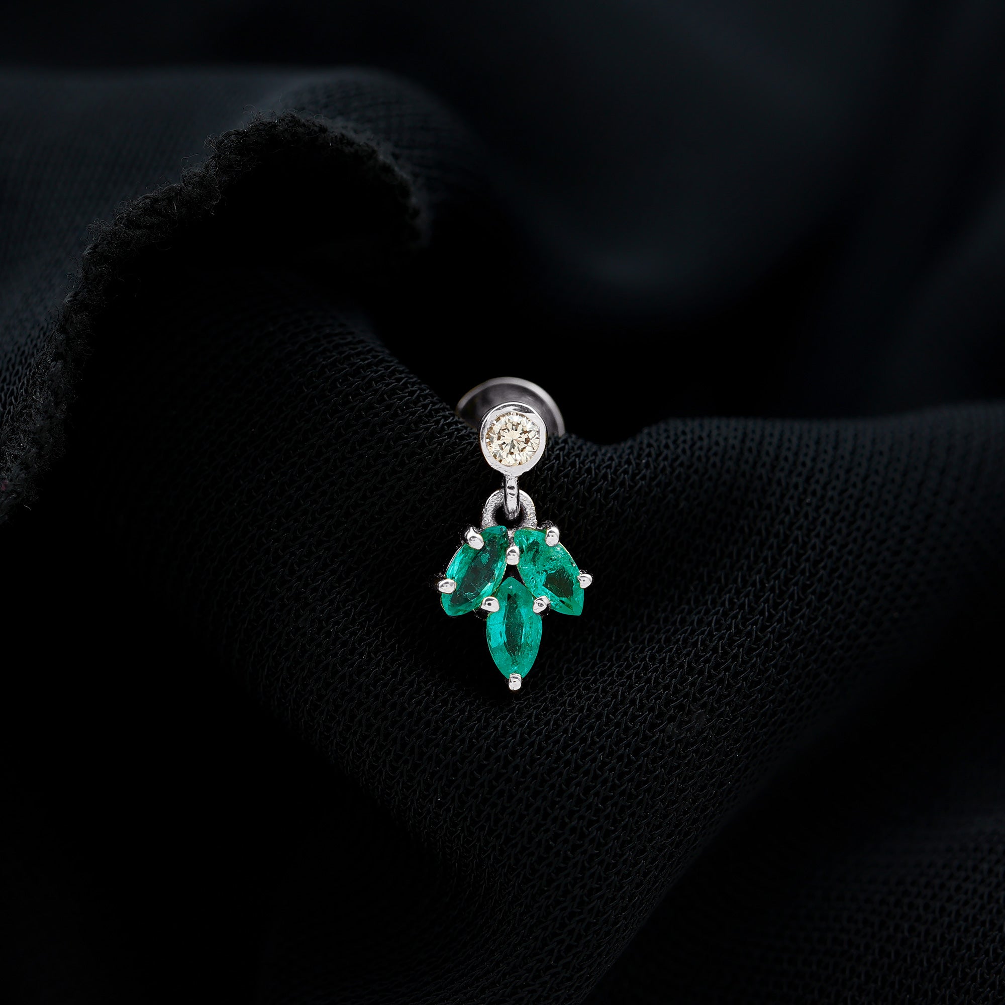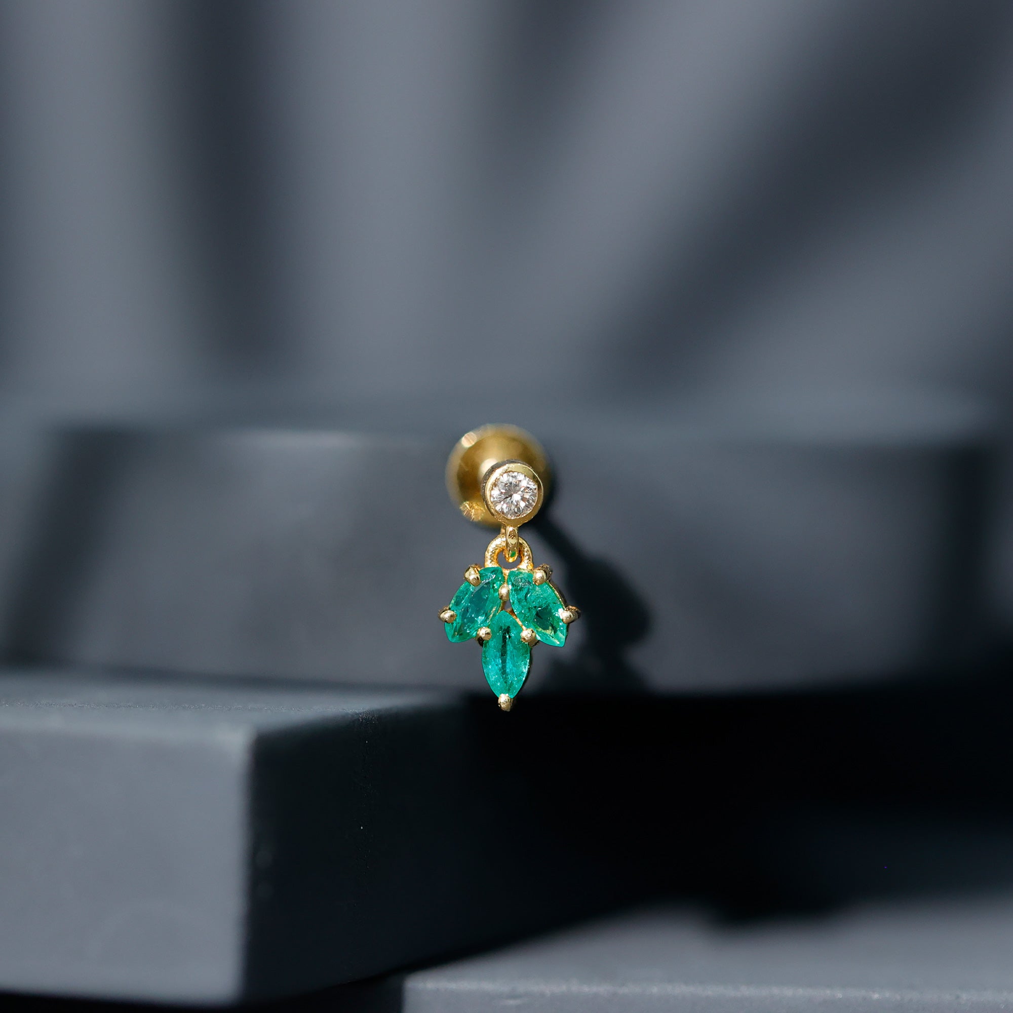 Marquise Emerald Leaf Earring for Helix Piercing