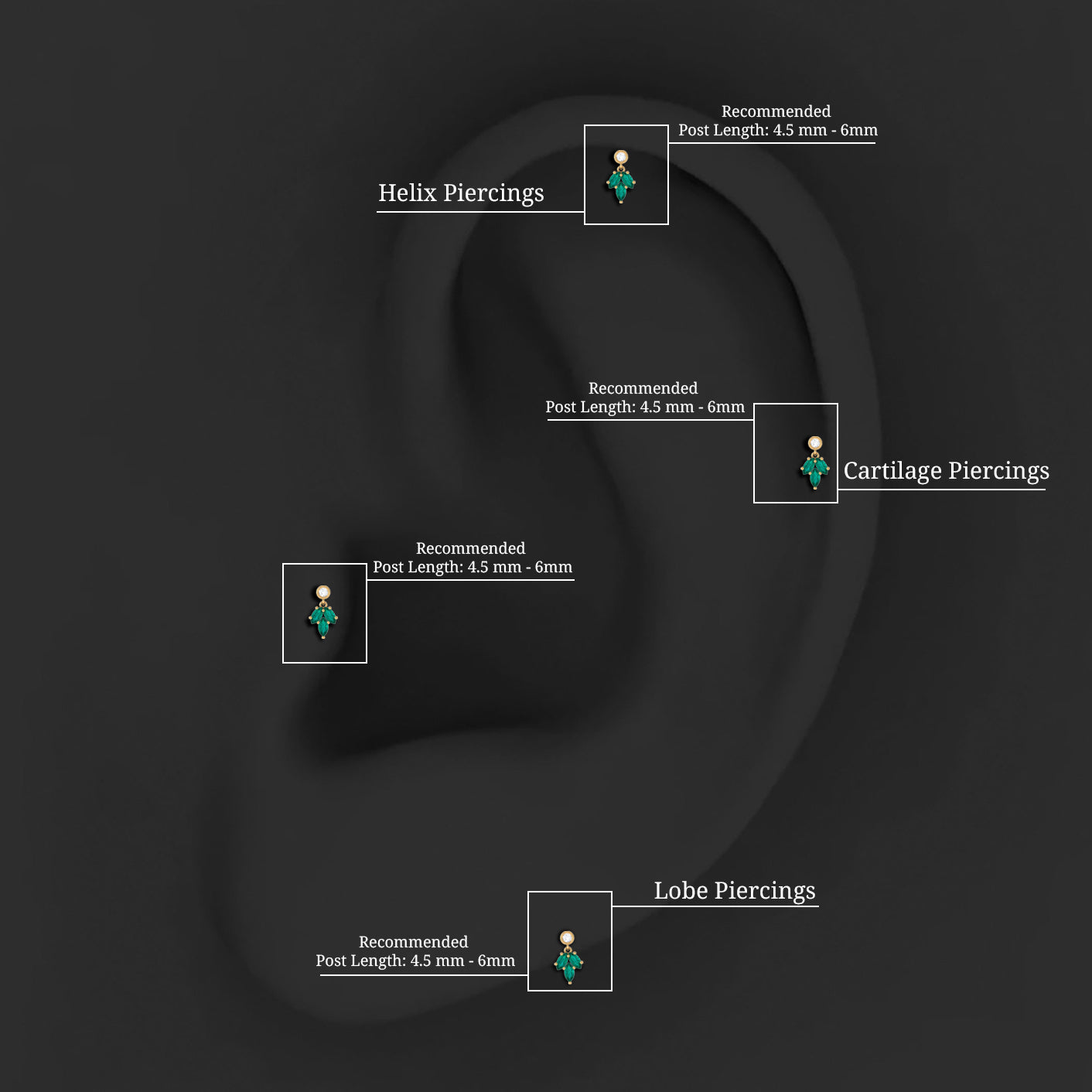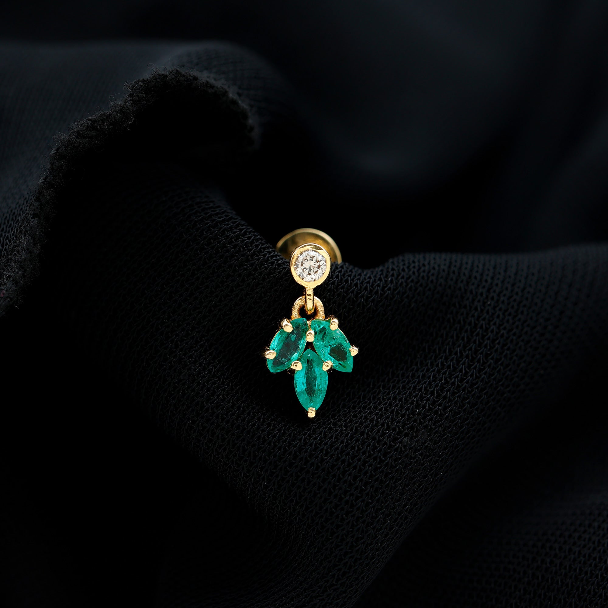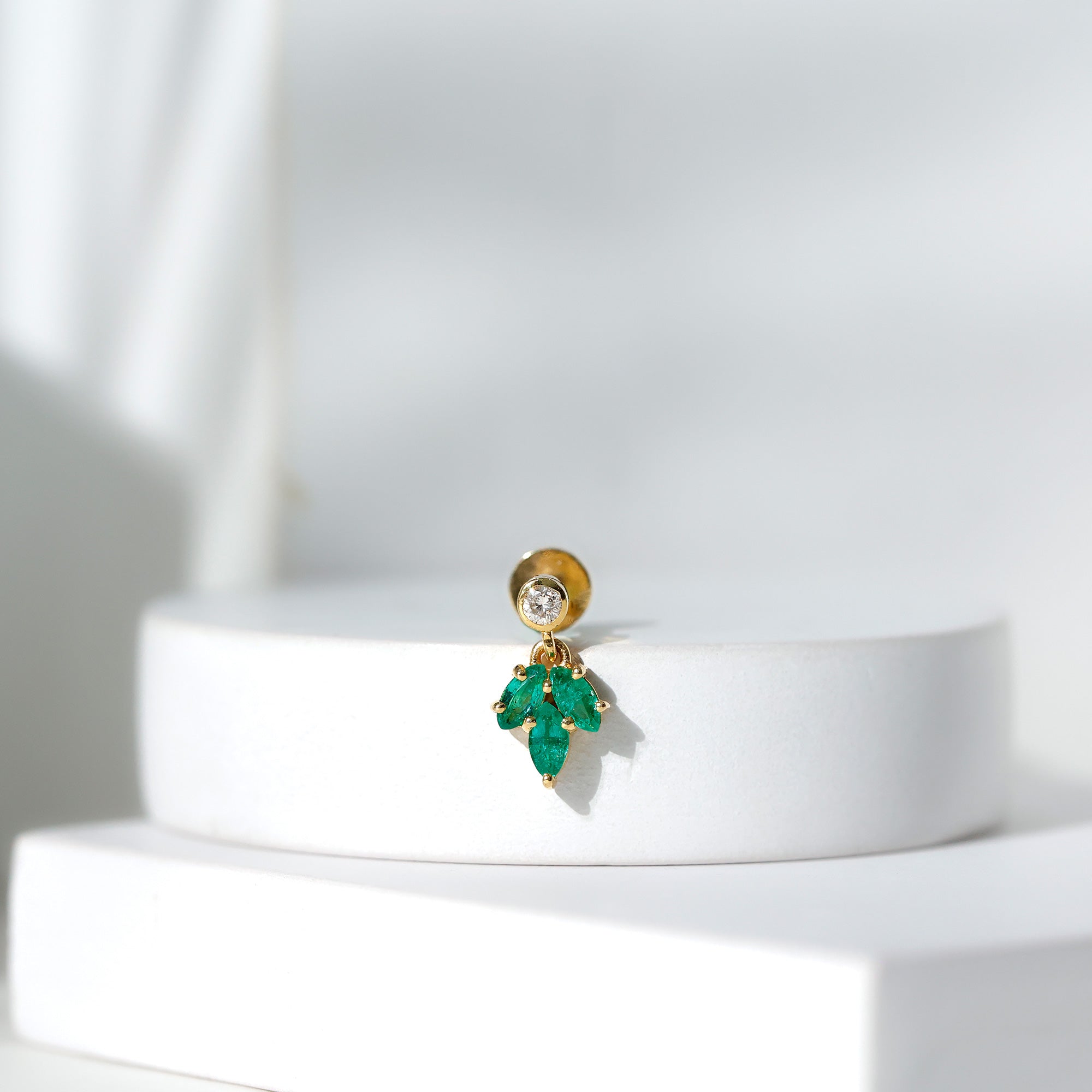 Marquise Emerald Leaf Earring for Helix Piercing