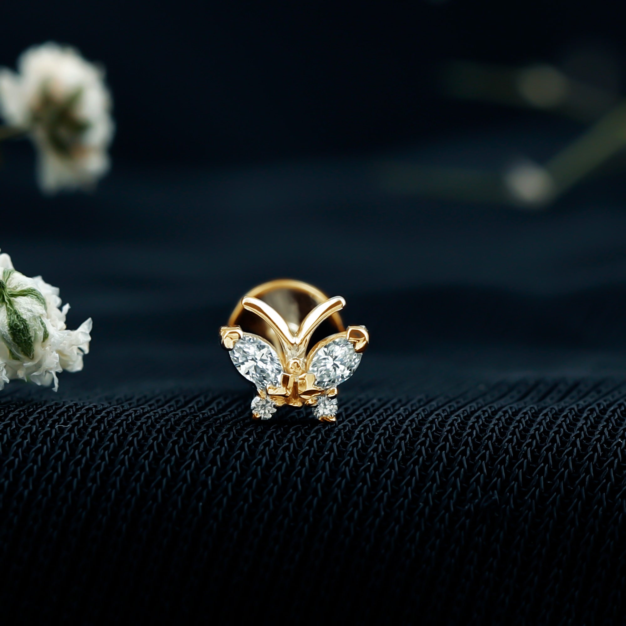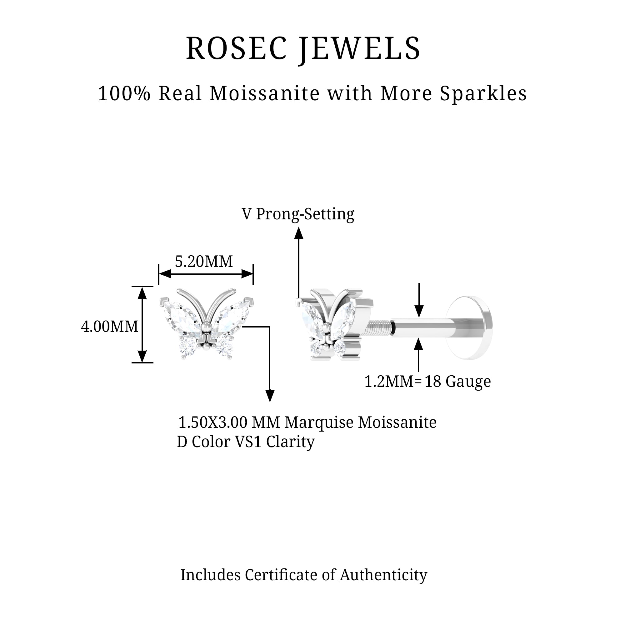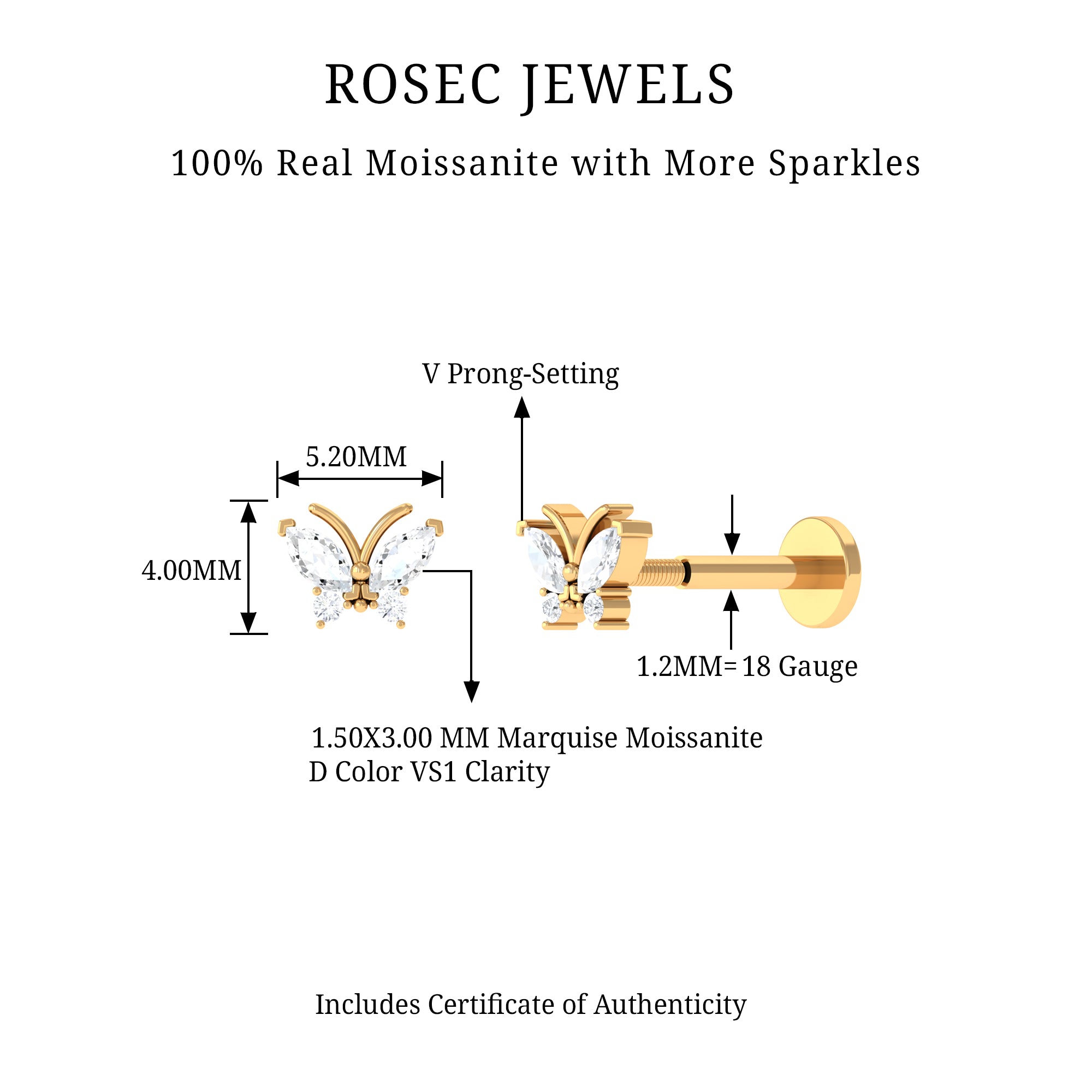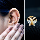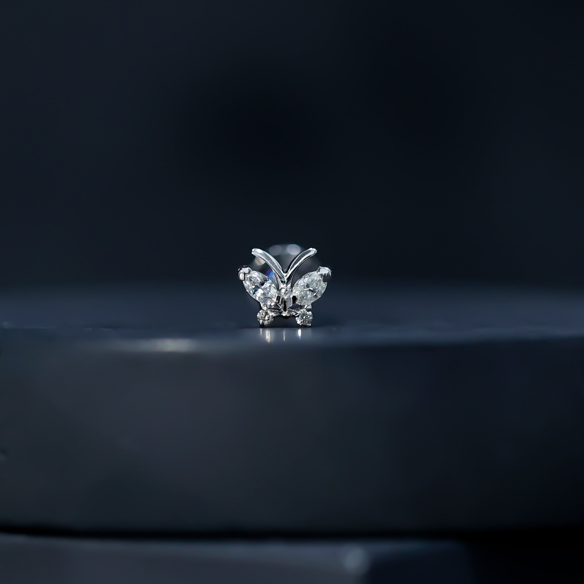 Flutter into style with our Marquise Moissanite Butterfly Cartilage Earring! Featuring Marquise and Round Cut Moissanites as butterfly wings. The delicate and whimsical butterfly design of this Piercing Earring is sure to make you feel free and beautiful.