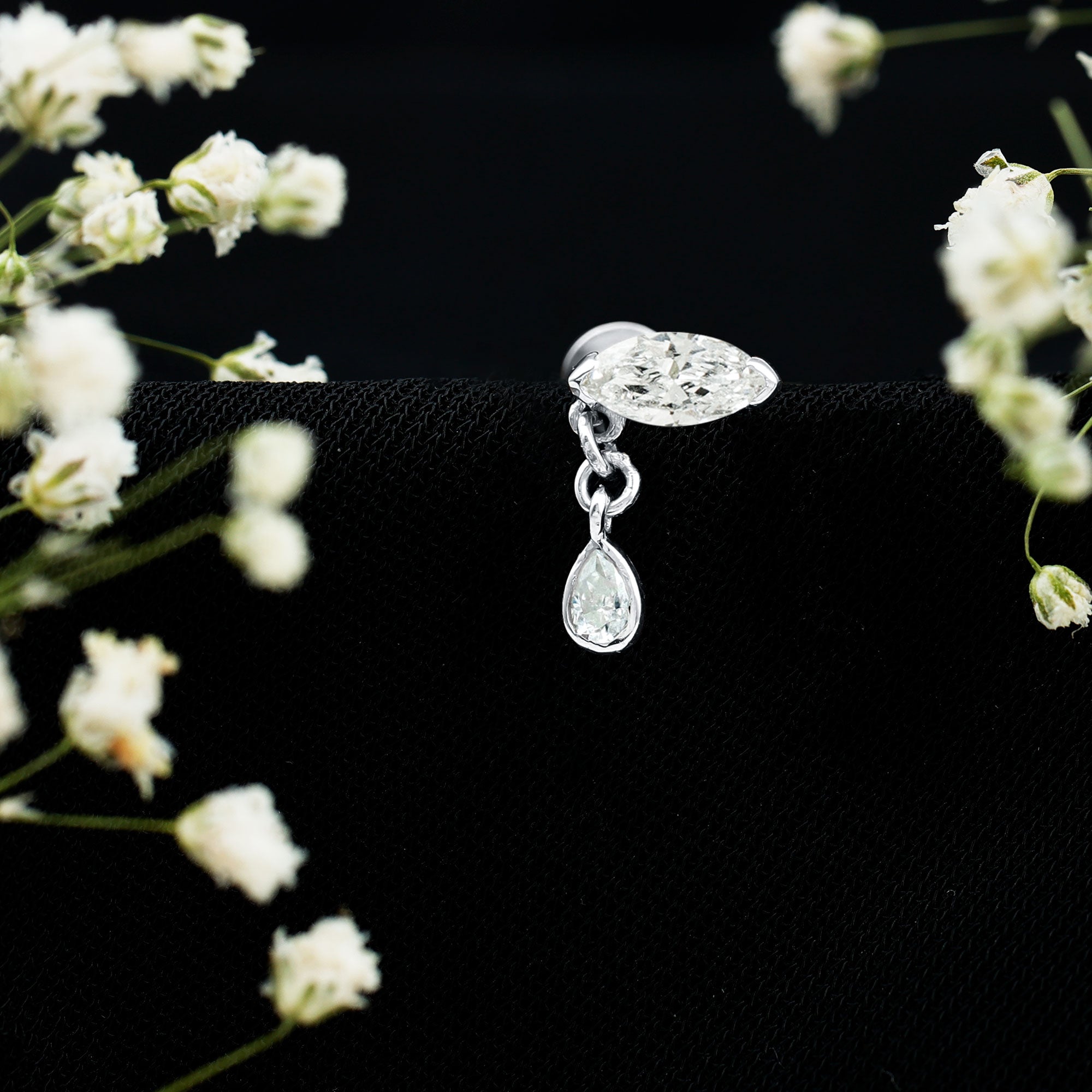 Marquise Moissanite Dangle Cartilage Earring