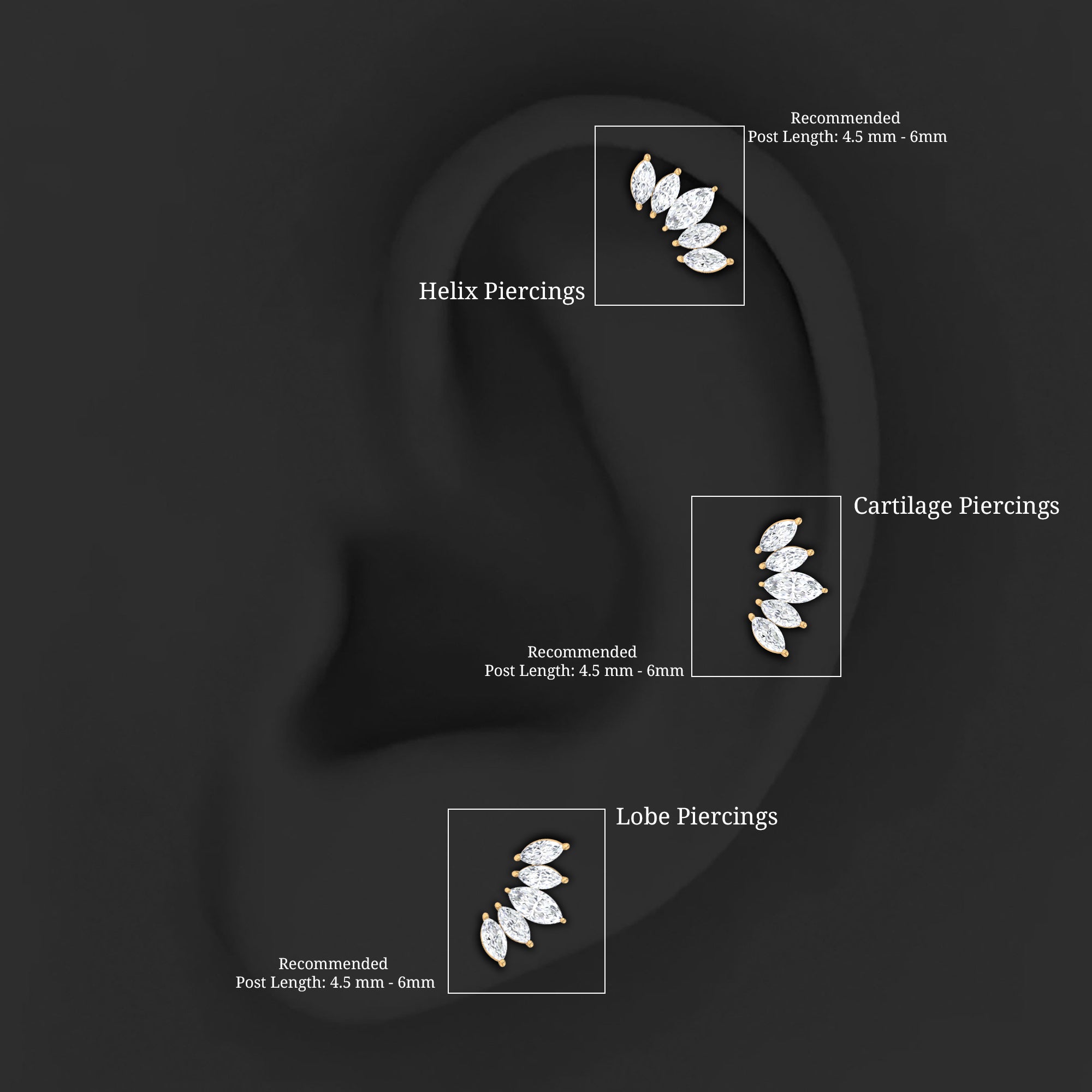 This Moissanite Leaf Ear Crawler Earring is absolutely amazing, featuring a graceful curve encrusted with sparkling Five Marquise Cut Moissanite in prong setting. The Marquise Moissanite Earring is a stunning piece that can be worn alone or stacked with other accessories for an even more glamorous look.