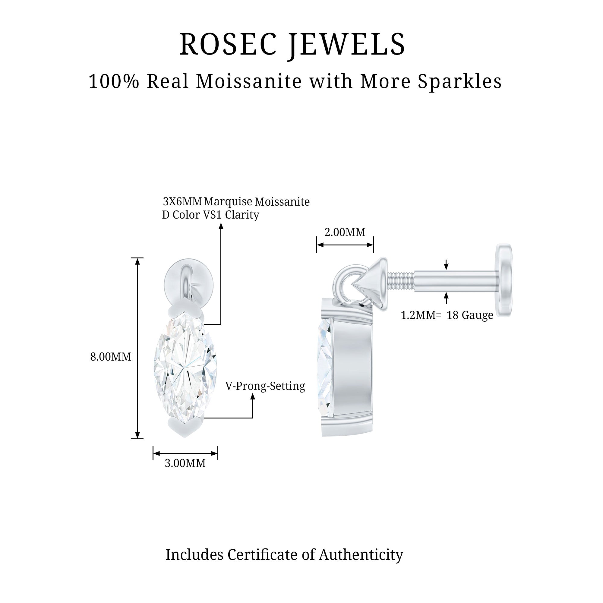 Marquise Moissanite Drop Earring for Tragus Piercing
